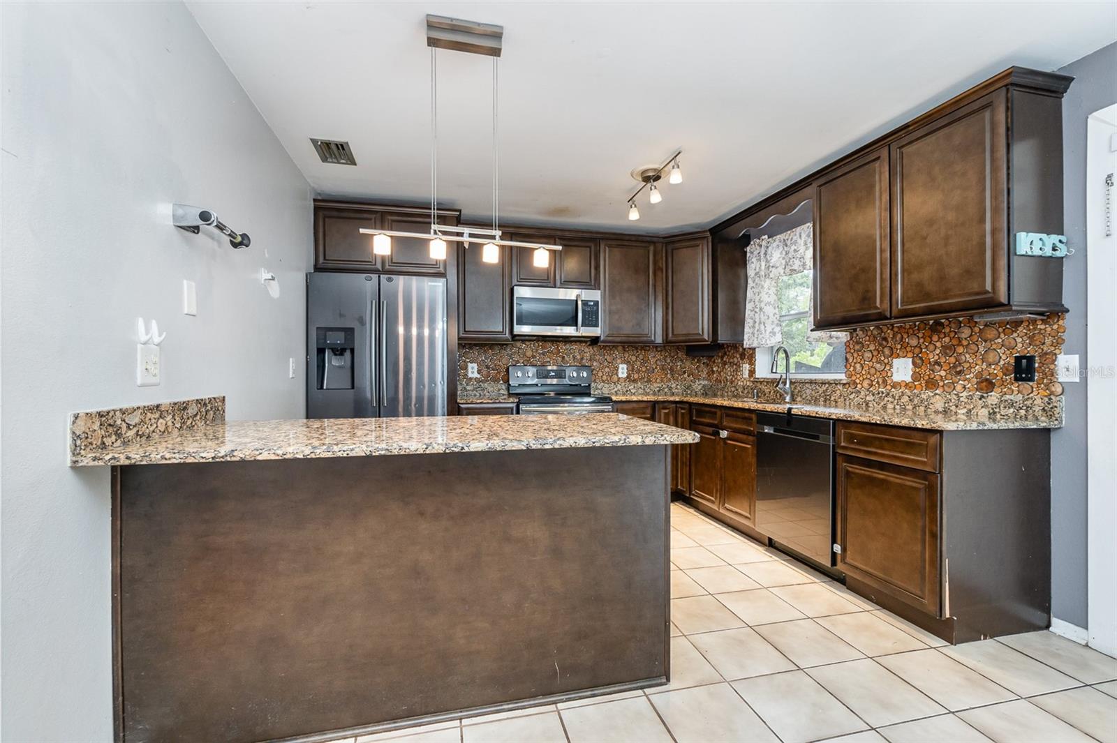 Cozy three bedrooms, 2 baths home, on a spacious fenced corner lot (0.22 acre). Total Upgrades of Kitchen, Bathrooms and Flooring! Upon entering you will be welcomed by a comfortable size living area that leads to the family/dining area which connects to the kitchen. The kitchen has been updated and is fully equipped. The master bedroom offers and en-suite bath. There are two additional bedrooms plus a guest bath. Luxury vinyl flooring in all bedrooms. Relax in the comfort of the screened back porch. One car carport with side entrance. New Roof and New Solar System in 2024, New A/C and New Hot Water Heater in 2023. This home is move-in ready, ideal for a first time buyer. See it today!