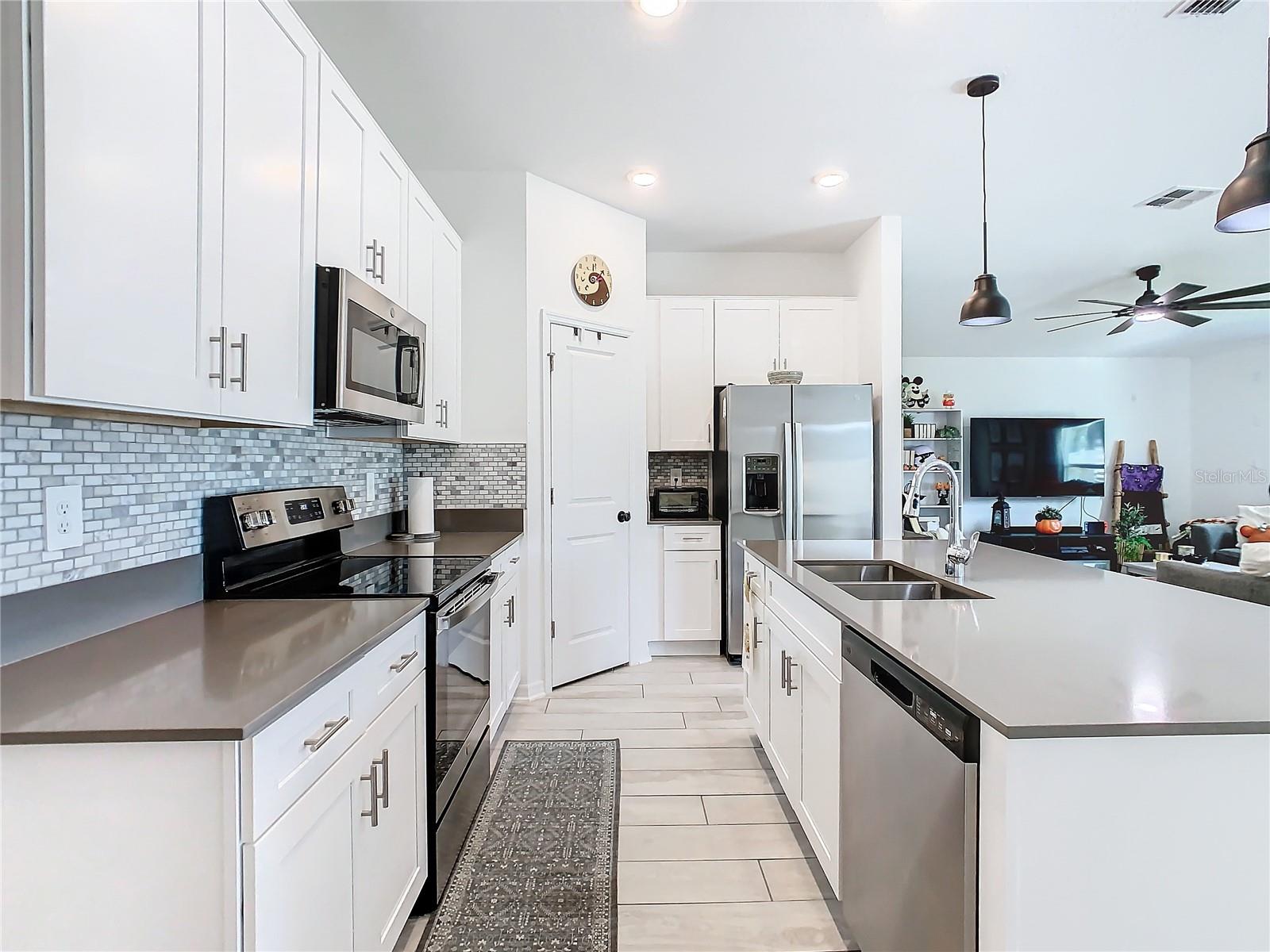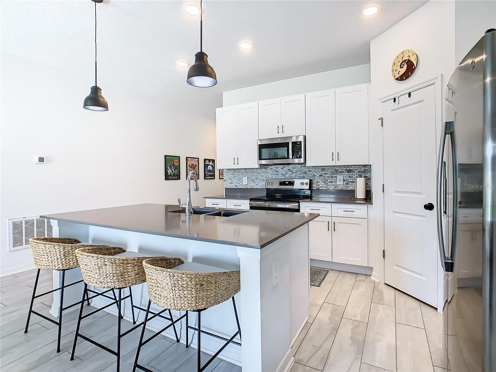 Welcome to Inman Groves, a charming solar-powered community that prioritizes sustainability and energy efficiency. This stunning 3-bedroom, 2-bath home, built in 2022, is a true gem. Inside, you’ll find a spacious owner’s suite with an oversized walk-in closet and double sinks in the en-suite bathroom, offering both luxury and convenience. Upgraded fixtures and finishes throughout Ceiling fans. Modern kitchen features quartz countertops, new backsplash with 42’’ inches solid wood cabinet's and a central island with breakfast bar seating, stainless steel appliances, and a walk-in pantry, perfect for culinary enthusiasts. The home is still under builder warranties, ensuring peace of mind and quality you can trust. Step outside to enjoy the expansive backyard, perfect for outdoor entertaining. Updated landscaping and gutter system. A new privacy fence adds an extra layer of seclusion, making it ideal for quiet relaxation. Inman Groves is a low-HOA community with no CDD fees, offering an exceptional blend of comfort and style without breaking the budget. The prime location puts you close to golf courses, country clubs, shopping, and dining, while Lake Hamilton is nearby for boating and outdoor activities. Plus, LEGOLAND and other family-friendly attractions are just minutes away. Don’t let this incredible opportunity pass you by—your dream home is waiting!