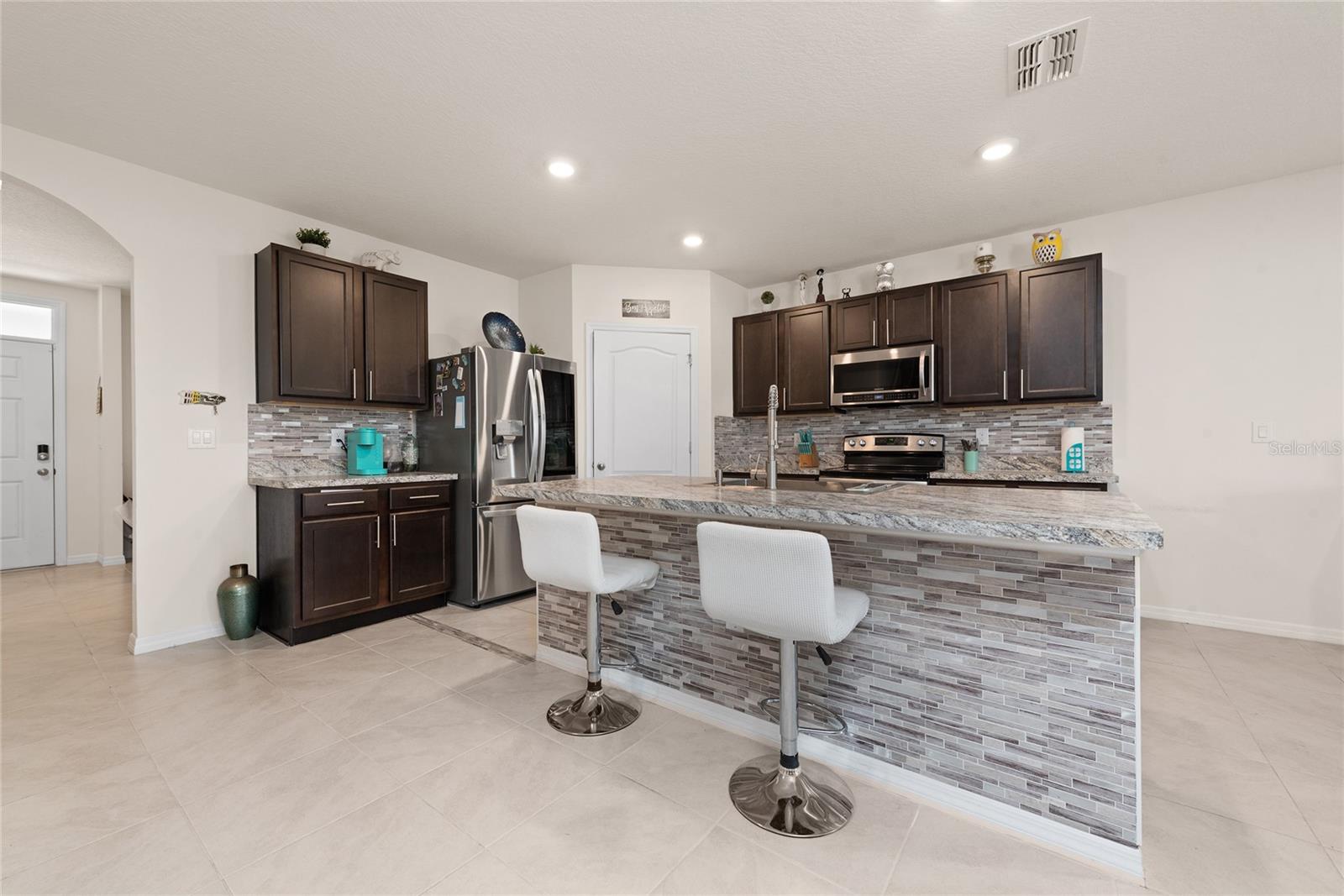This Stunning and beautiful 5-bedroom, 3-bathroom home is packed with modern Upgrades ready for its next owner| Priced to Sell!. The expansive master suite includes a large walk-in closet, while the open-concept kitchen boasts a stylish backsplash, a stainless steel Kraus sink, and ceramic tile flooring throughout the first floor—perfect for entertaining. Enjoy the convenience of Smart Home Technology with Alexa, allowing you to control the thermostat, doors, and more from your phone. The home also includes stainless steel appliances, ceiling fans, a smart garage door opener, and washer/dryer hookups in the garage. Step outside to your private, fenced backyard with a screened and covered pergola, perfect for relaxation or family time. The spacious yard is ready for your personal touch, and the intelligent irrigation system makes lawn care a breeze. Located close to shopping, schools, and entertainment, the community features a pool, playground, and stunning lake views. Don’t miss out—schedule your private showing today!