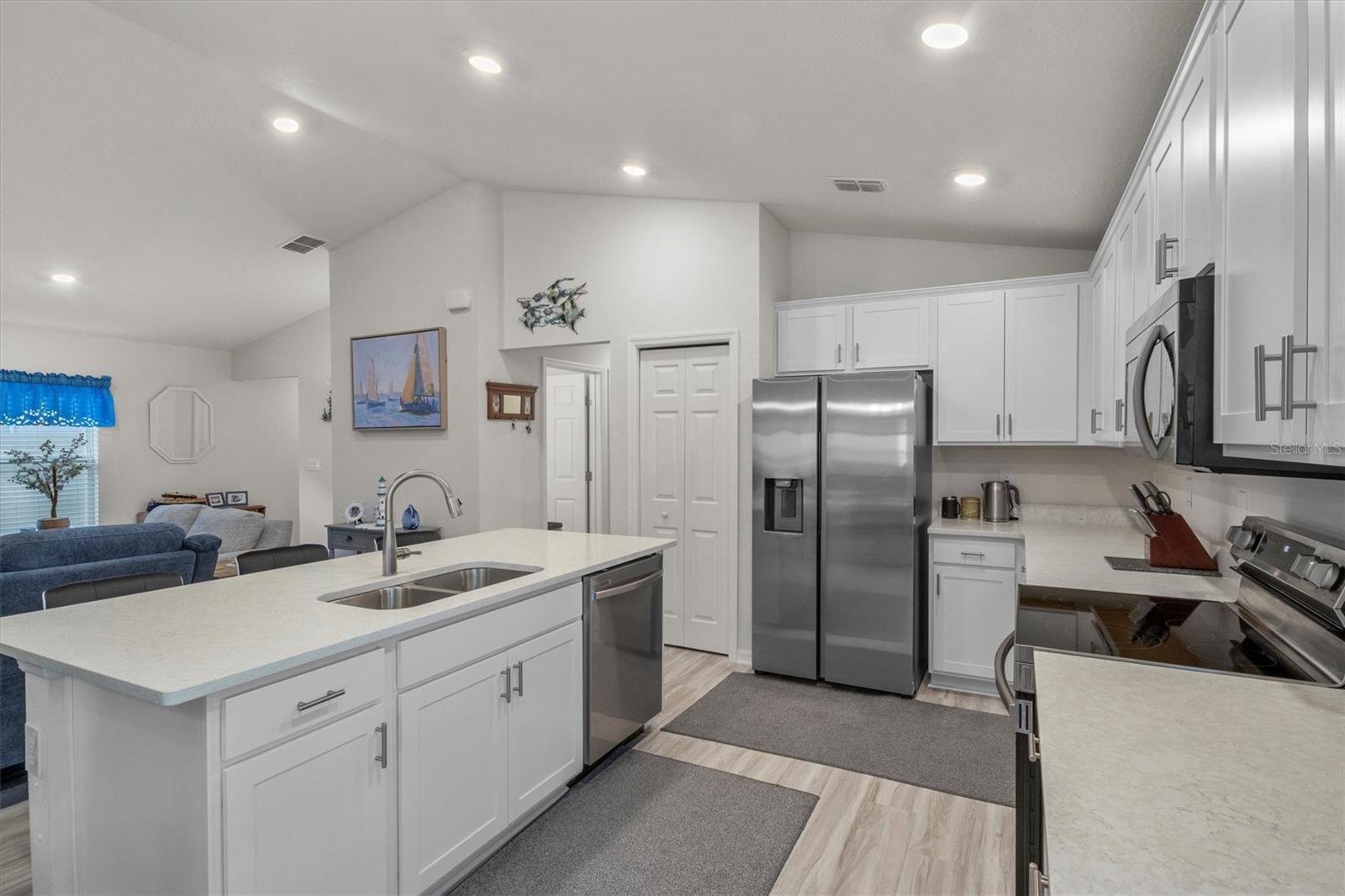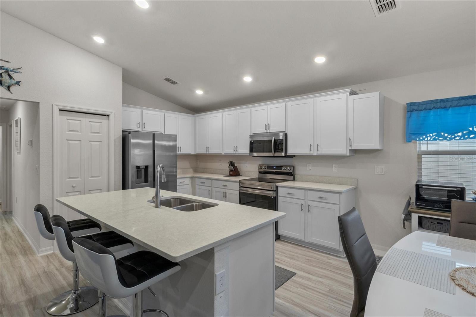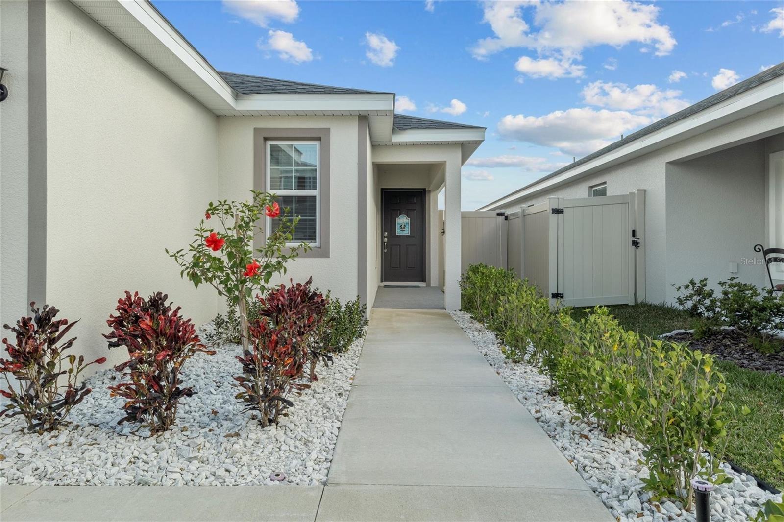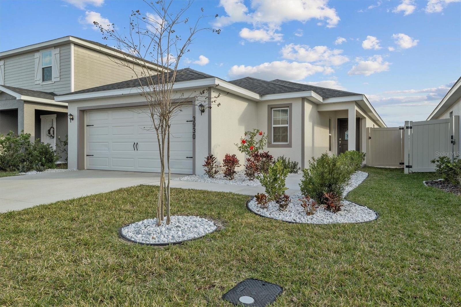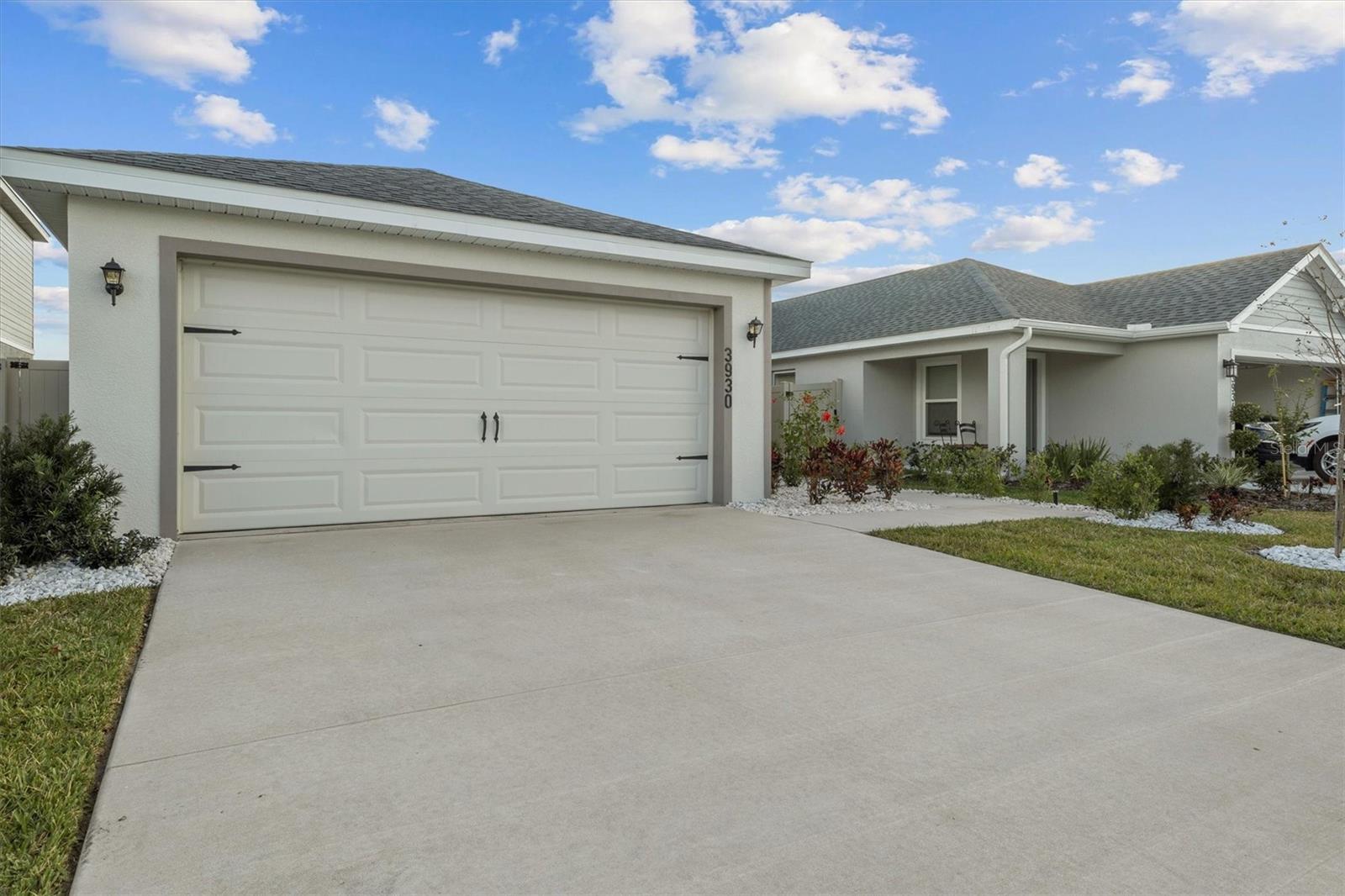 Welcome to 3930 Palazzo Pl, Winter Haven – a beautifully designed 3-bedroom, 2-bathroom home offering 1,553 sq. ft. of comfortable living space, all on one convenient level. The open-concept layout seamlessly connects the kitchen, dining café, and gathering room, creating an inviting space for entertaining and everyday living. The chef’s kitchen features elegant shaker-style white cabinets with crown molding, Silestone countertops, Samsung stainless steel appliances, a pantry, and a spacious island, perfect for meal prep or casual dining. Throughout the main living areas, luxury wood vinyl plank flooring adds warmth and durability, while the bedrooms offer plush, stain-resistant carpet for ultimate comfort. The owner’s suite is a relaxing retreat, complete with a walk-in wardrobe and a private en-suite bath featuring dual vanities, a tiled shower, and a closeted toilet. Step outside to the covered and screened lanai, where you can enjoy the fully fenced backyard in privacy. Additional highlights include a 2-car garage, custom-fit window blinds, architectural shingles, energy-efficient insulation and windows, and a builder’s warranty that transfers with the purchase. Located in the highly desirable Villamar community, residents enjoy access to resort-style amenities, including a swimming pool, playground, scenic walking trails, and a second pool on the way!