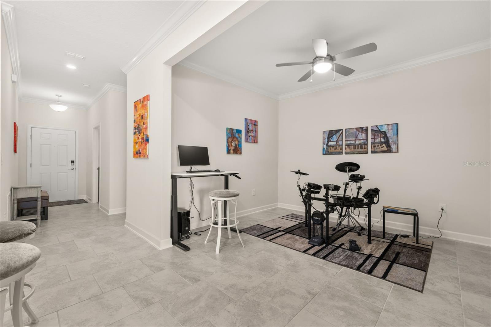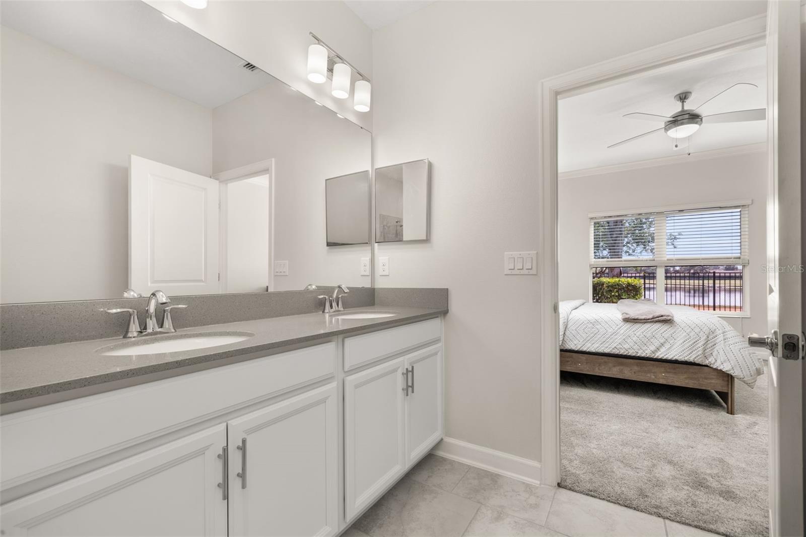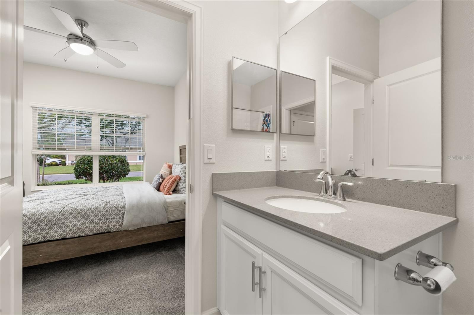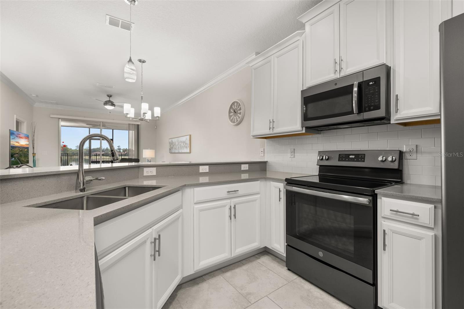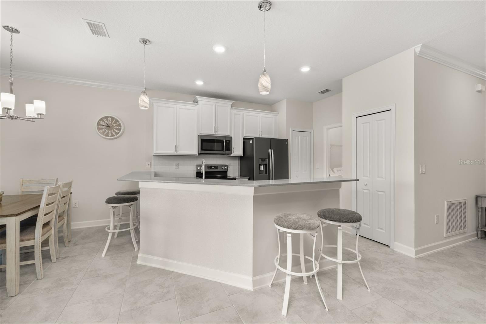Welcome home to comfort, quality, and tranquility! This move-in ready, beautifully maintained villa sits on a premium waterfront lot, offering peaceful views and a serene ambience. Enjoy quiet mornings and relaxing evenings from the covered, screened lanai overlooking the picturesque setting—your own private outdoor retreat. Inside, you’ll immediately appreciate the warm, inviting finishes, including gray quartz countertops, sleek stainless steel appliances, and tiled floors throughout the main living areas and baths. Crown molding and 9-ft. ceilings elevate the space, while smart-home features—Honeywell thermostat, WiFi-controlled garage door opener, smart lock, and whole-home surge protector—provide modern convenience and peace of mind. The spacious primary suite offers a restful escape with a walk-in closet featuring motion-activated lighting and a luxurious en suite bath with double vanity and walk-in tiled shower. A flexible bonus room is perfect for a home office, craft room, or guest space. This gently lived-in home shows like new, with thoughtful touches such as a dedicated laundry room (washer & dryer included), overhead garage storage, and a freshly painted exterior (2024). Located in a vibrant 55+ gated community, the HOA covers an impressive list of services—including roof maintenance/repairs, exterior paint every 5 years, cable, internet, termite protection, lawn maintenance and fertilization (including shrubs and trees), irrigation repairs, and exterior home insurance. The HOA-provided exterior insurance can significantly lower your personal homeowner’s insurance costs. Enjoy a rich array of amenities: two heated community pools for year round enjoyment, hot tub, sauna, fitness center, tennis and pickleball court, basketball court, billiards, library, dog park, walking trails, a community boat ramp with access to Lake Ruby, and a spacious ballroom ideal for gatherings and events. NO CDD! This villa offers more than a home—it offers a lifestyle. Come see why this community is the perfect place to relax, connect, and enjoy everyday living.