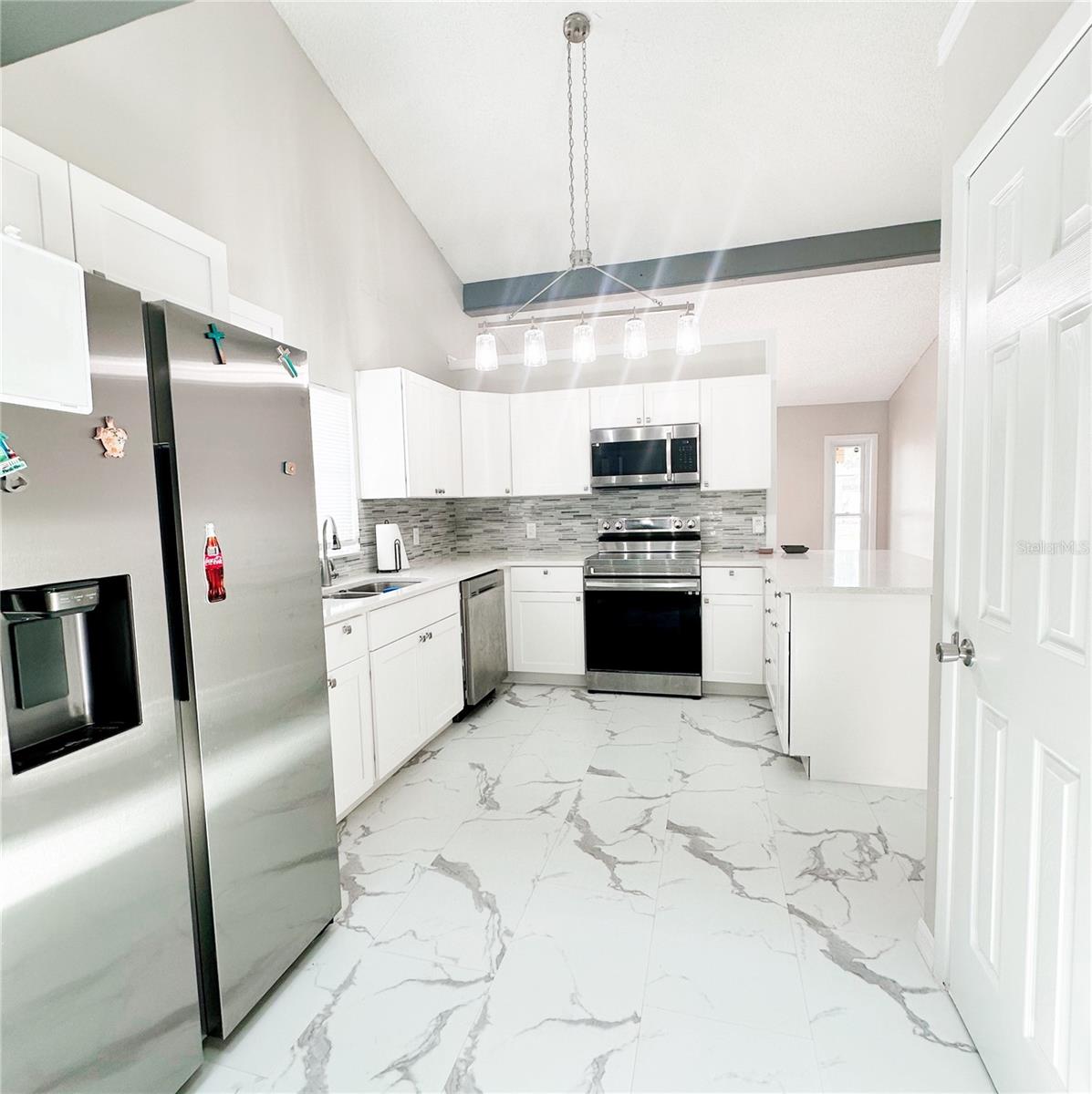 MOVE-IN READY & COMPLETELY REMODELED! This stunning home features a bright, open layout with modern shiplap accents, skylights, and a cozy fireplace. Enjoy NEW luxury vinyl plank flooring, a chef’s kitchen with soft-close cabinets, quartz countertops, and stainless steel appliances. The owner’s suite includes a walk-in closet and private bath. Both bathrooms have been fully updated. Plus, you’ll love the NEW roof, HVAC, tankless water heater, and freshly painted exterior. Relax in the oversized screened lanai with a brick patio—perfect for entertaining. NO HOA or CDD!