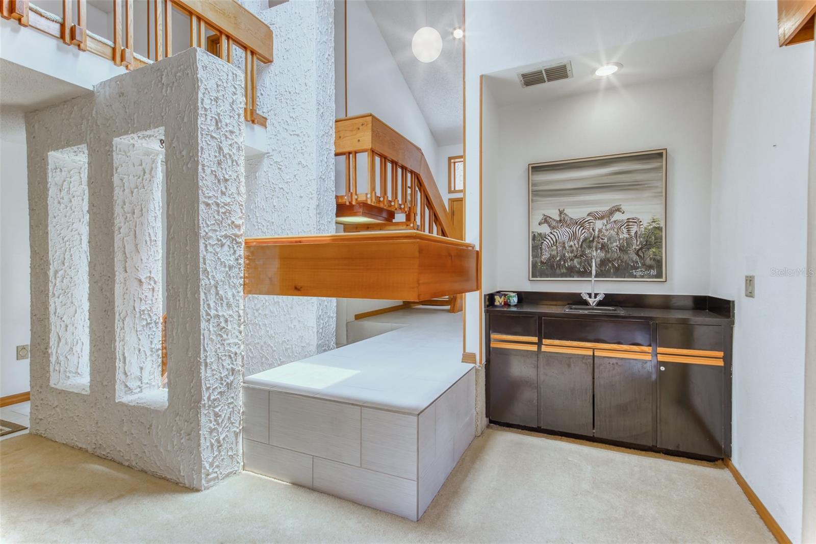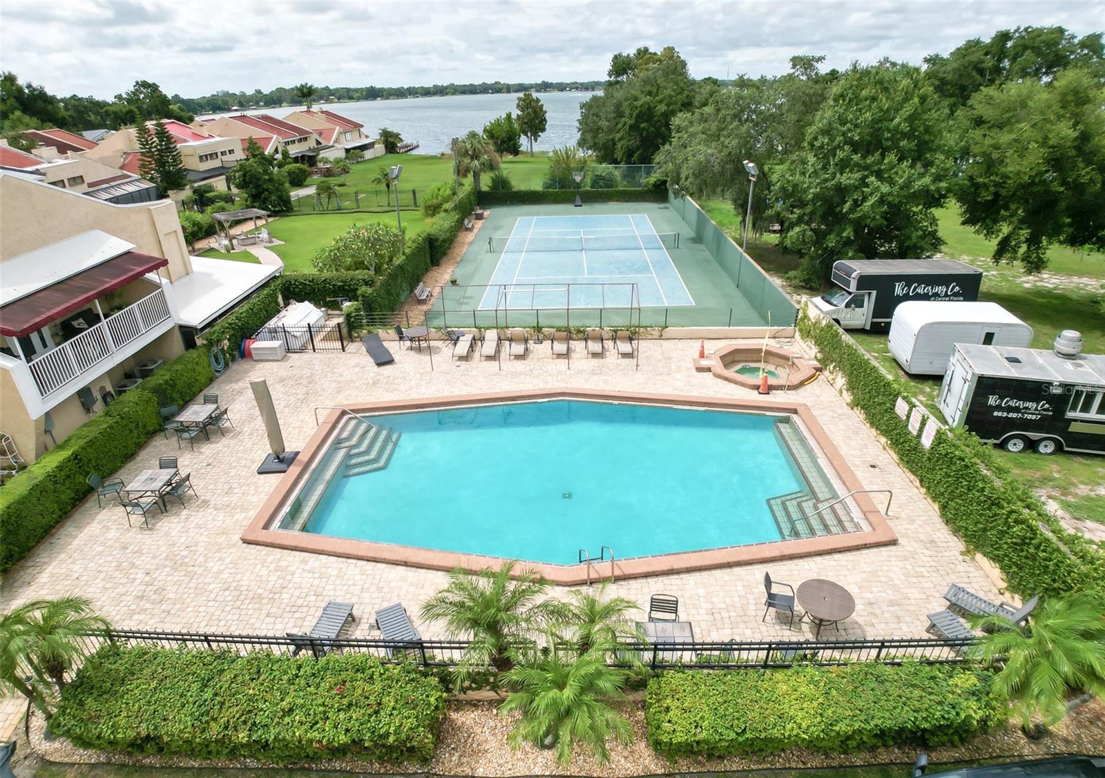 Discover a rare opportunity to own this architecturally distinctive 2-bedroom, 2.5-bath residence located in the gated community of Casarean on the Lakes. This well-designed home offers an impressive blend of indoor and outdoor living spaces. The main level features a formal living room with a fireplace and wet bar, a dining area, a functional kitchen with breakfast bar, a guest half bath, and two private outdoor living areas. An attached one-car garage provides added convenience. Upstairs, you’ll find two spacious bedroom suites each with a private en-suite bath, as well as a versatile loft area. Step out to the screened balcony or the open upper deck, perfect for enjoying tranquil lake views and evening breezes. Community amenities include a swimming pool with spa, tennis court, lakeside dock, beach area, and a gated entry with electronic access. Whether you're seeking a seasonal retreat or a full-time residence, this unique property offers comfort, style, and a desirable location.