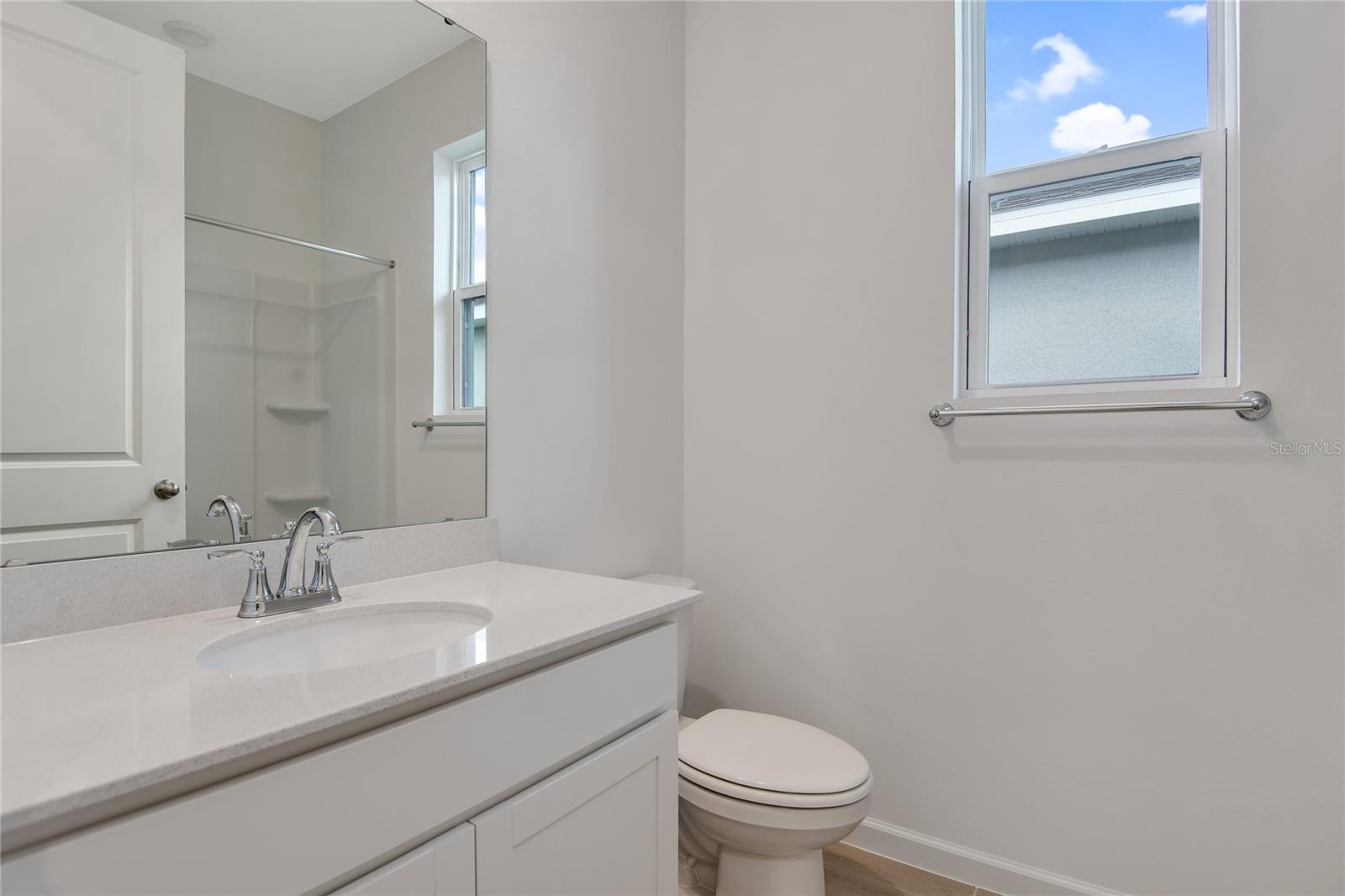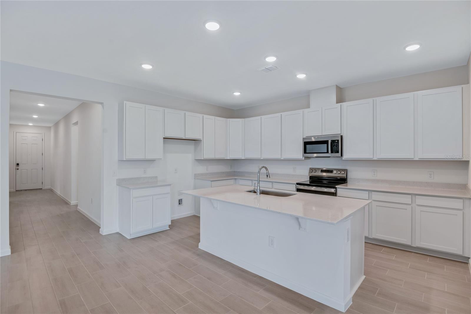 This home offers, 9"4' ceilings and 8' doors, 42' cabinets, white quartz counter tops in kitchen, ceramic tile throughout the wet and main living areas of the home, all bedrooms, family room, and covered lanai are prewired for ceiling fans, secondary bedroom with its own bathroom.