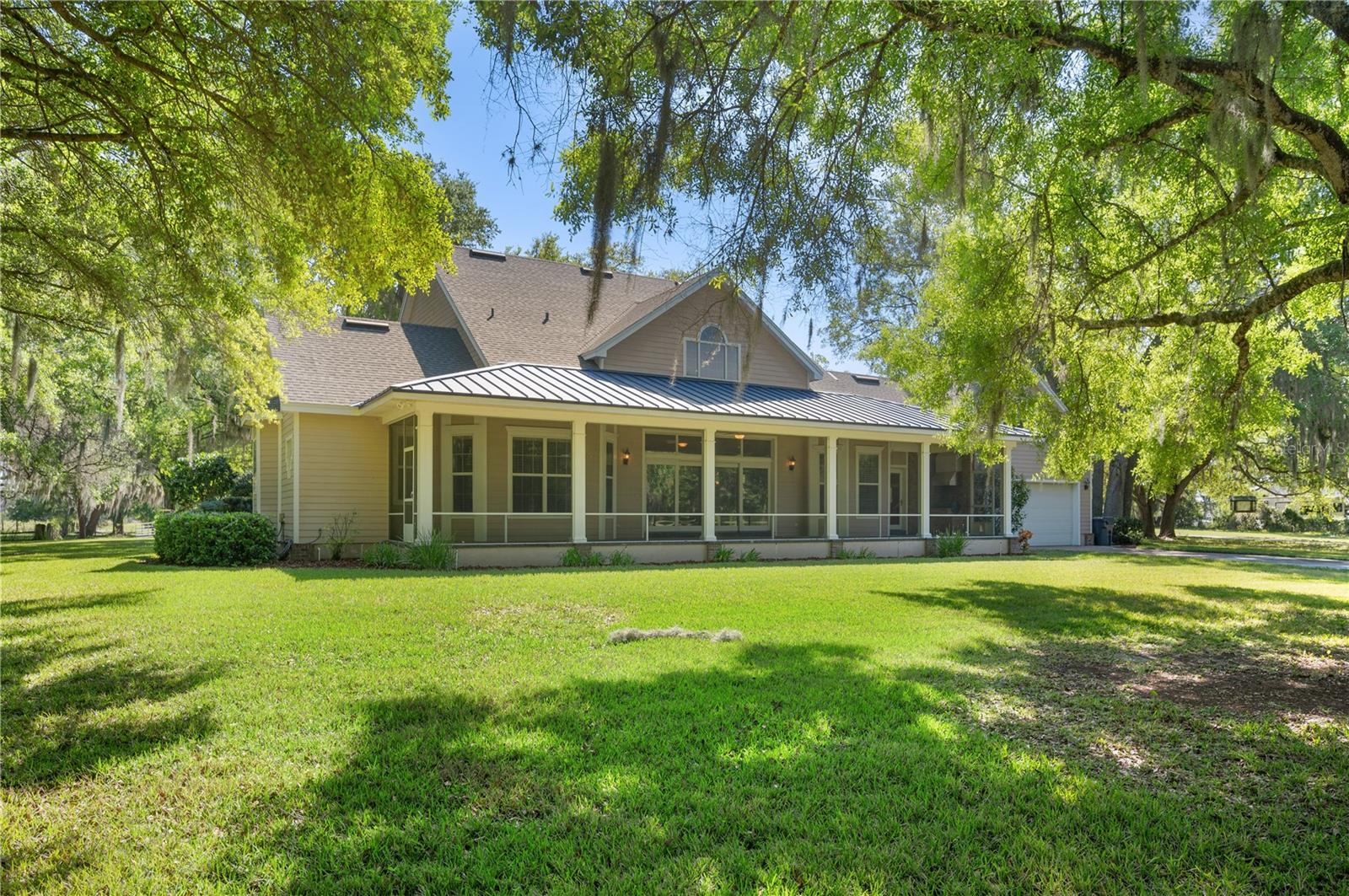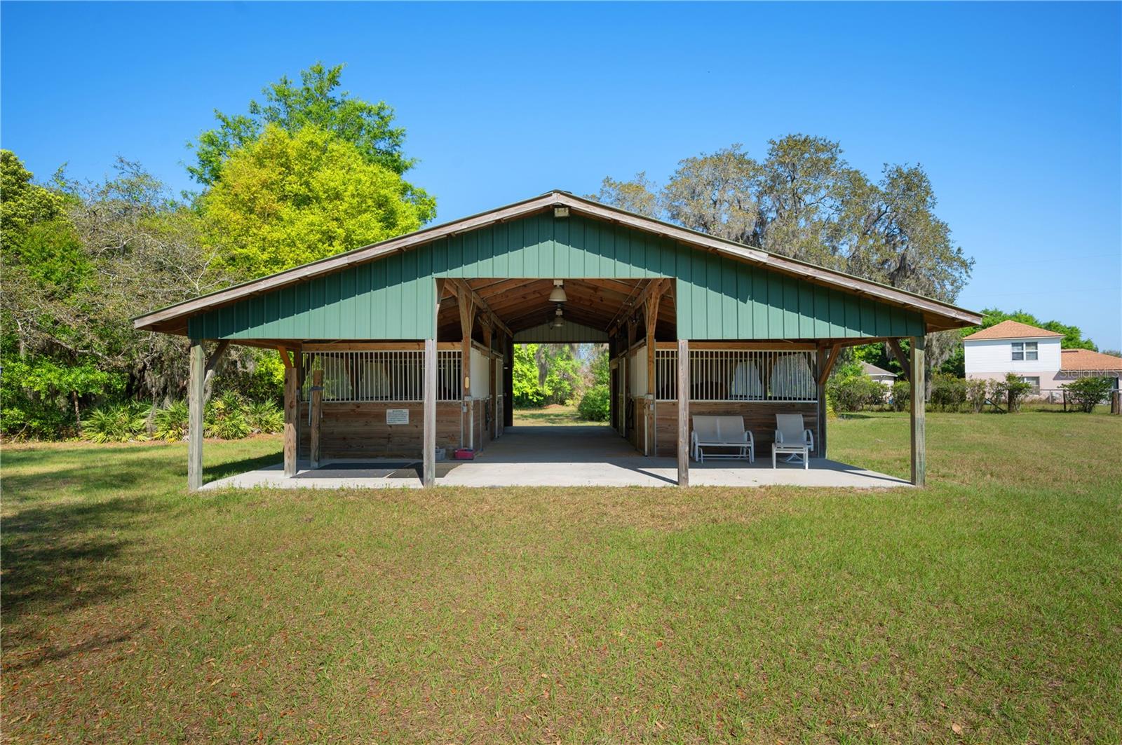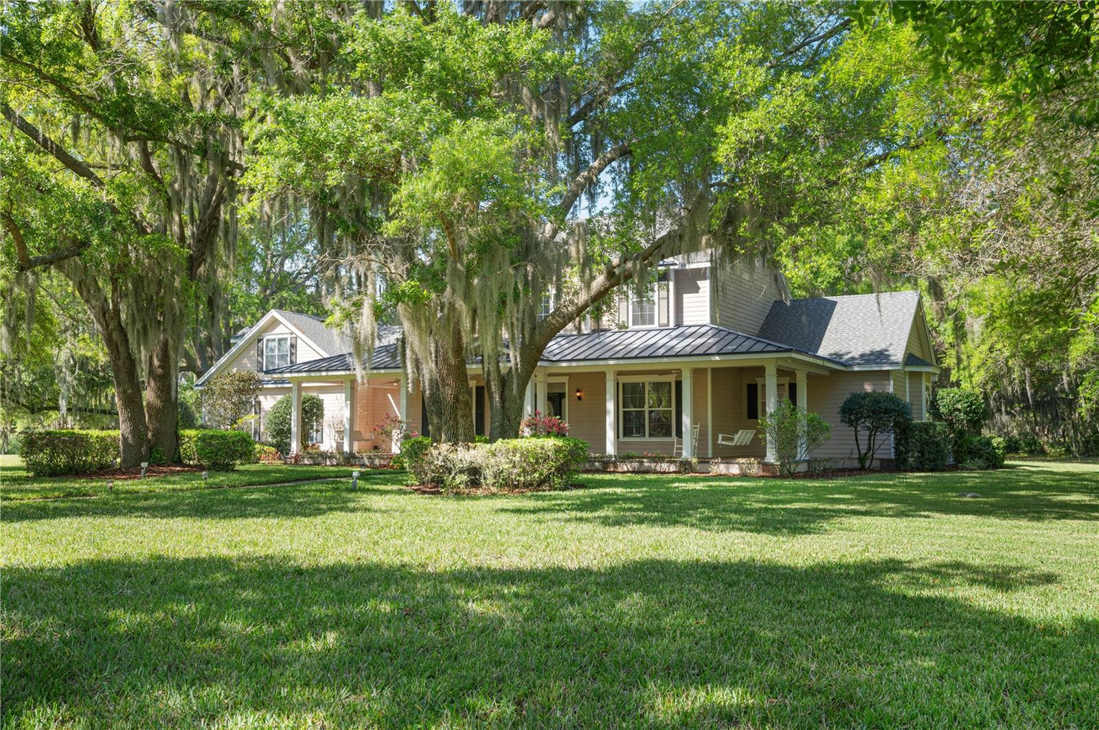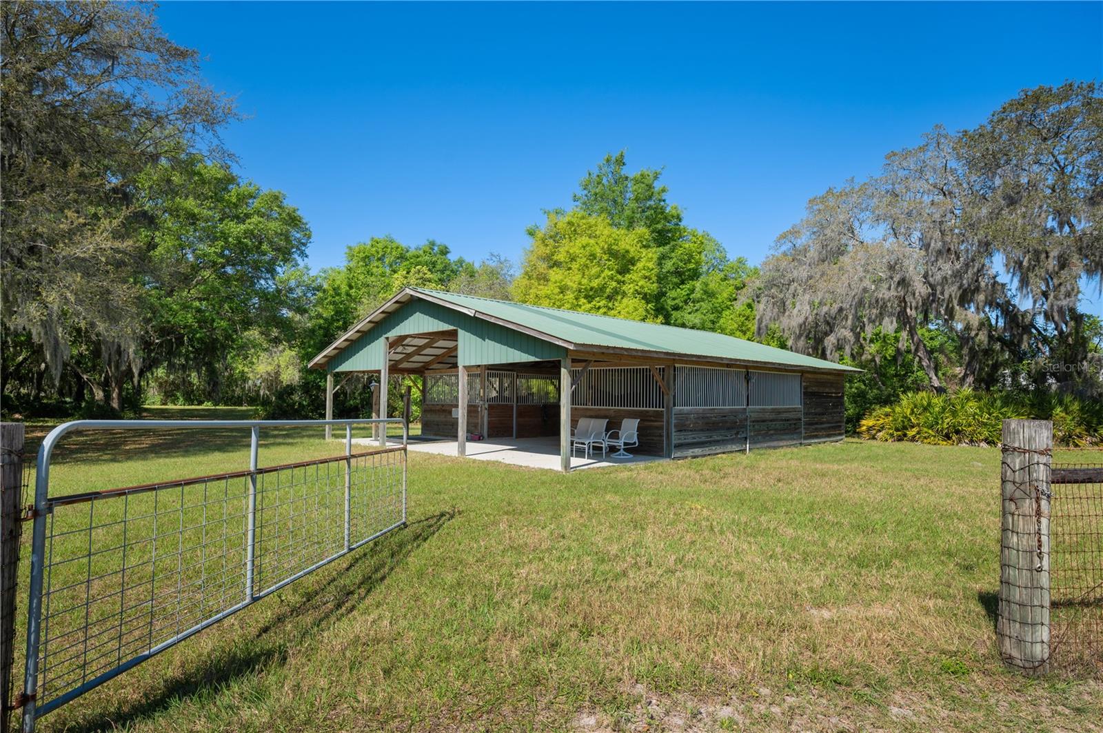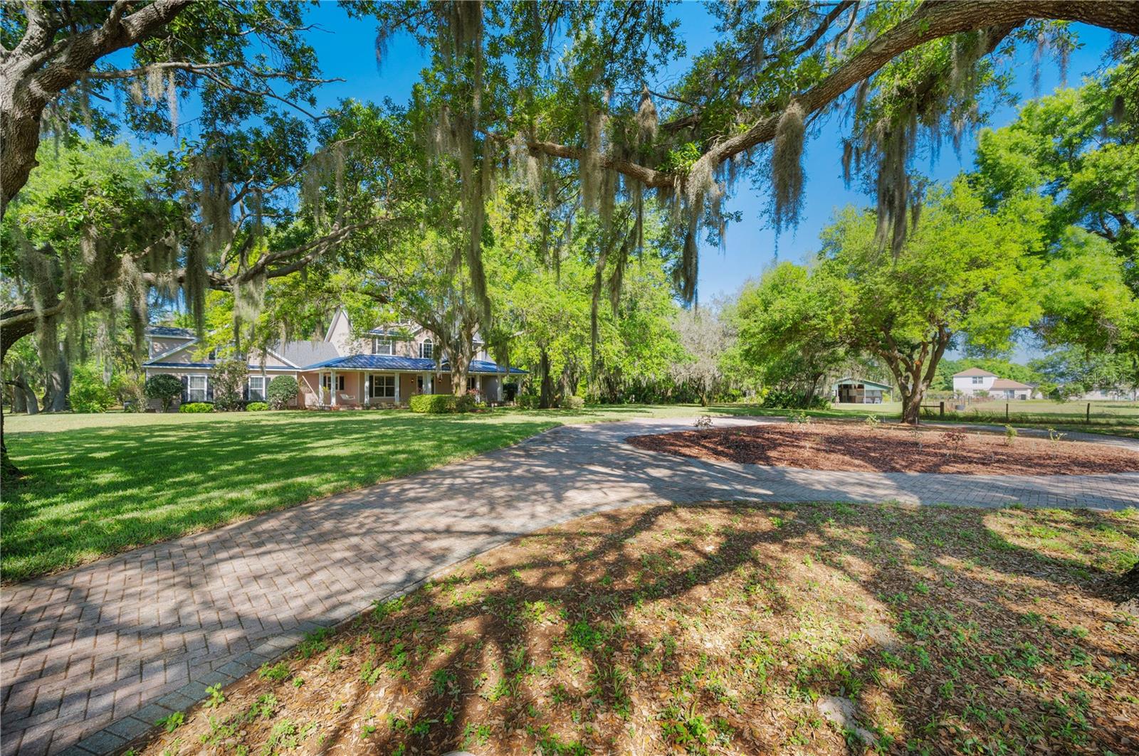 Prepare to be captivated by this enchanting 19-acre estate, a haven tailored for those with a passion for horses and nature! This expansive property boasts a spacious 3-bedroom, 3.5-bathroom home spanning over 3,700 sqft, offering a seamless fusion of opulence and comfort. Nestled amidst serene surroundings, including a tranquil pond and lush forests, this retreat provides a picturesque backdrop for creating cherished family memories. The horse stables add a touch of countryside allure, making it a haven for equestrian enthusiasts. Every aspect of this magnificent home has been meticulously crafted. The grand formal dining room sets the stage for memorable family gatherings, while the living room features soaring vaulted ceilings and custom sliding glass doors that open to the fully screened back porch and manicured backyard. The office is a sanctuary of tranquility, adorned with stained wood paneling and a custom-built storage unit. The expansive master bedroom on the first floor exudes luxury with a high tray ceiling, crown molding, and a lavish master bathroom with a 2-person jetted tub, walk-in shower, dual vanities with granite countertops, and a spacious walk-in closet. The kitchen is a culinary masterpiece, equipped with granite countertops, a gas cooktop, electric warming drawer, built-in oven and microwave, dishwasher, and an island with a sink. Solid wood cabinets are beautifully complemented by custom lighting. The laundry room offers connections for an electric washer and either a gas or electric dryer, along with ample countertop workspace and storage. An oversized 2-car garage provides additional storage space with built-in shelving. Upstairs, two additional bedrooms feature generous closet space, and there's a spacious media/multipurpose room with a ceiling-mounted video projector, motorized 100-inch projection screen, surround sound, and a bar with sink, microwave, and mini-fridge. The property is equipped with two on-demand gas hot water systems, an in-wall vacuum system, and covered front and back porches with wooden swings. The living areas feature architectural shingles replaced in 2021 and 4 HVAC units ensure comfort even in the Florida heat, with two units less than 1 year old. Outside, you'll discover a 48x36 horse barn with 4 stalls and a tack room, along with a 36x39 pole barn with an enclosed tool/storage room. The house is enveloped by majestic oak trees, providing both privacy and shade. Conveniently located just 2 miles from the entrance to the Polk Parkway, with quick access to I-4 for travel to Tampa or Orlando in just 1 hour, this property offers the perfect blend of tranquility and convenience. Lakeland and Winter Haven are each only about 10 minutes away, offering a myriad of shopping and dining options. This property is truly a must-see to fully appreciate its beauty and charm. Best of all, there is no HOA to restrict your lifestyle.