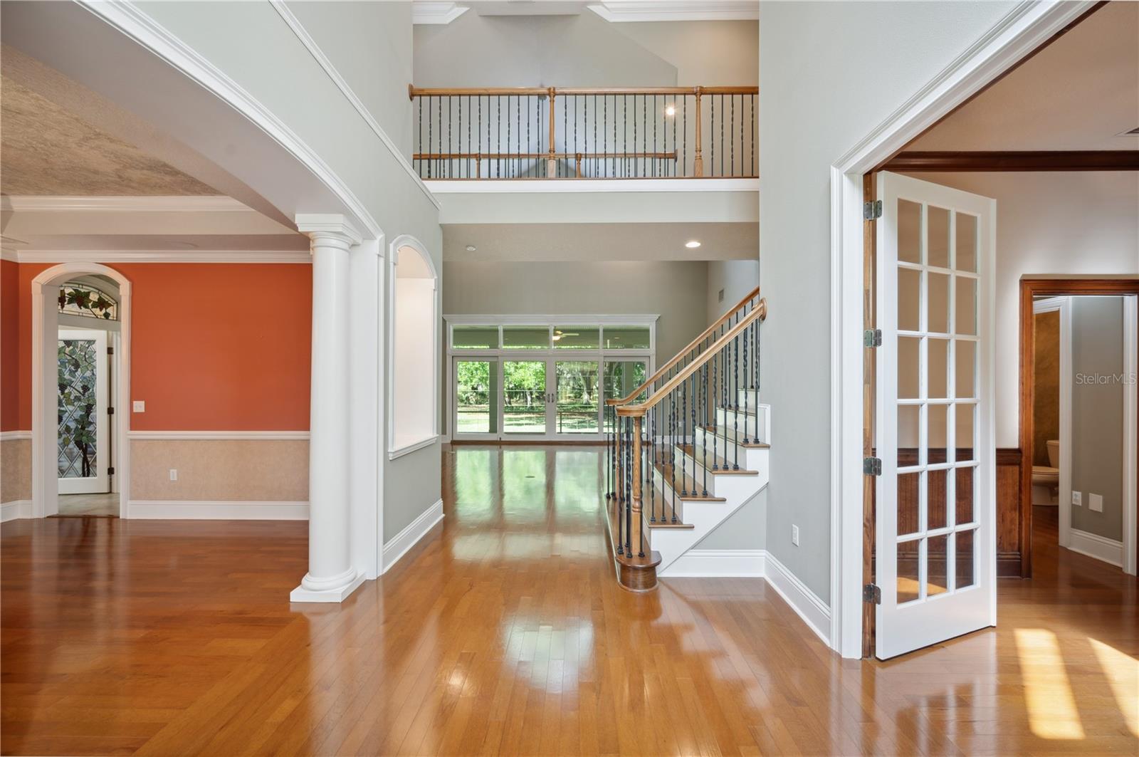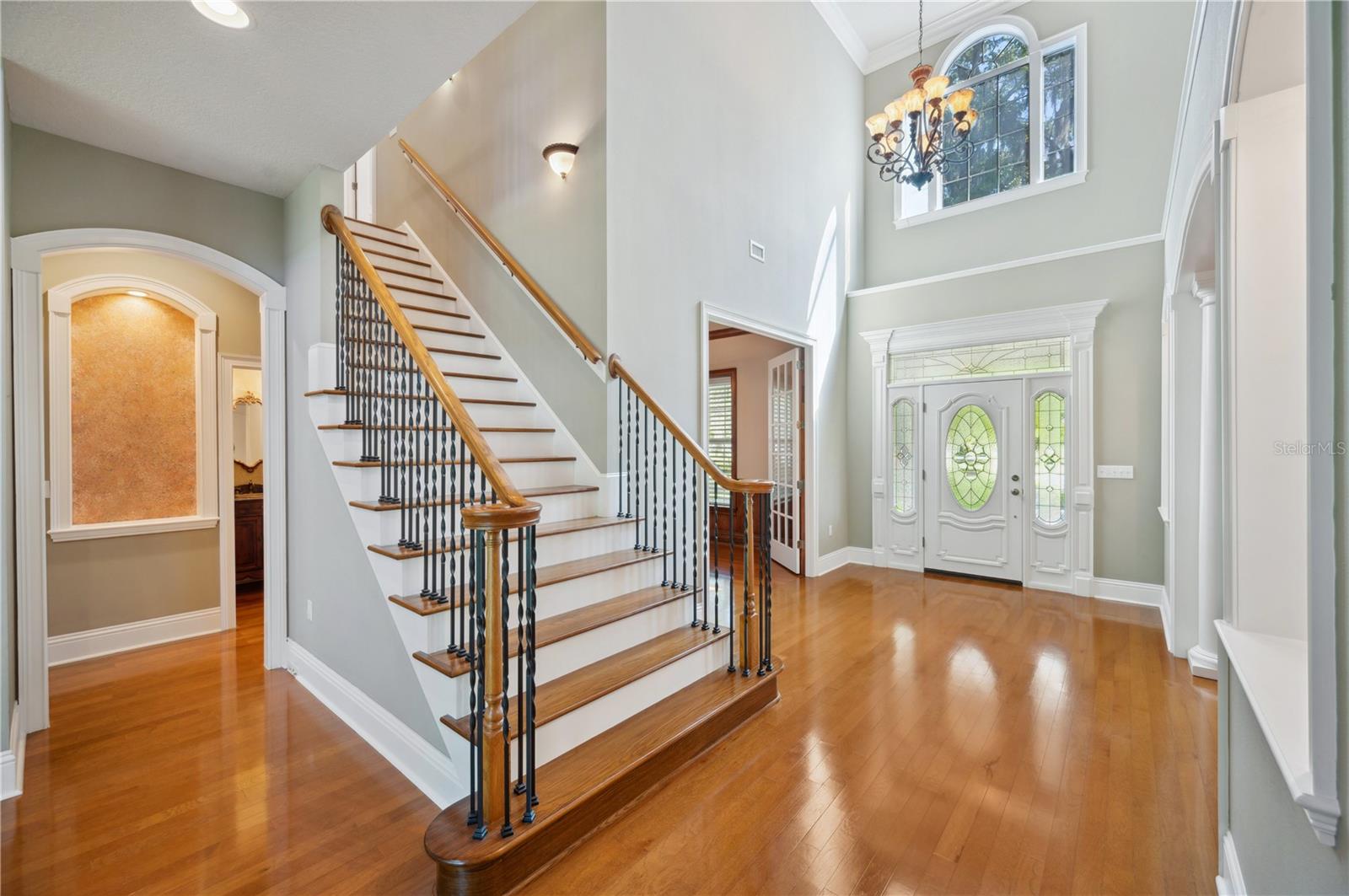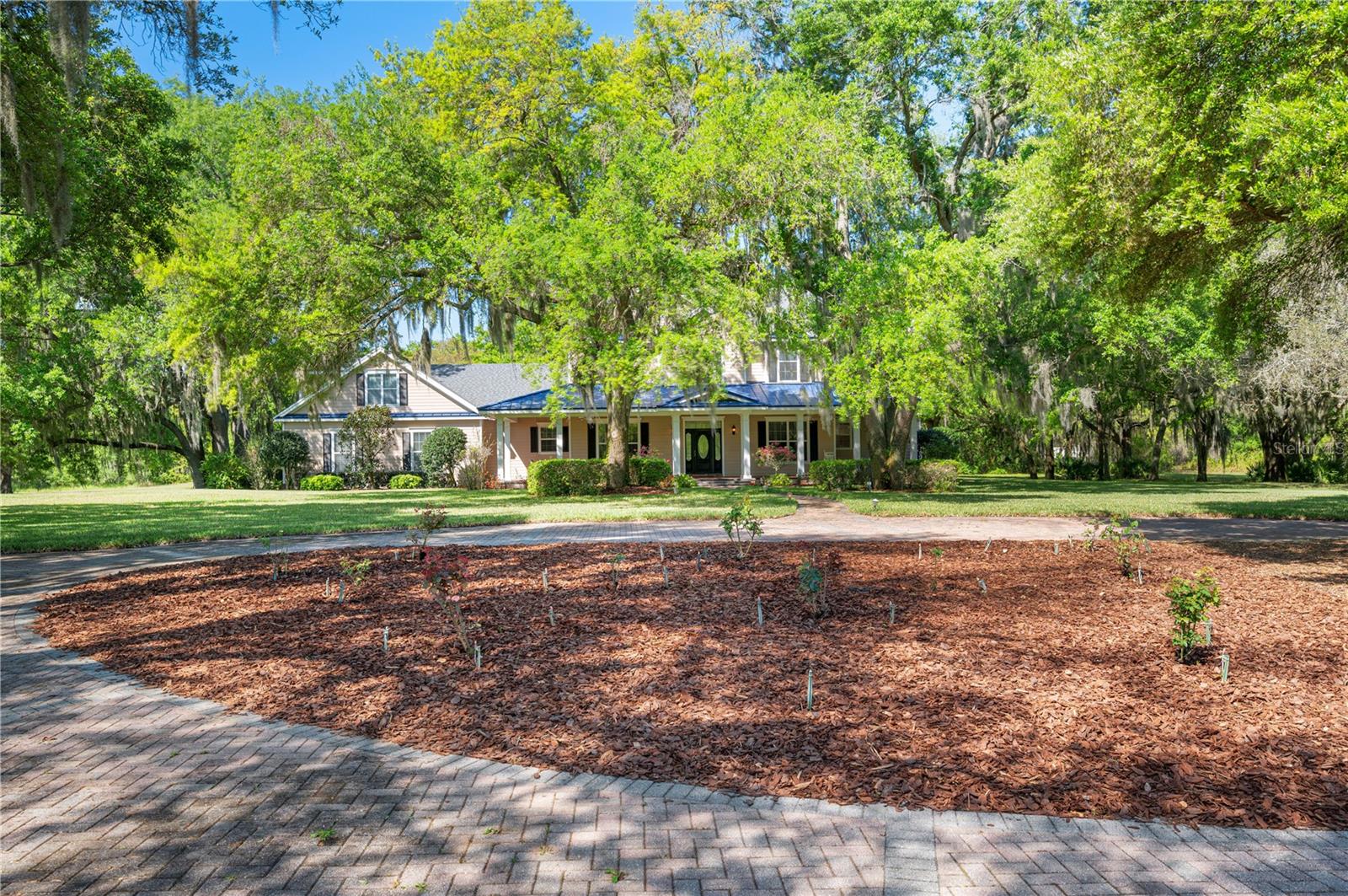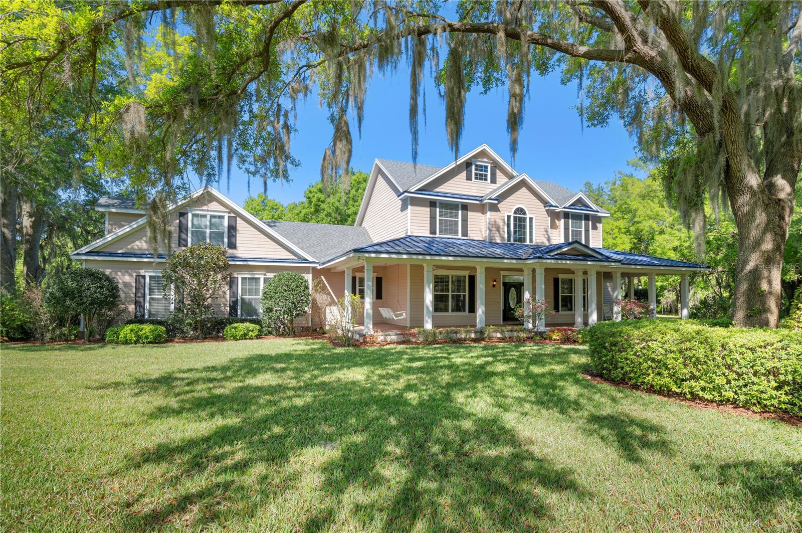 Prepare to be captivated by this enchanting 19-acre estate, a haven tailored for those with a passion for horses and nature! This expansive property boasts a spacious 3-bedroom, 3.5-bathroom home spanning over 3,700 sqft, offering a seamless fusion of opulence and comfort. Nestled amidst serene surroundings, including a tranquil pond and lush forests, this retreat provides a picturesque backdrop for creating cherished family memories. The horse stables add a touch of countryside allure, making it a haven for equestrian enthusiasts. Every aspect of this magnificent home has been meticulously crafted. The grand formal dining room sets the stage for memorable family gatherings, while the living room features soaring vaulted ceilings and custom sliding glass doors that open to the fully screened back porch and manicured backyard. The office is a sanctuary of tranquility, adorned with stained wood paneling and a custom-built storage unit. The expansive master bedroom on the first floor exudes luxury with a high tray ceiling, crown molding, and a lavish master bathroom with a 2-person jetted tub, walk-in shower, dual vanities with granite countertops, and a spacious walk-in closet. The kitchen is a culinary masterpiece, equipped with granite countertops, a gas cooktop, electric warming drawer, built-in oven and microwave, dishwasher, and an island with a sink. Solid wood cabinets are beautifully complemented by custom lighting. The laundry room offers connections for an electric washer and either a gas or electric dryer, along with ample countertop workspace and storage. An oversized 2-car garage provides additional storage space with built-in shelving. Upstairs, two additional bedrooms feature generous closet space, and there's a spacious media/multipurpose room with a ceiling-mounted video projector, motorized 100-inch projection screen, surround sound, and a bar with sink, microwave, and mini-fridge. The property is equipped with two on-demand gas hot water systems, an in-wall vacuum system, and covered front and back porches with wooden swings. The living areas feature architectural shingles replaced in 2021 and 4 HVAC units ensure comfort even in the Florida heat, with two units less than 1 year old. Outside, you'll discover a 48x36 horse barn with 4 stalls and a tack room, along with a 36x39 pole barn with an enclosed tool/storage room. The house is enveloped by majestic oak trees, providing both privacy and shade. Conveniently located just 2 miles from the entrance to the Polk Parkway, with quick access to I-4 for travel to Tampa or Orlando in just 1 hour, this property offers the perfect blend of tranquility and convenience. Lakeland and Winter Haven are each only about 10 minutes away, offering a myriad of shopping and dining options. This property is truly a must-see to fully appreciate its beauty and charm. Best of all, there is no HOA to restrict your lifestyle.