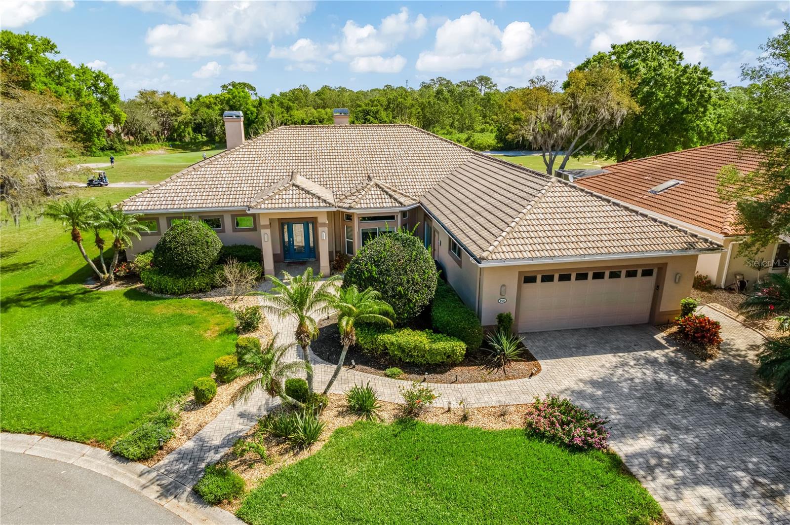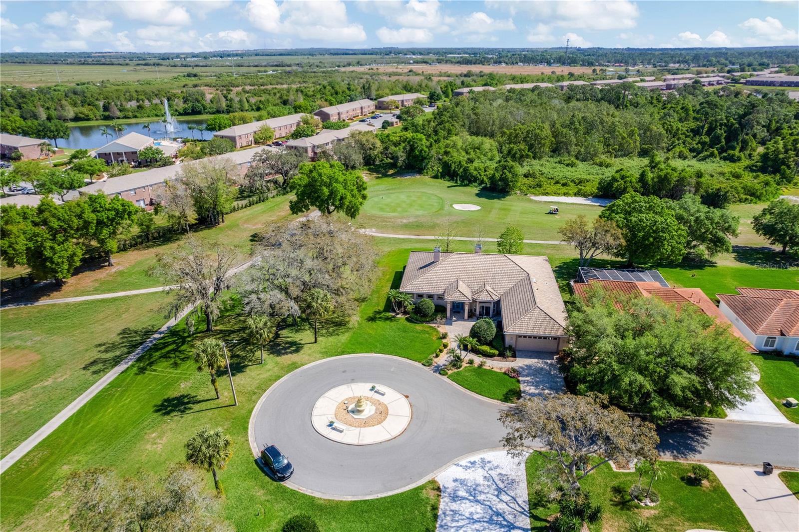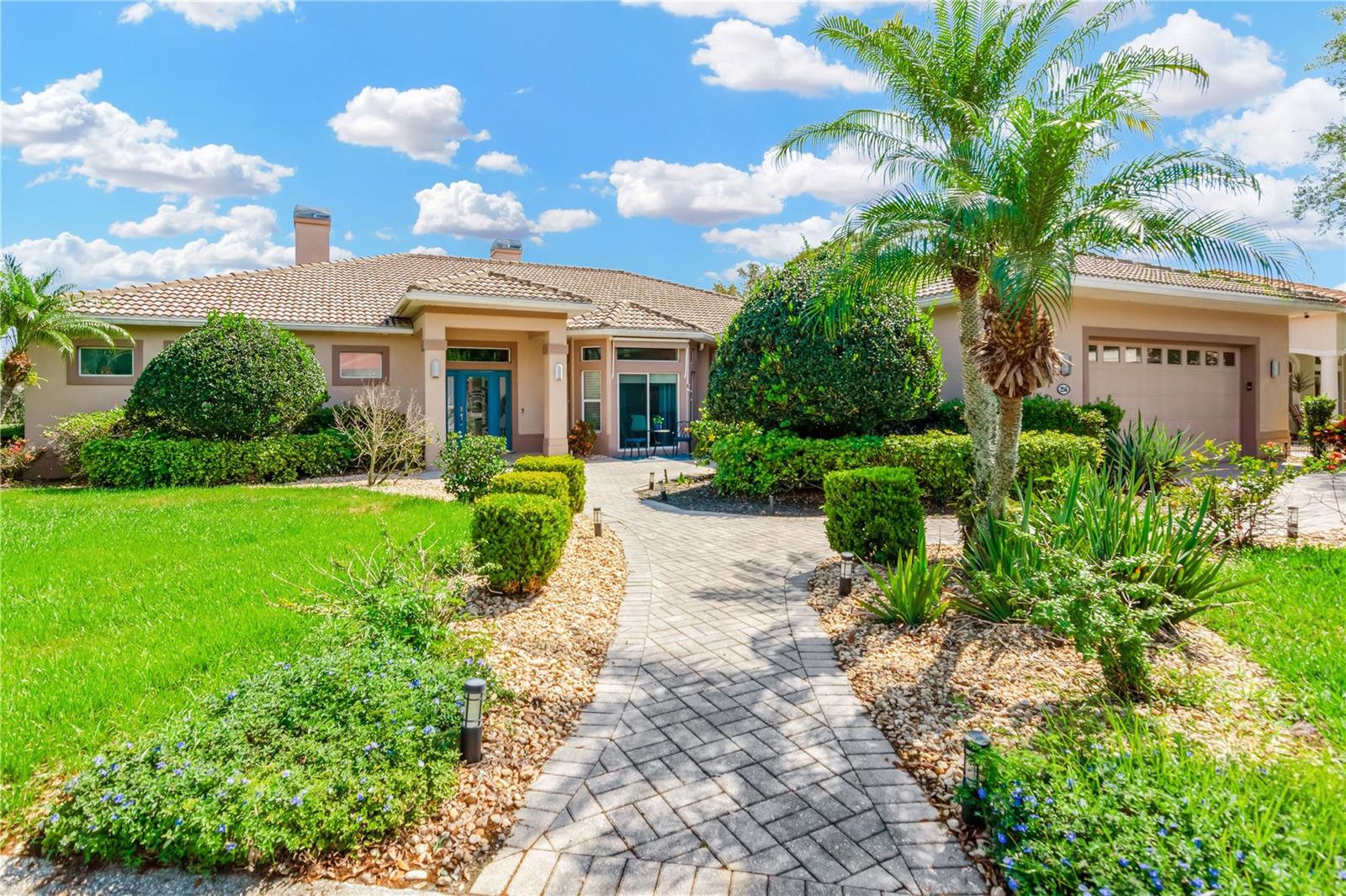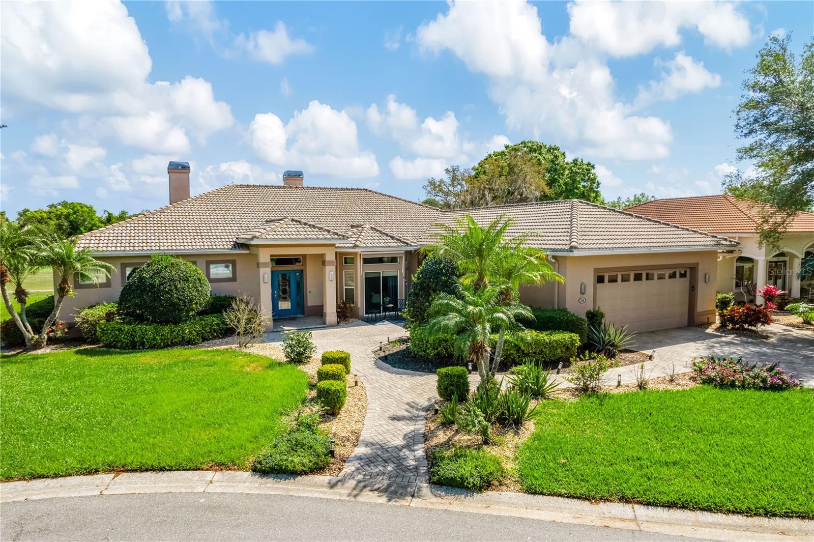 Seller has a VA loan eligible to be assumed by another Veteran with current interest rate of 3.625%. Buyer must qualify. More information available upon request. This community offers quiet, upscale living in custom built homes. Each of the forty-nine homes in Lake Bess Country Club share golf course ownership and club rights. With your home ownership comes unlimited golf rights to the uniquely constructed and maintained nine-hole course. This home has high quality upgrades and features that give it special elegance. Located at the end of a cul-de-sac with golf course views, and no other homes at the end, the front entrance highlighted with a grand water fountain and open views to the golf course. Stylish pavers feature the front hardscape from the front to the two-car-garage, and to the side golf-cart garage, a spectacular entrance. This home features golf course views from the front, side & backyard. This is a premier lot considered to be the best in the community. The home sits on almost one-third of an acre. This slice of paradise is located just four miles from Legoland, twenty-eight miles to Disney World and an hour to Orlando or Tampa’s International Airports. This single-story home features a grand main entrance that boasts an open floor plan to include the Living, Dining, Kitchen, and Florida rooms. Upon entry, you are captured by a vista golf course scene in the background with the Living room, Dining room, and Florida room in the foreground. Tile flooring accentuates the main living areas highlighted with a two-sided fireplace as the centerpiece with the Living room and the Dining room to each side. The Kitchen, just steps away, includes all the upgrades, from the tile to the cabinetry and the appliances. This kitchen is beautiful, no details left untouched. Quartz countertops, stainless steel appliances, and seating for up to six at the counter bring it all together along with the dry bar and wine rack. Finally, a built-out kitchenette with a view of the fountain in the cul-de-sac adds that special touch to enjoy for years to come. As you exit the Kitchen, through the living area you enter the Florida room. This is a 1,000 square foot multi-use room overlooking the golf course. This room is where you will spend days and nights enjoying the expanse behind you in an air-conditioned oasis. Enjoy the beautiful natural preserve in the distance with no other homes in sight. This is truly a diamond of a home. The entire home features expertly installed surround stereo, central vacuum, electronic window blinds, alarm & hurricane safe room systems. Yes, you read that correctly, this home has a “SAFE ROOM” built to protect your family in the event of a Hurricane or Tornado. This is a must see and an amazing feature like no other. The Primary Suite features dual walk-in closets, a gas fireplace, a huge bathroom that includes a walk-in shower with two shower heads, a deep soaking tub, and a double vanity with granite counters. Bedrooms 2 and 3 are large with approximately 180sf each. Both rooms have easy access to Florida room and one of the guest rooms features pocket sliding-glass doors. The separate, large office is an extra space for whatever you need it to be. Other improvements include a tile roof, A/C and Heat Pump replaced October 2021, roof replaced in 2018, grill area screened 2018, Gutters and the retractable awning covering added 2018, Florida room A/C added in 2019. Call and book your private tour of this spectacular home.