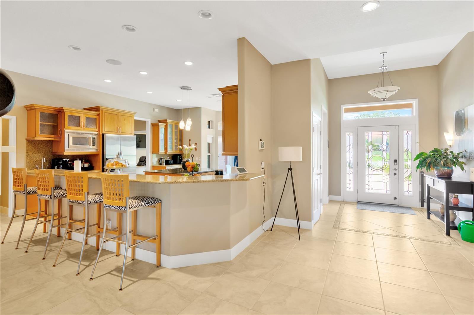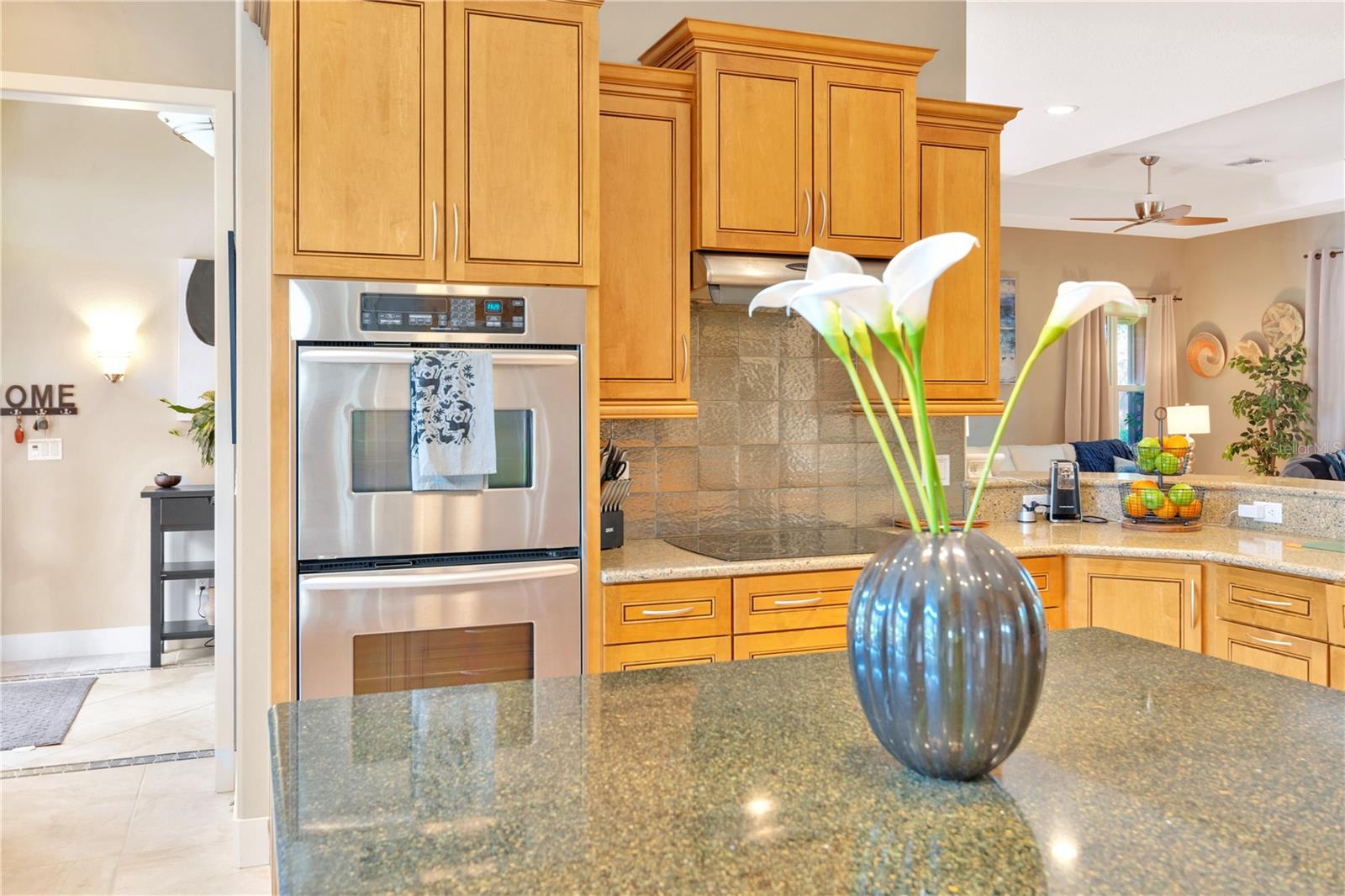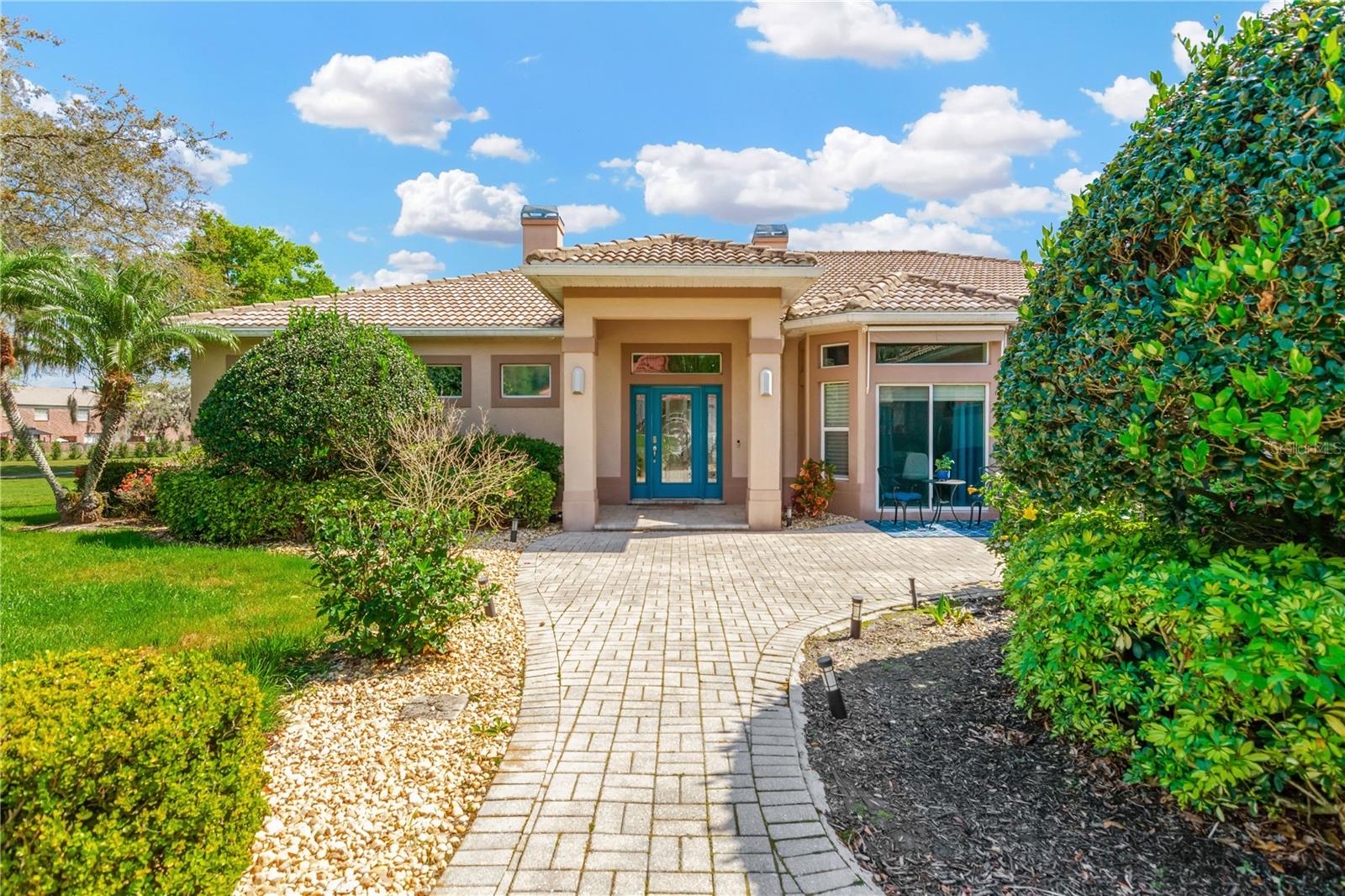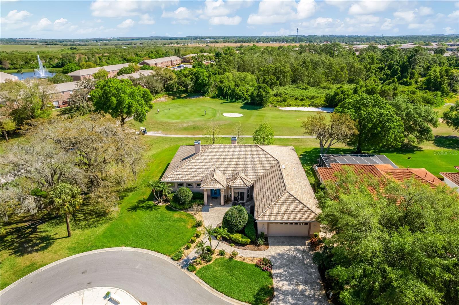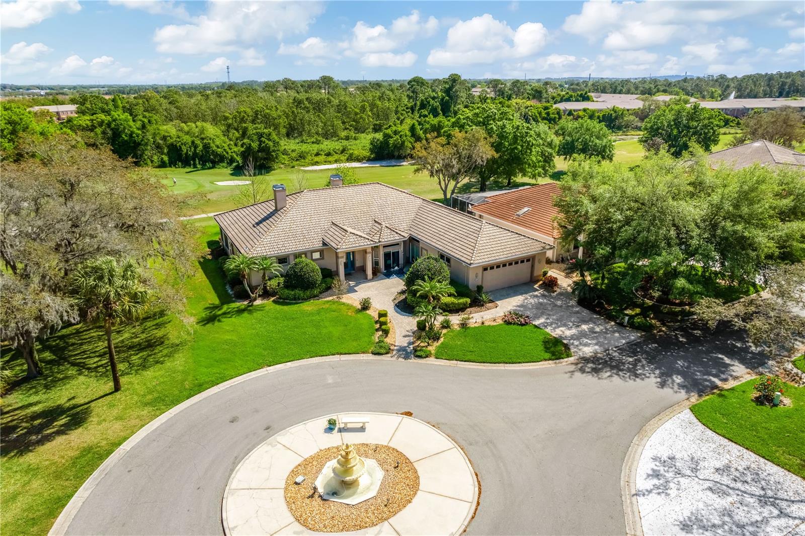 Seller has a VA loan eligible to be assumed by another Veteran with current interest rate of 3.625%. Buyer must qualify. More information available upon request. This community offers quiet, upscale living in custom built homes. Each of the forty-nine homes in Lake Bess Country Club share golf course ownership and club rights. With your home ownership comes unlimited golf rights to the uniquely constructed and maintained nine-hole course. This home has high quality upgrades and features that give it special elegance. Located at the end of a cul-de-sac with golf course views, and no other homes at the end, the front entrance highlighted with a grand water fountain and open views to the golf course. Stylish pavers feature the front hardscape from the front to the two-car-garage, and to the side golf-cart garage, a spectacular entrance. This home features golf course views from the front, side & backyard. This is a premier lot considered to be the best in the community. The home sits on almost one-third of an acre. This slice of paradise is located just four miles from Legoland, twenty-eight miles to Disney World and an hour to Orlando or Tampa’s International Airports. This single-story home features a grand main entrance that boasts an open floor plan to include the Living, Dining, Kitchen, and Florida rooms. Upon entry, you are captured by a vista golf course scene in the background with the Living room, Dining room, and Florida room in the foreground. Tile flooring accentuates the main living areas highlighted with a two-sided fireplace as the centerpiece with the Living room and the Dining room to each side. The Kitchen, just steps away, includes all the upgrades, from the tile to the cabinetry and the appliances. This kitchen is beautiful, no details left untouched. Quartz countertops, stainless steel appliances, and seating for up to six at the counter bring it all together along with the dry bar and wine rack. Finally, a built-out kitchenette with a view of the fountain in the cul-de-sac adds that special touch to enjoy for years to come. As you exit the Kitchen, through the living area you enter the Florida room. This is a 1,000 square foot multi-use room overlooking the golf course. This room is where you will spend days and nights enjoying the expanse behind you in an air-conditioned oasis. Enjoy the beautiful natural preserve in the distance with no other homes in sight. This is truly a diamond of a home. The entire home features expertly installed surround stereo, central vacuum, electronic window blinds, alarm & hurricane safe room systems. Yes, you read that correctly, this home has a “SAFE ROOM” built to protect your family in the event of a Hurricane or Tornado. This is a must see and an amazing feature like no other. The Primary Suite features dual walk-in closets, a gas fireplace, a huge bathroom that includes a walk-in shower with two shower heads, a deep soaking tub, and a double vanity with granite counters. Bedrooms 2 and 3 are large with approximately 180sf each. Both rooms have easy access to Florida room and one of the guest rooms features pocket sliding-glass doors. The separate, large office is an extra space for whatever you need it to be. Other improvements include a tile roof, A/C and Heat Pump replaced October 2021, roof replaced in 2018, grill area screened 2018, Gutters and the retractable awning covering added 2018, Florida room A/C added in 2019. Call and book your private tour of this spectacular home.