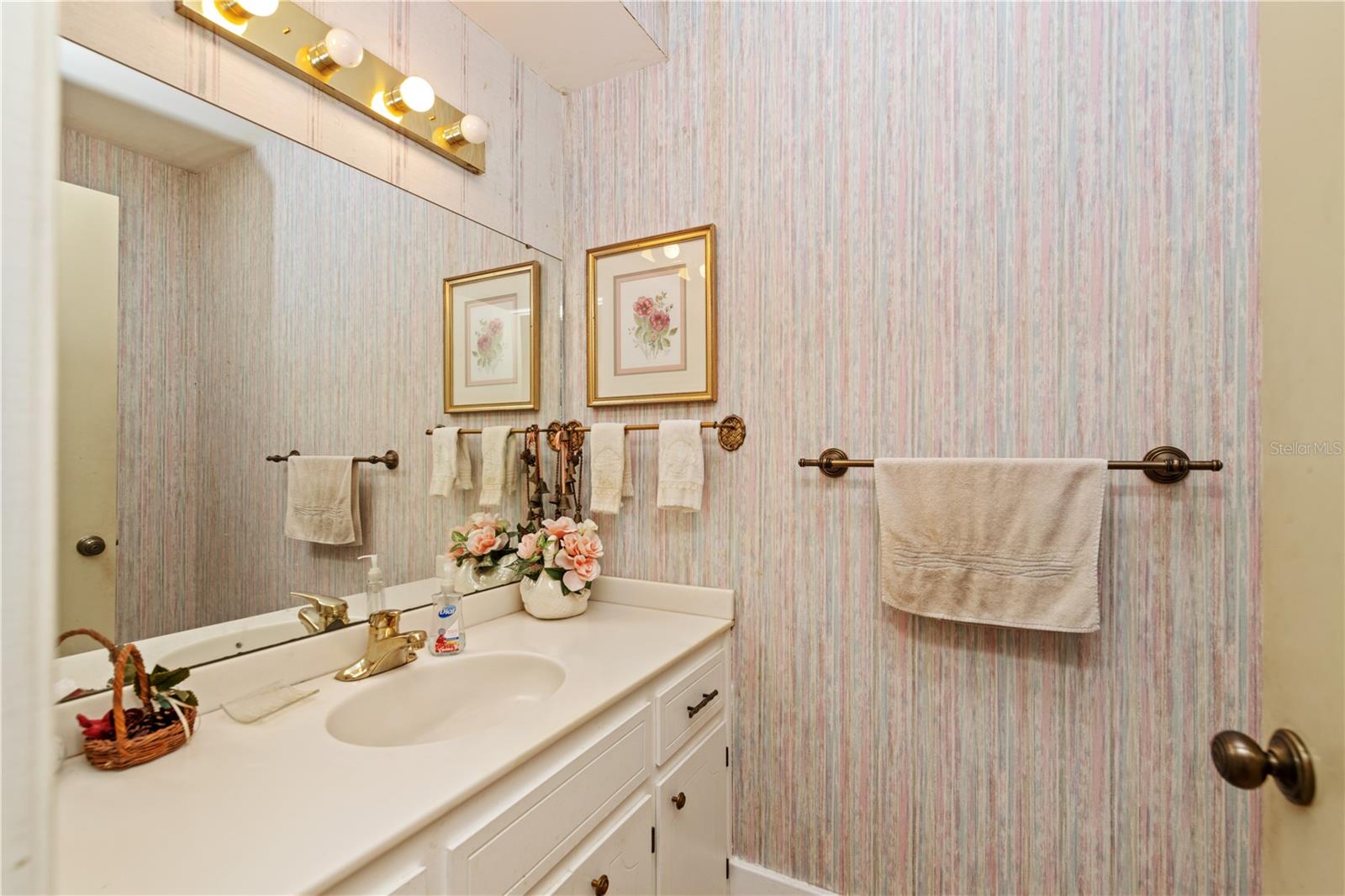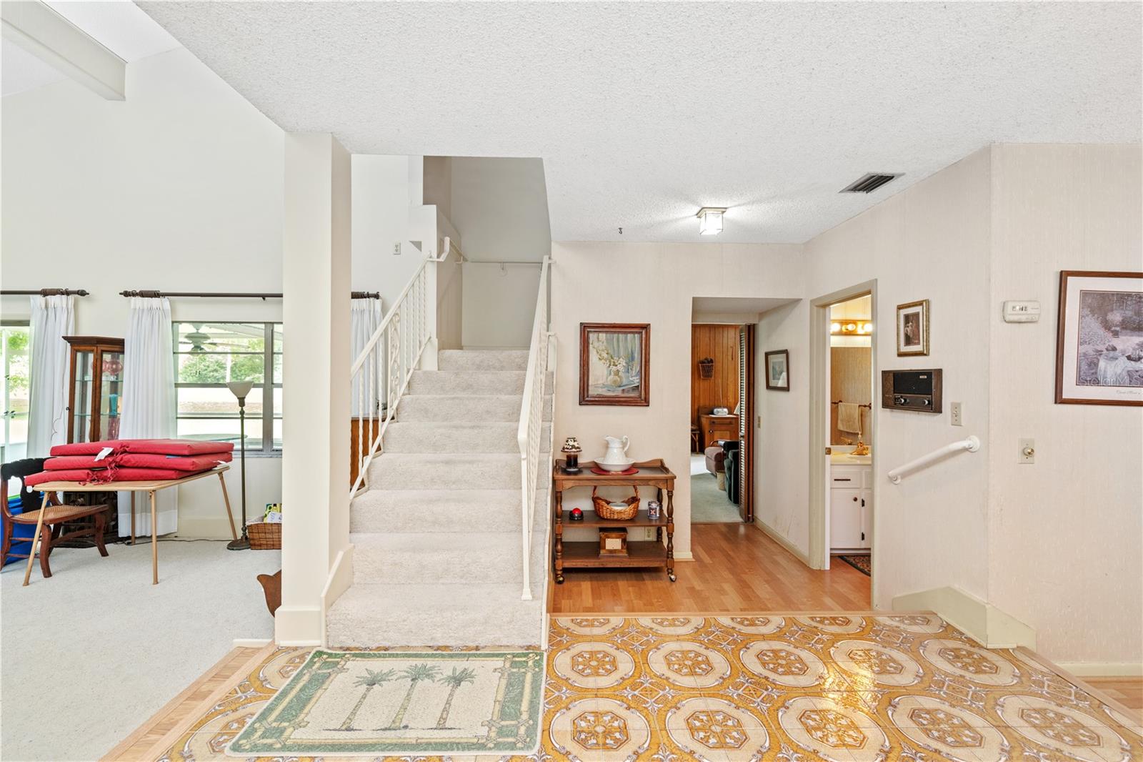 Welcome home, this beautiful 1975 two story three bedroom two and a half bathroom home with 2,350 sq ft of living is spacious and inviting. Wood burning fireplace with log holder built-in in the main living area, large vaulted ceiling with sliding glass doors that lead out to the spacious 30x18 screened in patio overlooking the 14th hole of the Cypress wood golf course. Walk up the staircase that will lead to one guest bedroom and a guest bathroom along with a spacious master bedroom and master bathroom. One bedroom downstairs near front of home is perfect for a guest or private office. Formal dining room just off the recently updated kitchen with built in cabinets . Separate family room by the kitchen allows for quiet relaxation during breakfast and dinner. Large two car garage with washer and dryer hookups. Separate attached two car air conditioned garage with a golf cart pass through door allows for additional storage of a boat or golf cart. The large .48 lot is a serene and comfortable yard with shade trees and golf course access. This security gated community of Cypress Wood offers a clubhouse and golf course that is also available to the public. Call today for a private tour.
