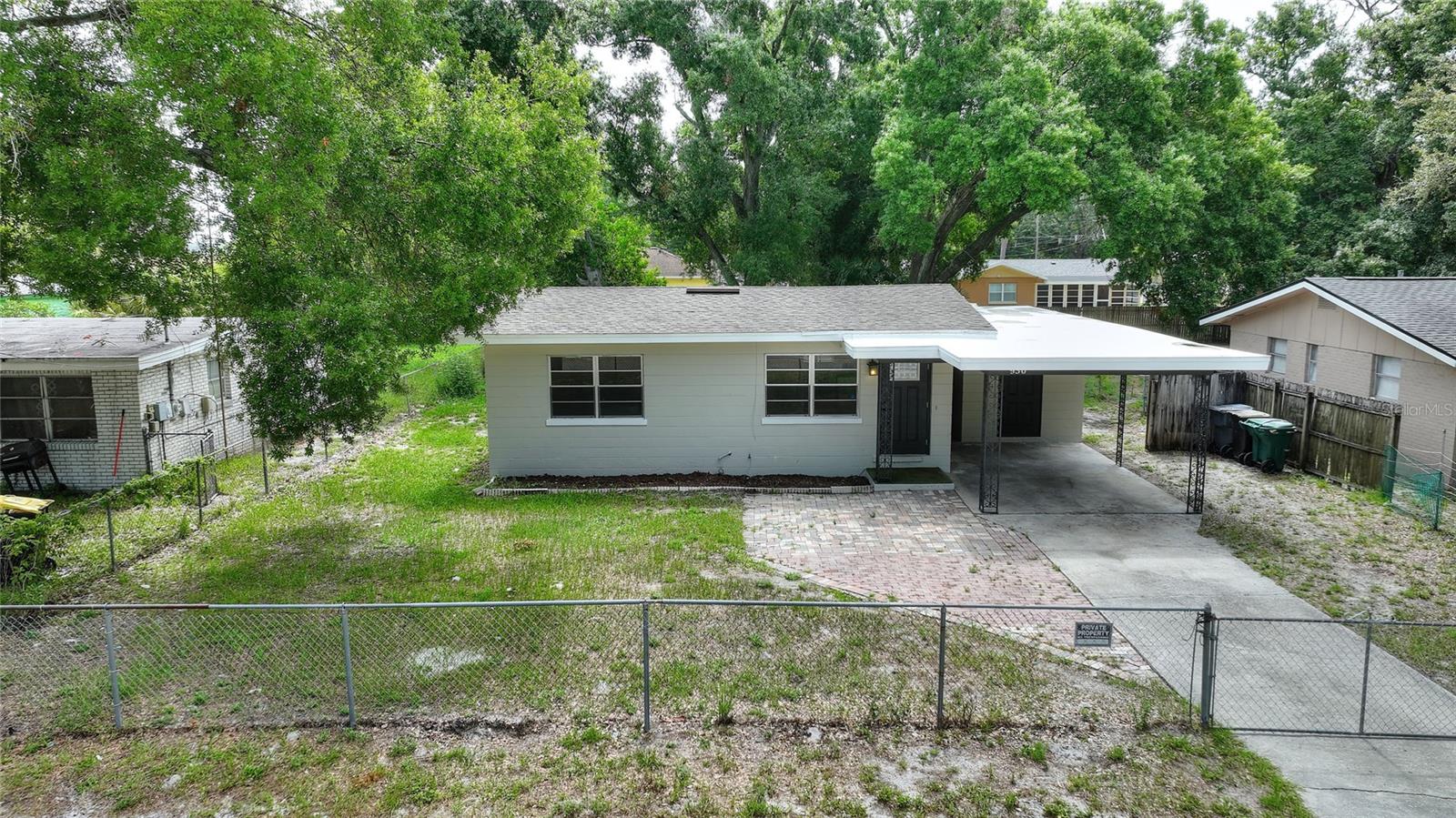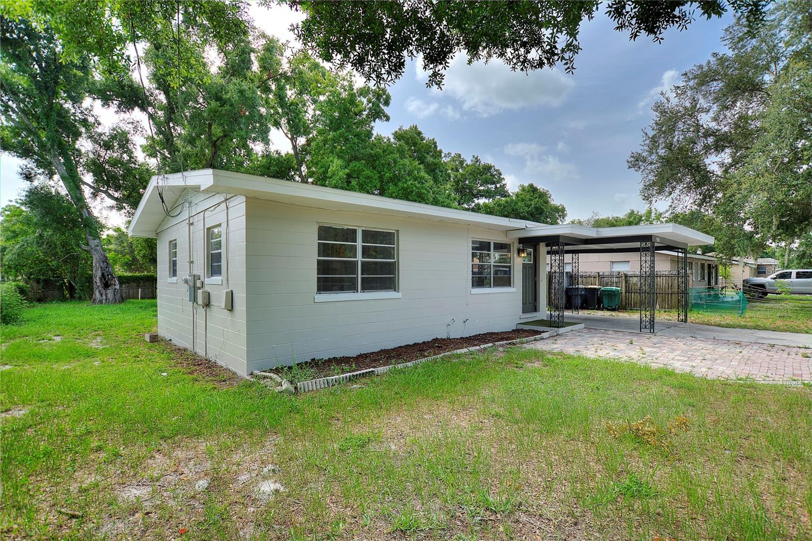 UPDATED KITCHEN AND PAINT !!Welcome to this charming 2-bedroom, 1-bathroom home with endless potential to customize and make your own! The home is situated in a quiet neighborhood on a beautiful lot with mature trees, a spacious backyard, and a covered carport. As you step inside the home, the natural light each room receives, the fresh coat of paint throughout, and the seamless flow from the living room to the kitchen will draw your eye. A bonus to this property is the additional living space, perfect for an additional bedroom, designated dining, or a den. Florida living is all about the outdoors, and this home's backyard is the perfect place to get outside to enjoy the sunshine, with plenty of room to customize the space for outdoor activities and relaxation. Enjoy the proximity to local shopping, dining, schools, and parks for outdoor recreation. This home is filled with the potential to create your dream home in a beautiful neighborhood. Take advantage of this opportunity and call to book your showing TODAY!