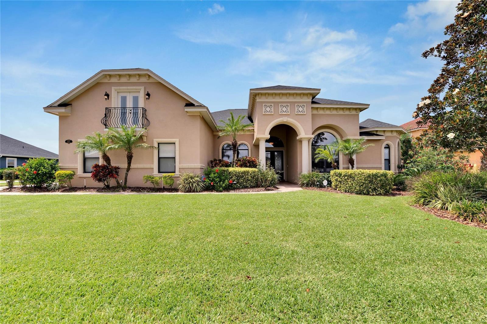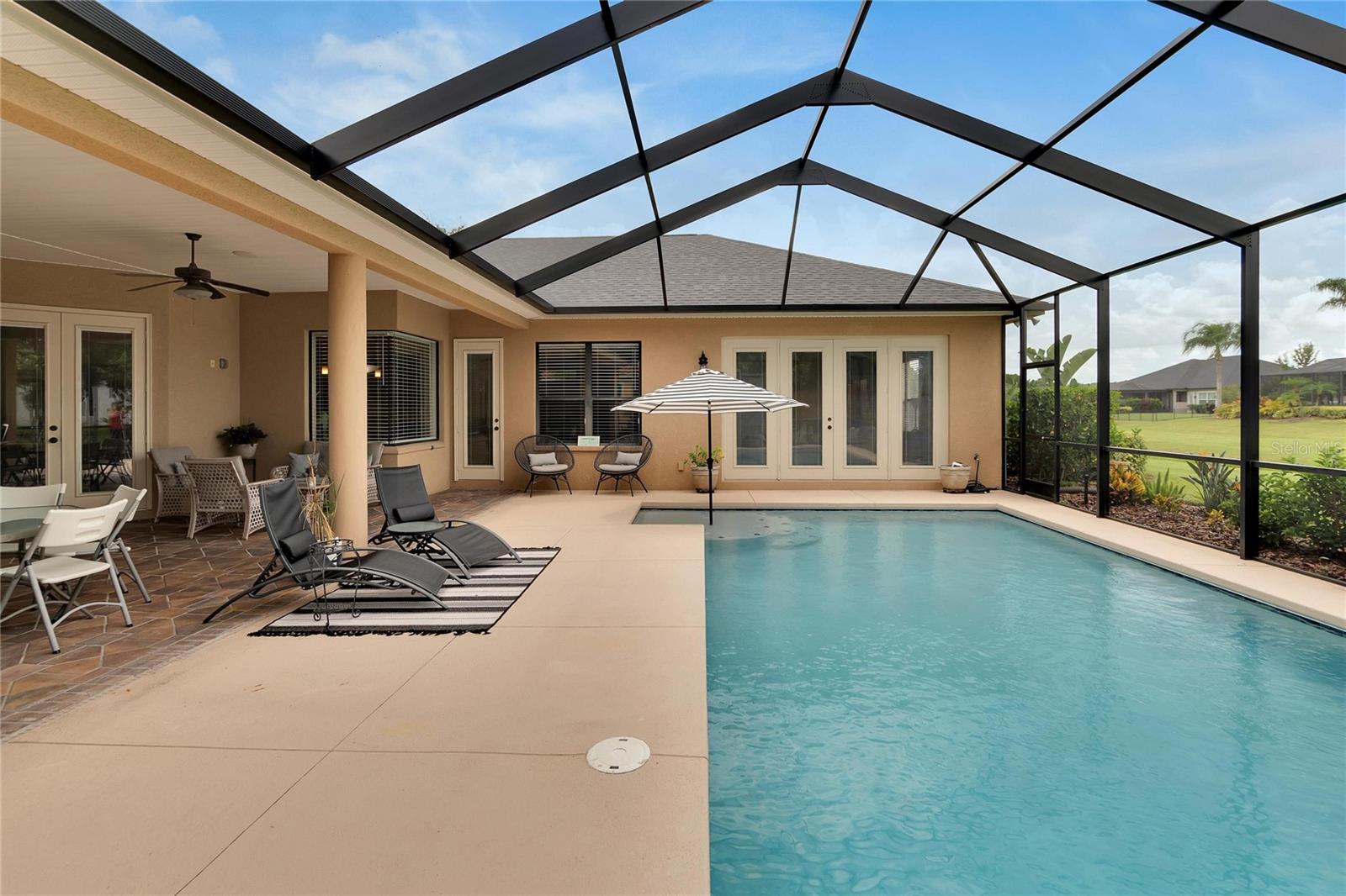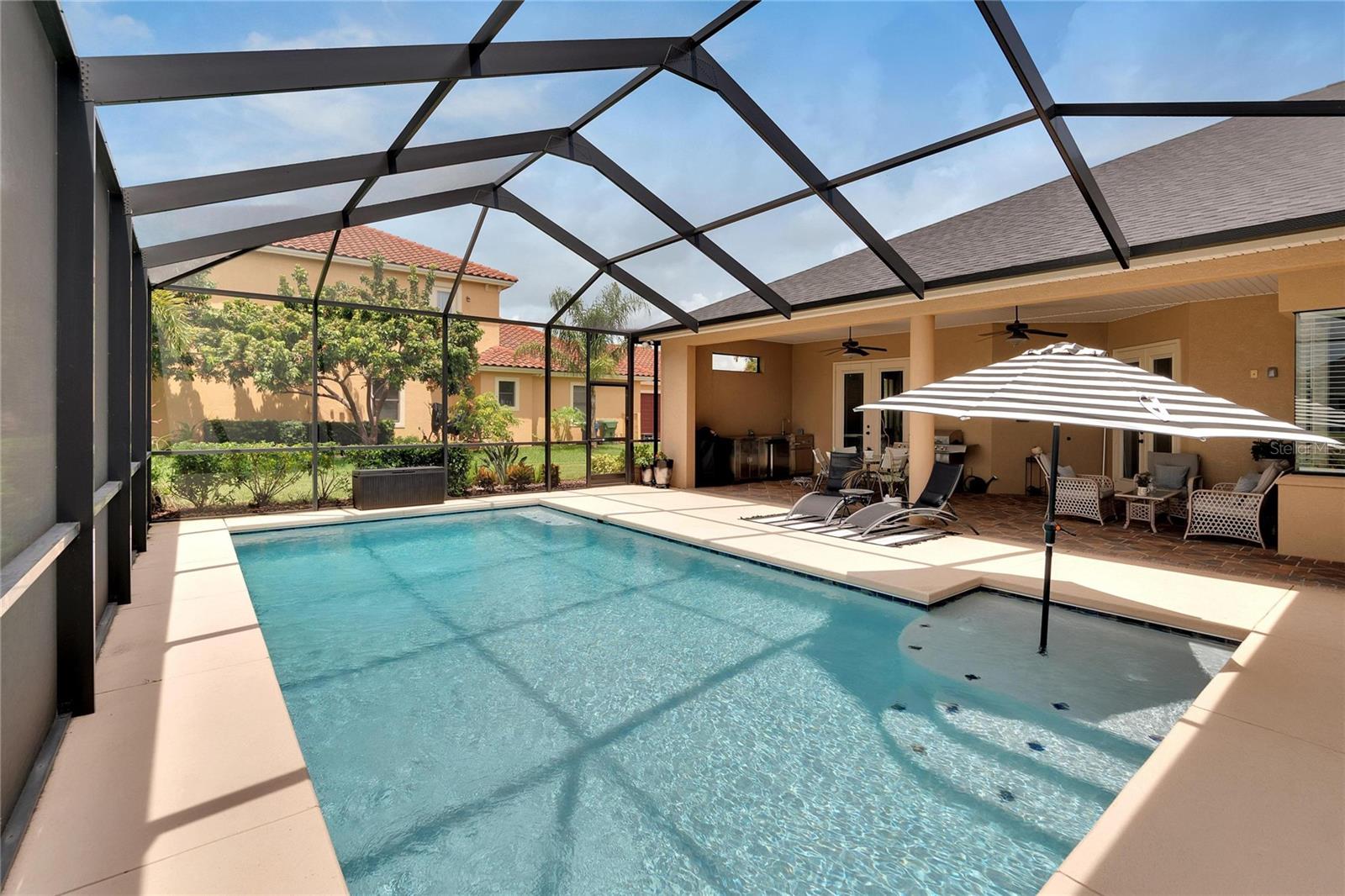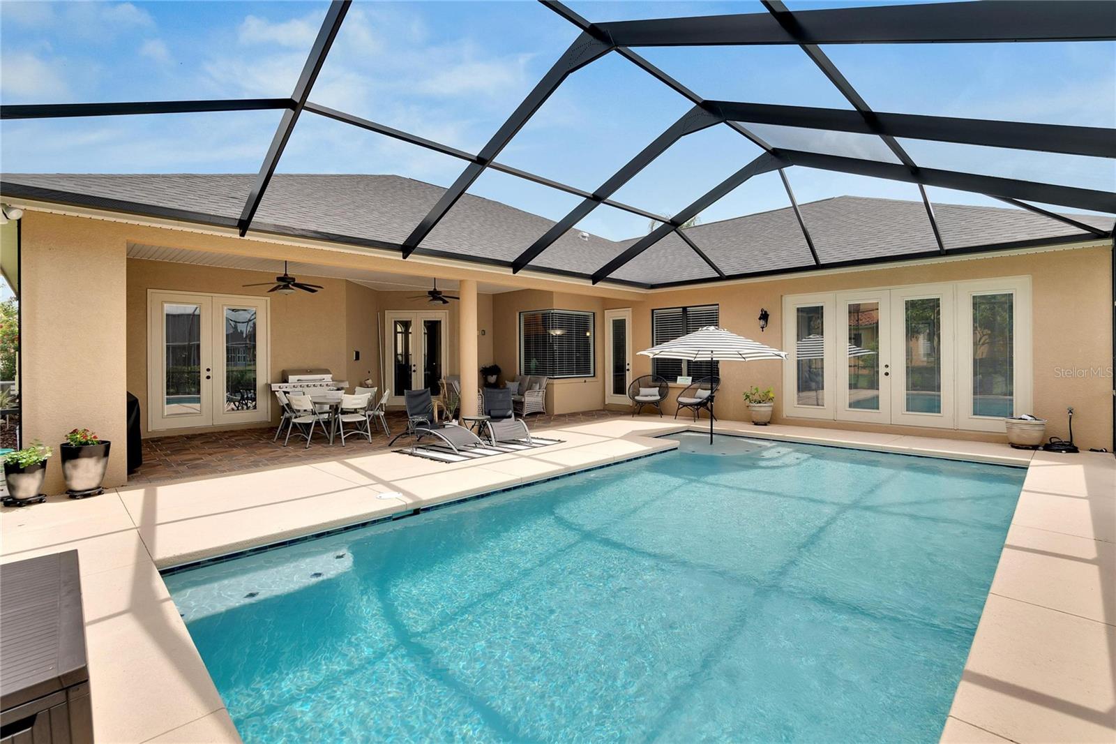 SPECTACULAR HOME with an IN-LAW SUITE! This MULTI-FAMILY gem includes a NEW ROOF, NEW HVACs and a NEW POOL!!! Stunningly beautiful, in IMMACULATE condition and located in the GATED COMMUNITY of Emerald Palms, this magnificent 5-BEDROOM, 4-BATHROOM, POOL HOME with a DEN/OFFICE and MEDIA ROOM offers the perfect blend of luxury, comfort, and privacy! Upon entering, you will be captivated by the grandeur of the foyer, which leads you into the spacious and elegantly designed living areas. The OPEN FLOOR PLAN seamlessly connects the inviting living room, dining room and cozy family room, creating an ideal space for both entertaining and everyday living. The GOURMET KITCHEN with SOLID WOOD CABINETS is a chef's delight and the adjacent breakfast nook overlooks the stunning pool area, allowing you to enjoy your morning coffee with a breathtaking view. HIGH CEILINGS with CROWN-MOULDING throughout add to the sophistication of this home. The primary suite is a true sanctuary, offering a peaceful retreat after a long day. It boasts a generous layout, two walk-in closets, en-suite bathroom with a soaking tub, separate shower and dual vanities. The IN-LAW/GUEST SUITE has its own large sitting room with access to the pool/lanai area. The additional bedrooms are all generously sized, providing comfort and flexibility for your family and guests. Up the stairs is the media room which has its own private bedroom and bathroom attached. Step outside into your back-yard oasis where you will find a SPARKING SALT-WATER POOL with OUTDOOR KITCHEN, perfect for enjoying the beautiful Florida weather. The EXPANSIVE SCREENED-IN, COVERED PATIO area offers ample space for outdoor dining, lounging and hosting unforgettable gatherings. This home has a whole home RUSS SURROUND SOUND SYSTEM with speakers and controls in every room. Recent updates include a new roof, new HVACs, interior paint, floors re-grouted and pavers sealed. A WATER WELL FOR IRRIGATION has also been added, thus keeping your water bills to a minimum. Natural Gas is also available. Don't miss the opportunity to make this luxurious pool home in a sought-after gated community your own. Schedule a showing today and experience the epitome of upscale living!