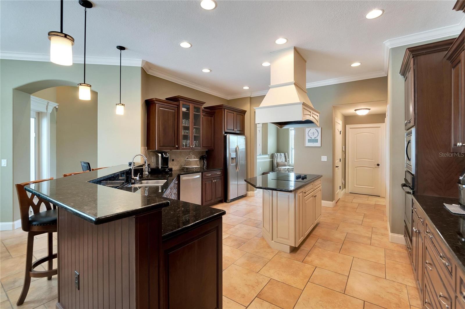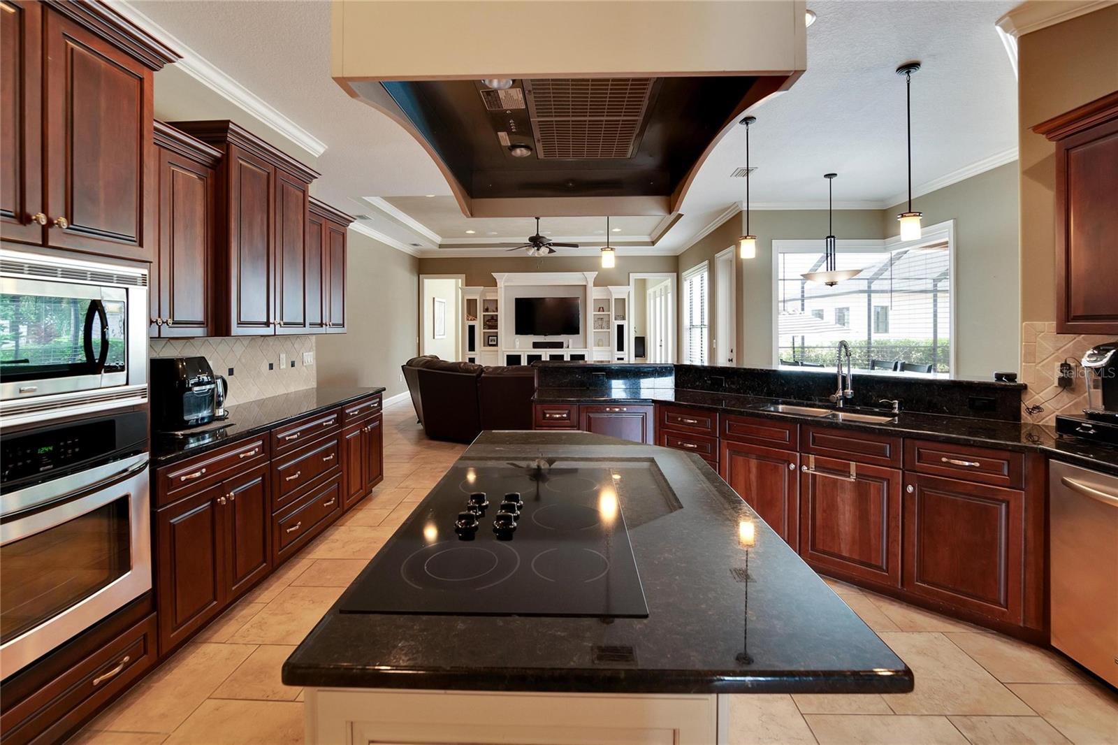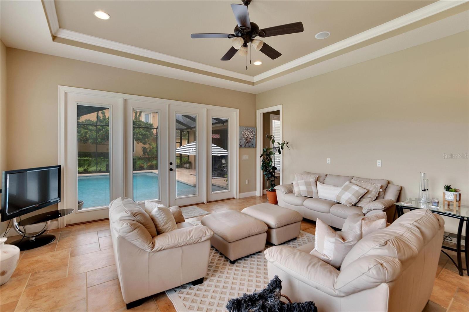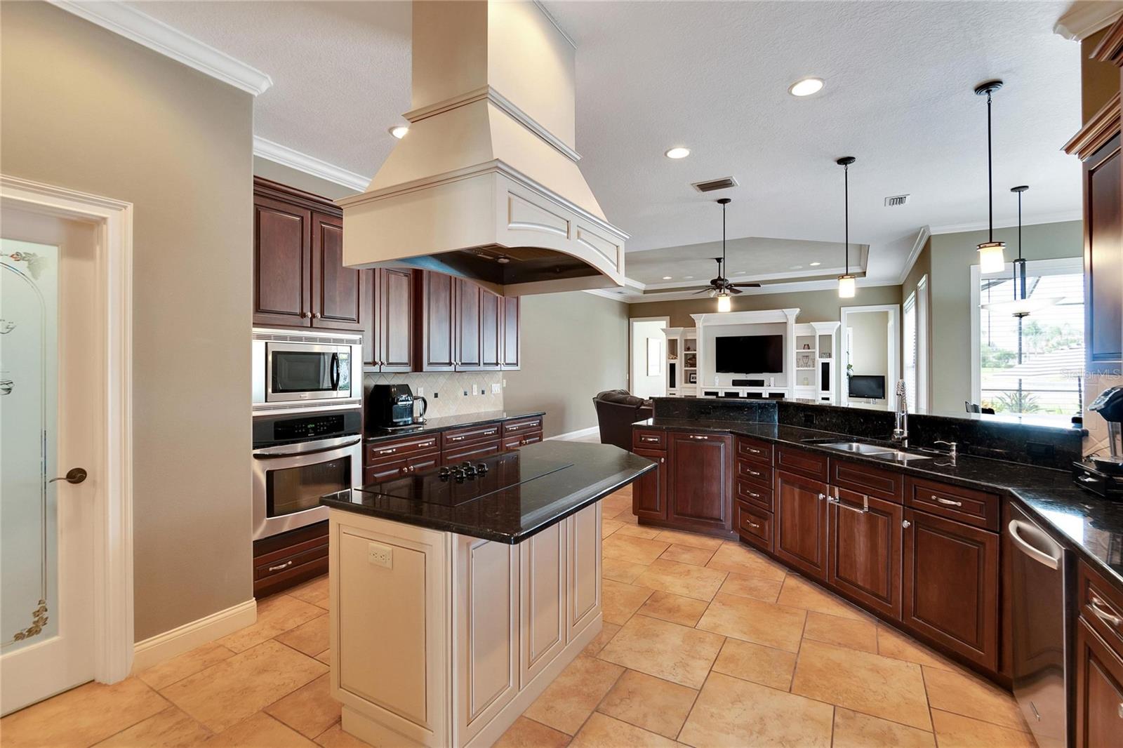 SPECTACULAR HOME with an IN-LAW SUITE! This MULTI-FAMILY gem includes a NEW ROOF, NEW HVACs and a NEW POOL!!! Stunningly beautiful, in IMMACULATE condition and located in the GATED COMMUNITY of Emerald Palms, this magnificent 5-BEDROOM, 4-BATHROOM, POOL HOME with a DEN/OFFICE and MEDIA ROOM offers the perfect blend of luxury, comfort, and privacy! Upon entering, you will be captivated by the grandeur of the foyer, which leads you into the spacious and elegantly designed living areas. The OPEN FLOOR PLAN seamlessly connects the inviting living room, dining room and cozy family room, creating an ideal space for both entertaining and everyday living. The GOURMET KITCHEN with SOLID WOOD CABINETS is a chef's delight and the adjacent breakfast nook overlooks the stunning pool area, allowing you to enjoy your morning coffee with a breathtaking view. HIGH CEILINGS with CROWN-MOULDING throughout add to the sophistication of this home. The primary suite is a true sanctuary, offering a peaceful retreat after a long day. It boasts a generous layout, two walk-in closets, en-suite bathroom with a soaking tub, separate shower and dual vanities. The IN-LAW/GUEST SUITE has its own large sitting room with access to the pool/lanai area. The additional bedrooms are all generously sized, providing comfort and flexibility for your family and guests. Up the stairs is the media room which has its own private bedroom and bathroom attached. Step outside into your back-yard oasis where you will find a SPARKING SALT-WATER POOL with OUTDOOR KITCHEN, perfect for enjoying the beautiful Florida weather. The EXPANSIVE SCREENED-IN, COVERED PATIO area offers ample space for outdoor dining, lounging and hosting unforgettable gatherings. This home has a whole home RUSS SURROUND SOUND SYSTEM with speakers and controls in every room. Recent updates include a new roof, new HVACs, interior paint, floors re-grouted and pavers sealed. A WATER WELL FOR IRRIGATION has also been added, thus keeping your water bills to a minimum. Natural Gas is also available. Don't miss the opportunity to make this luxurious pool home in a sought-after gated community your own. Schedule a showing today and experience the epitome of upscale living!