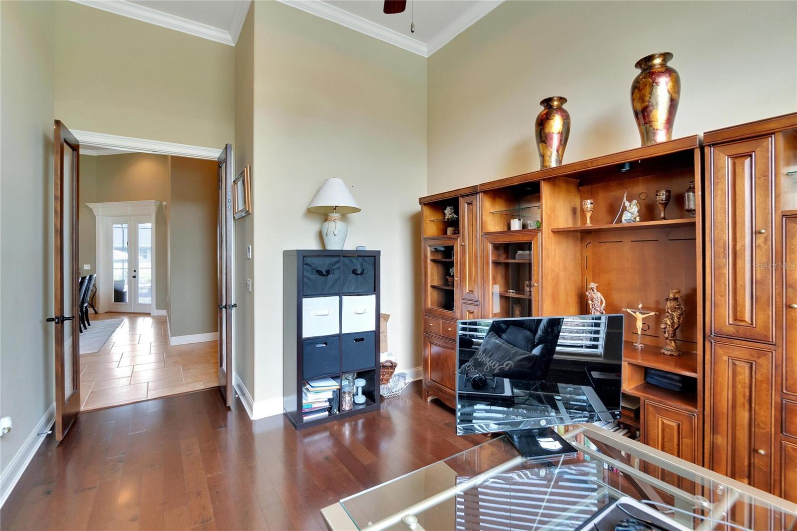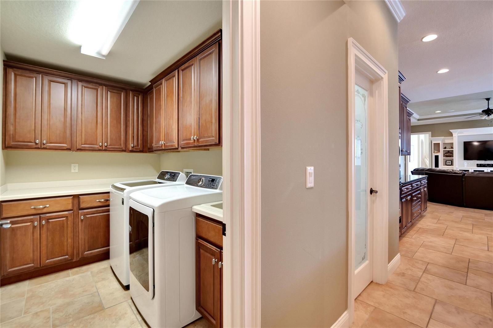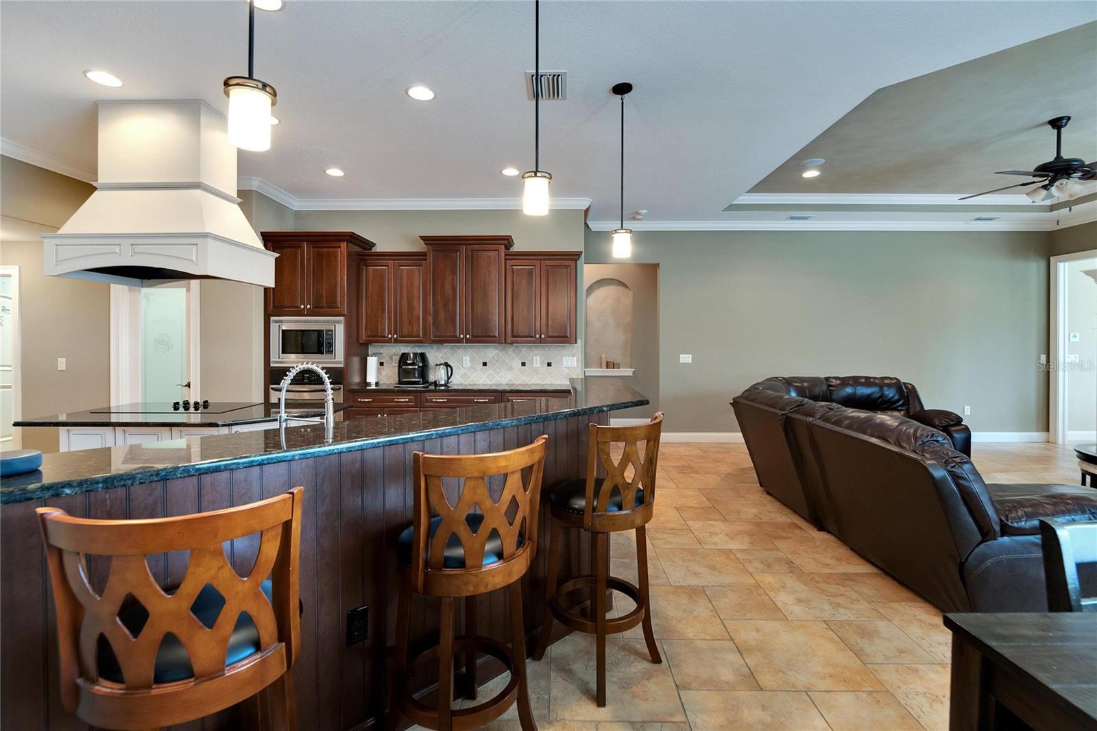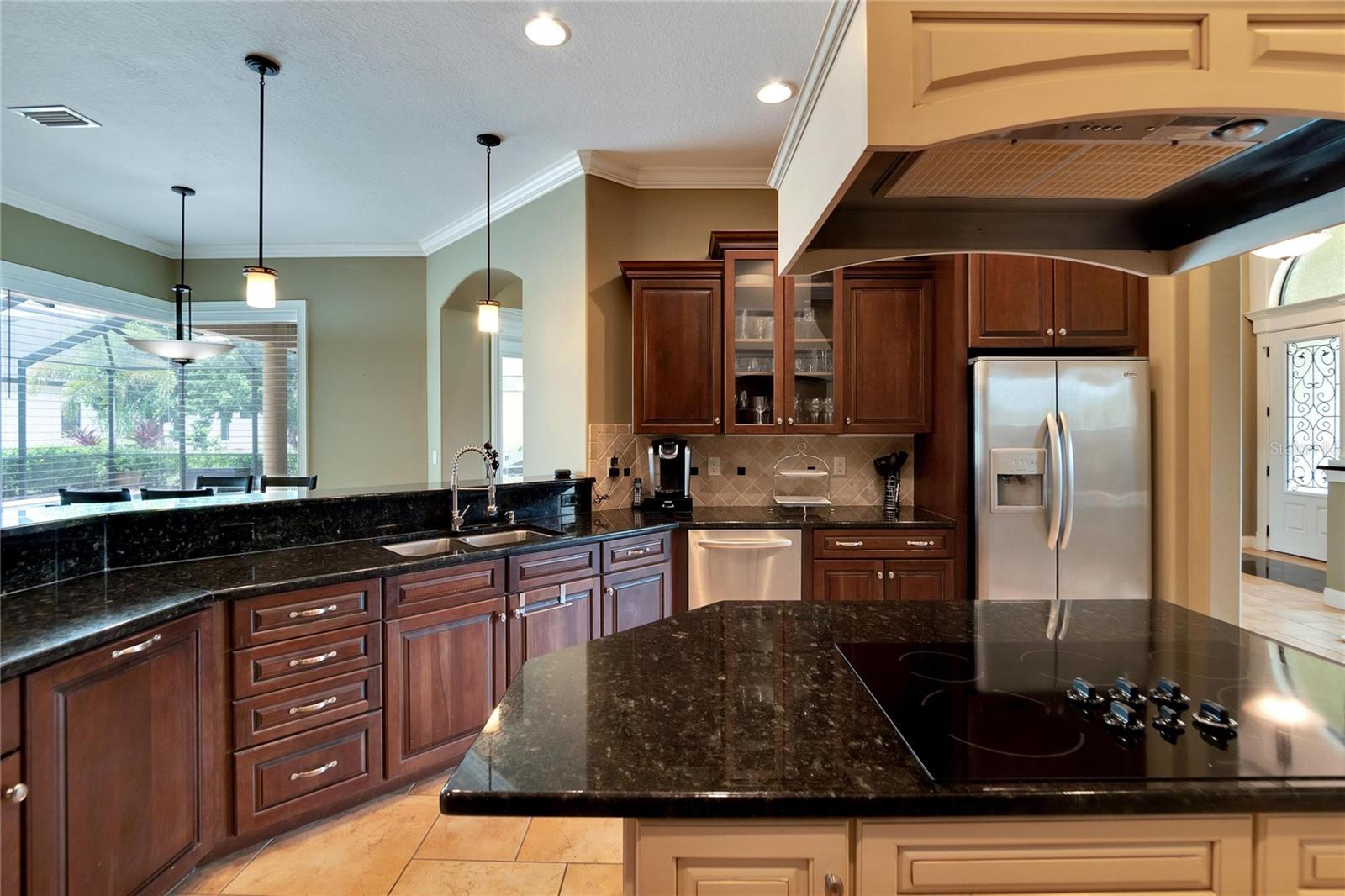 SPECTACULAR HOME with an IN-LAW SUITE! This MULTI-FAMILY gem includes a NEW ROOF, NEW HVACs and a NEW POOL!!! Stunningly beautiful, in IMMACULATE condition and located in the GATED COMMUNITY of Emerald Palms, this magnificent 5-BEDROOM, 4-BATHROOM, POOL HOME with a DEN/OFFICE and MEDIA ROOM offers the perfect blend of luxury, comfort, and privacy! Upon entering, you will be captivated by the grandeur of the foyer, which leads you into the spacious and elegantly designed living areas. The OPEN FLOOR PLAN seamlessly connects the inviting living room, dining room and cozy family room, creating an ideal space for both entertaining and everyday living. The GOURMET KITCHEN with SOLID WOOD CABINETS is a chef's delight and the adjacent breakfast nook overlooks the stunning pool area, allowing you to enjoy your morning coffee with a breathtaking view. HIGH CEILINGS with CROWN-MOULDING throughout add to the sophistication of this home. The primary suite is a true sanctuary, offering a peaceful retreat after a long day. It boasts a generous layout, two walk-in closets, en-suite bathroom with a soaking tub, separate shower and dual vanities. The IN-LAW/GUEST SUITE has its own large sitting room with access to the pool/lanai area. The additional bedrooms are all generously sized, providing comfort and flexibility for your family and guests. Up the stairs is the media room which has its own private bedroom and bathroom attached. Step outside into your back-yard oasis where you will find a SPARKING SALT-WATER POOL with OUTDOOR KITCHEN, perfect for enjoying the beautiful Florida weather. The EXPANSIVE SCREENED-IN, COVERED PATIO area offers ample space for outdoor dining, lounging and hosting unforgettable gatherings. This home has a whole home RUSS SURROUND SOUND SYSTEM with speakers and controls in every room. Recent updates include a new roof, new HVACs, interior paint, floors re-grouted and pavers sealed. A WATER WELL FOR IRRIGATION has also been added, thus keeping your water bills to a minimum. Natural Gas is also available. Don't miss the opportunity to make this luxurious pool home in a sought-after gated community your own. Schedule a showing today and experience the epitome of upscale living!