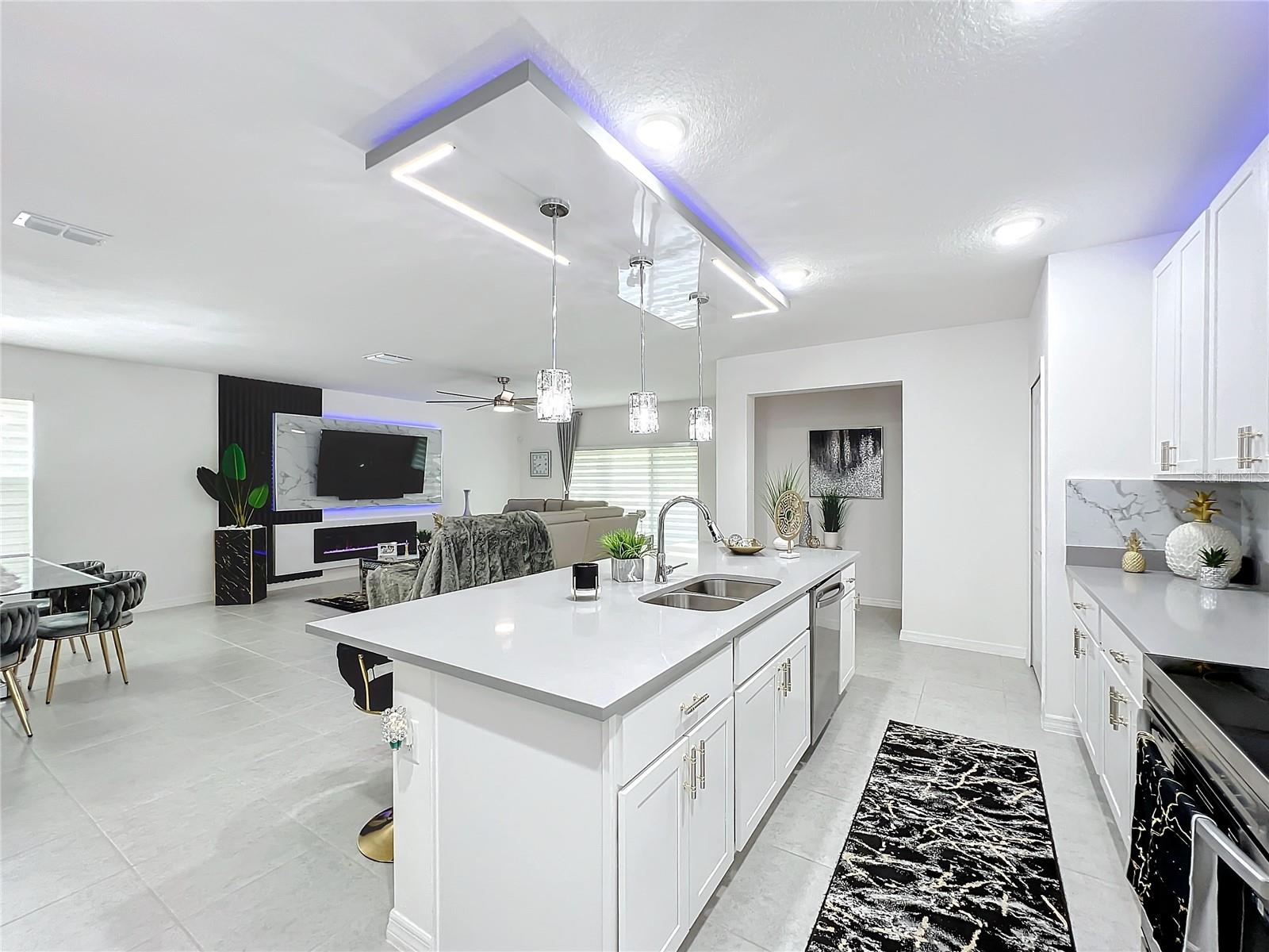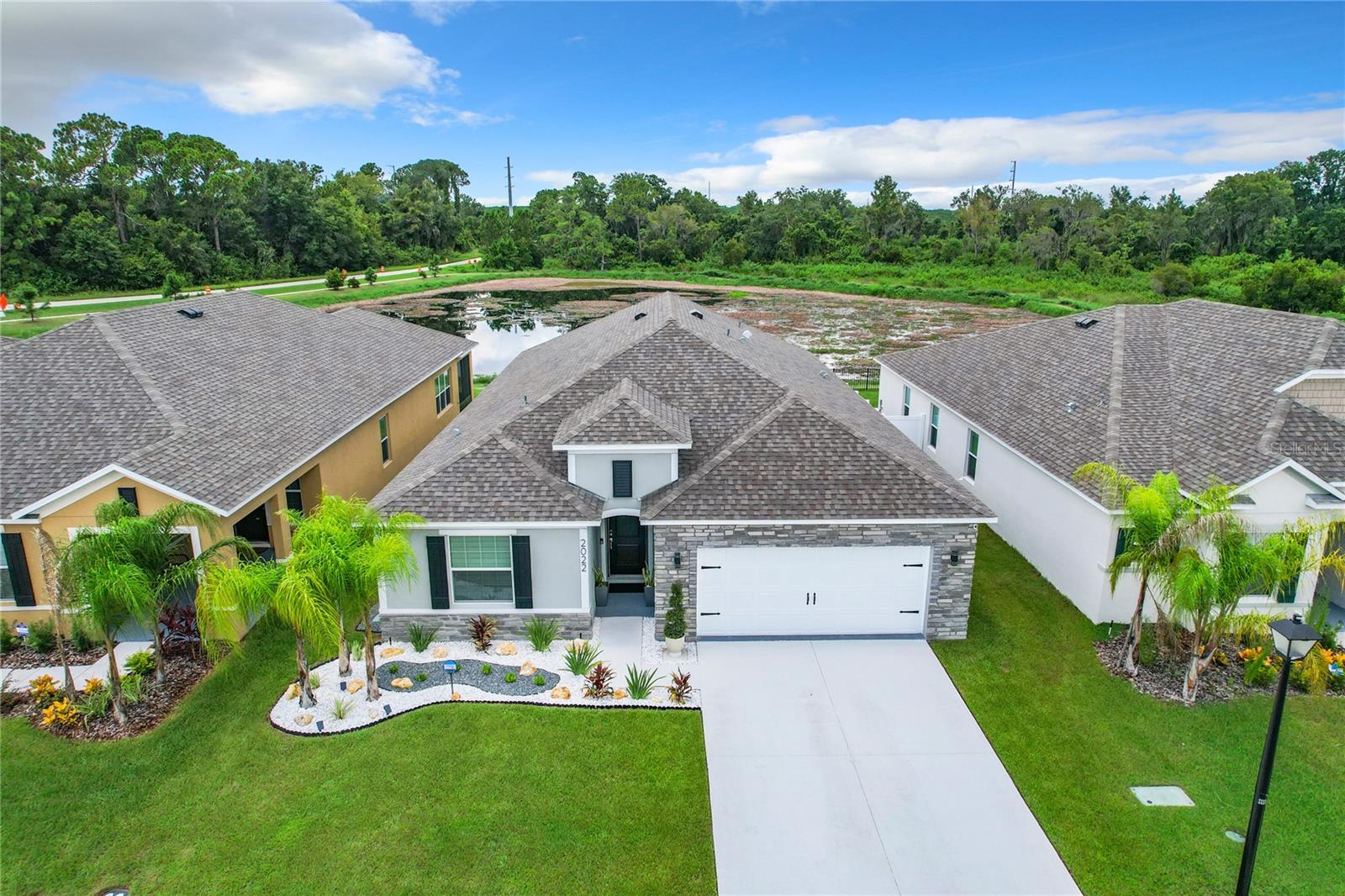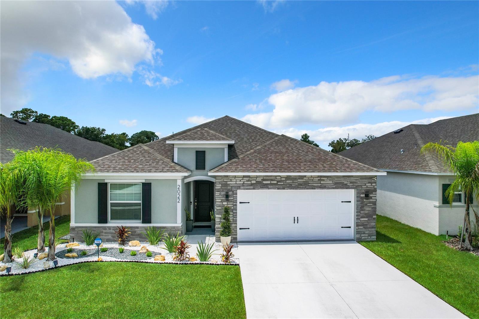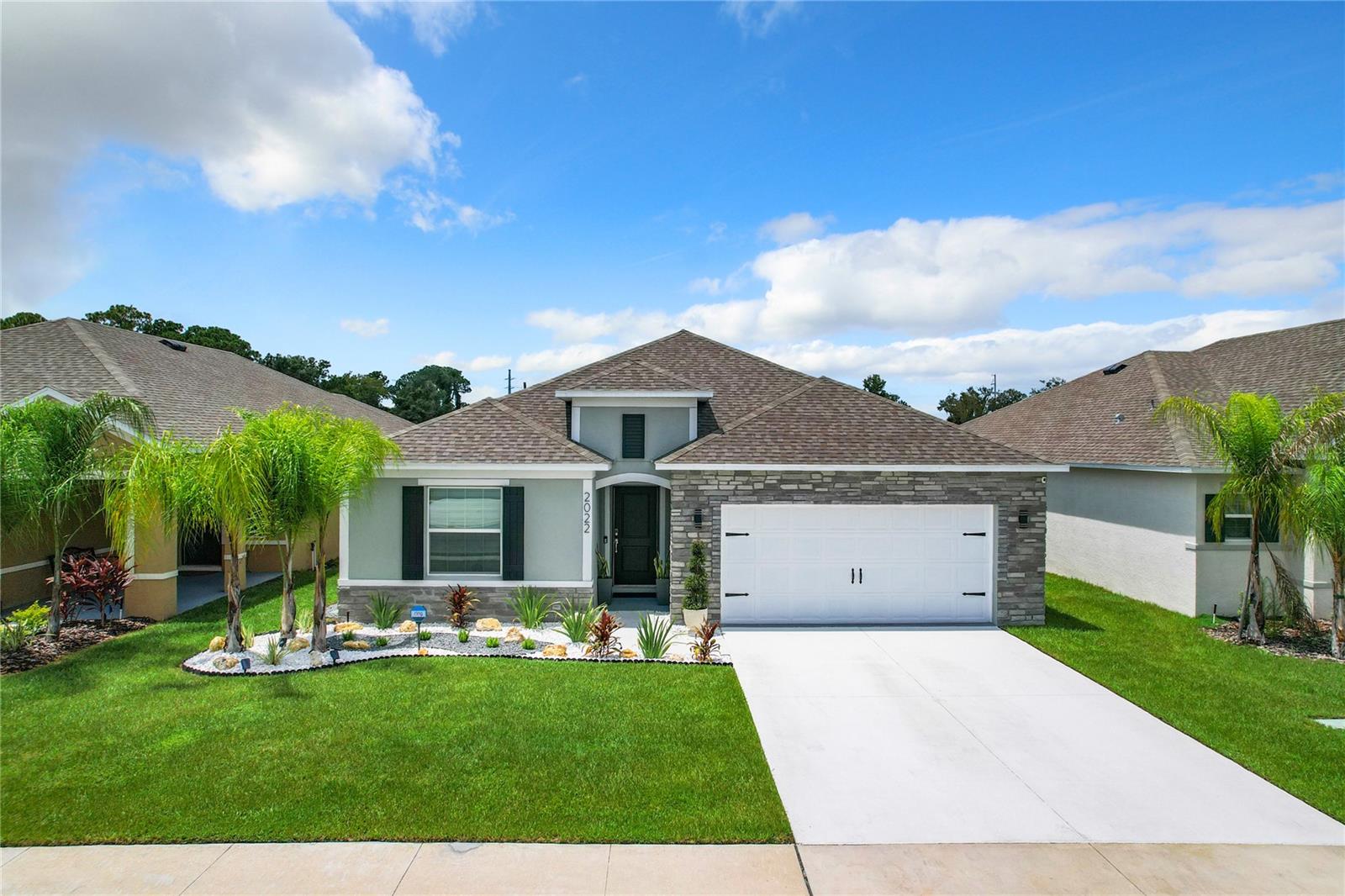 Discover Your Dream Home – Elegance, Convenience, and Location All in One!** Welcome to this exquisite, single-story residence that beautifully blends luxury and functionality. Featuring 4 spacious bedrooms and 3 full bathrooms, this home has been elegantly updated to cater to the most discerning tastes. Designed for modern living, it radiates style and sophistication. Located just one mile from a diverse selection of restaurants, hospitals and supermarkets, convenience is at your doorstep. For entertainment, we have bowling, theaters and Legoland Park in a 10-minute drive away, with Disney and Universal Studios just 45 minutes away, making this home the perfect base for everyday life and endless fun. This is more than just a house—it's a chance to live with style and comfort in an unbeatable location. Don’t miss out on making it yours! Step into the master suite, your personal sanctuary, complete with a luxurious en-suite bathroom featuring a walk-in shower, double vanity, and an expansive walk-in closet. The other bedrooms are equally inviting, providing comfort and privacy for the whole family. The heart of the home is the kitchen, equipped with chic wood cabinets, a full-size island with seating, and abundant counter space for all your culinary creations. The open-concept design seamlessly connects the kitchen, dining area, and great room, making it the perfect space for both family living and entertaining. Enjoy the convenience of a private backyard, accessible through sliding glass doors, ideal for summer evenings or hosting memorable gatherings. Built in 2023, this home embodies modern elegance and convenience, offering a lifestyle of comfort and exclusivity. Don’t miss out on this incredible opportunity – your dream home is waiting!