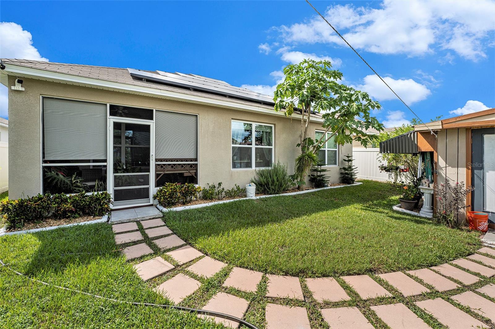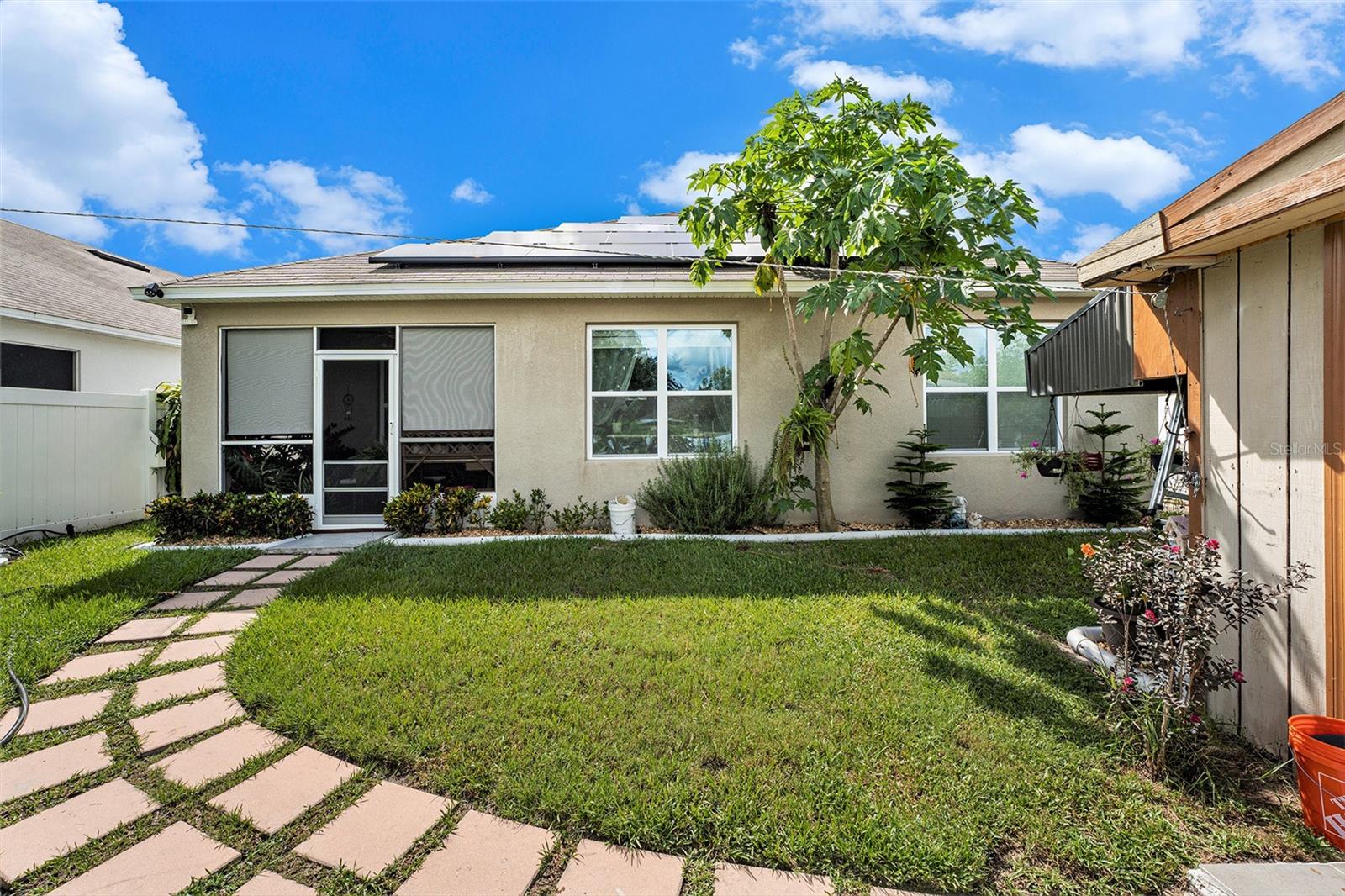 PRICE REDUCED BY $12,000—NOW BELOW RECENT APPRAISAL! Nestled in the heart of Winter Haven, the Chain of Lakes City, this beautifully maintained just 5-year-old home offers modern comfort in a charming and friendly neighborhood. With LOW HOA FEES and NO FLOOD ZONE, this is the perfect opportunity for first-time homebuyers, families, or anyone looking for a nearly new home at an incredible value. Designed for both style and efficiency, this home features transferrable energy-saving SOLAR panels, a fully FENCED YARD with durable vinyl fencing, and a screened front entry and patio. Inside, the oversized kitchen boasts substantial cabinets, TWO PANTRIES, and plenty of space for cooking and entertaining. Large windows throughout fill the home with natural light, creating a bright and inviting Florida atmosphere. The primary ensuite bedroom is a true retreat, complete with double windows, a spacious closet, and a beautiful ensuite bathroom with custom cabinetry and an extra closet. The split-bedroom layout ensures privacy, while the welcoming foyer opens into a spacious living area that flows seamlessly into the kitchen, breakfast bar, dining area and OPEN FLOOR PLAN. With a fully screened lanai, large storage shed, and private fenced yard, this home combines modern living, sustainability, and affordability—don’t miss this incredible opportunity!