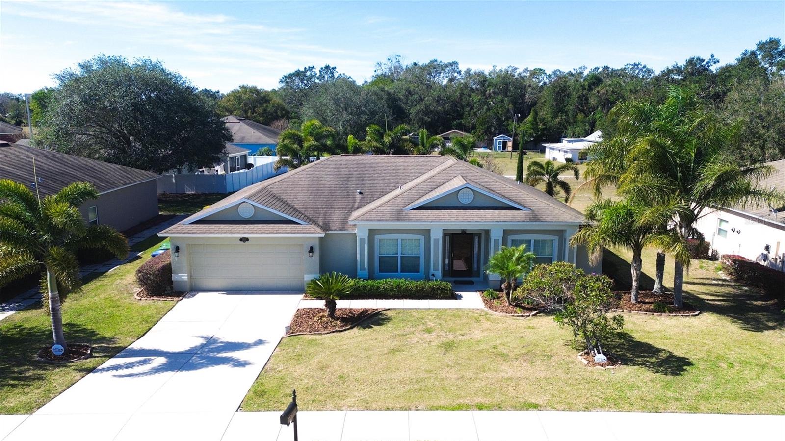 Welcome to this inviting home in Winter Haven's desirable Eagle Crest Community. This 2,022 square foot property features four bedrooms and two bathrooms with an open, split floor plan that's perfect for modern living. Step inside to discover high ceilings and stylish hard flooring throughout most of the home, with only one bedroom featuring carpet. The kitchen shines with elegant granite countertops and a gas stove, while ceiling fans throughout help maintain comfort in Florida's warm climate. One of the home's standout features is the screened-in, gas-heated pool, providing year-round enjoyment for family and friends. The backyard has been thoughtfully designed with manicured landscaping, including Italian cypress trees, shrubs, and palm trees that create natural privacy barriers around the property. Located just minutes from Downtown Winter Haven, this home offers convenient access to everything you need. The Eagle Nest community, with its low annual HOA fees, puts you close to popular attractions like Legoland, as well as essential amenities including Polk State College, Winter Haven Hospital, and various restaurants. The Polk Parkway is easily accessible, making commuting a breeze. This new listing combines comfortable living spaces with practical amenities in a prime location. Whether you're relaxing by the pool or entertaining guests in your open-concept living area, this home provides the perfect setting for your Florida lifestyle.