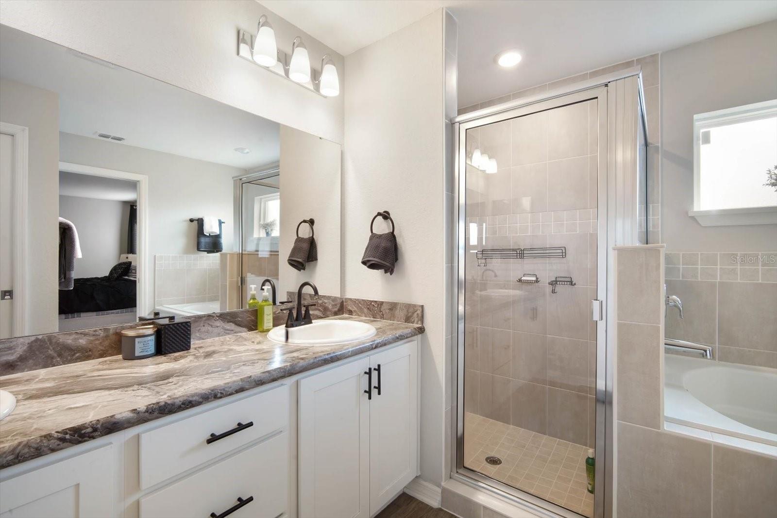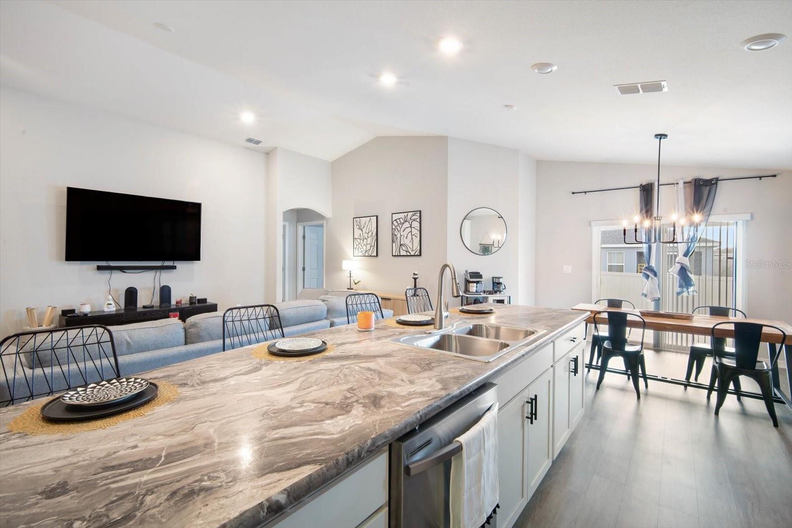TRUE 4 bedroom ONE STORY home in Villamar. Highland Homes doesn't make this floorplan anymore, all new construction at this sq footage only has 3 bedrooms. Perfect location; still zoned for chain of lakes elementary, only a 1/3 mile from the pool, playground, and mailboxes, etc. Beautiful open floor plan allows you to all come together when you want, four bedrooms allow you privacy when you need. Kitchen has large island with sitting space, ample counters, plenty of storage, and a walk-in pantry. Dining area can be used for formal seating or a flex area. Laundry room has counter space as well. All four bedrooms have large closets. Primary bedroom is plenty big for large furniture. Primary bathroom has upgraded soaking tub as well as shower. Fenced back yard rounds out the special touches and upgrades that this home offers. Don't wait, this home is ready for you now! Seller's lender says that loan is eligible for assumption, ask for details!