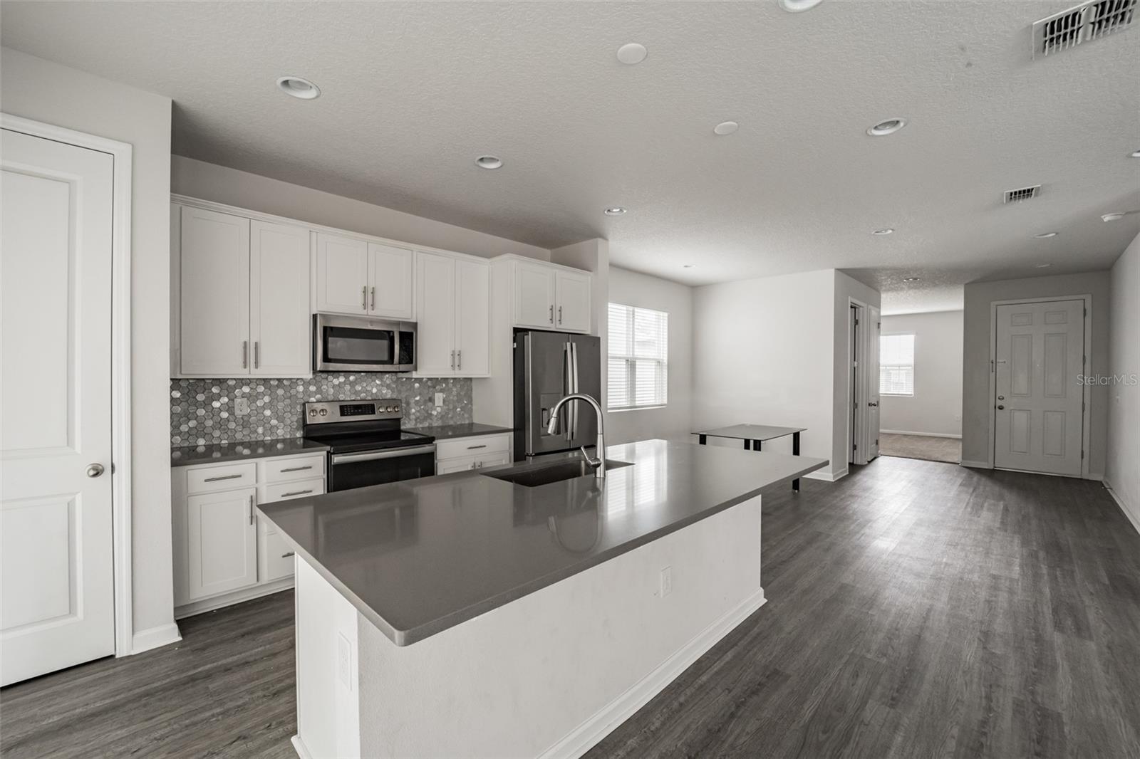Welcome home to this beautiful and spacious property found in the quiet community of Lake Smart Point. This property features 3 bedrooms plus a loft AND a study. An open layout is the heart of this home where the living room, kitchen, and dining area can be found, making it a great space for entertaining. The inviting kitchen offers stainless steel appliances, beautiful white cabinets and drawers, quartz counter tops and kitchen island, and an exterior kitchen vent. The owner's suite and other bedrooms can be found upstairs. All rooms are of ample size. The luxurious primary bedroom offers plenty of space and features a large walk-in closet, private bath with quartz countertops at his and her sinks, a tiled walk-in shower with glass doors, and a private water closet. Upstairs also includes a loft area that can be used as a great hang out spot. This home also provides secure parking with its 2-car garage and a back patio for hanging outdoors. Want a little more privacy? You just have to add one more side of fencing and you could have the comfort and security that comes with a fully fenced backyard. Surrounded by beautiful lakes, just minutes from shopping and restaurants, under 20 minutes to Lego Land, quick access to I4, all are reasons that make this location top notch. Don't miss this great opportunity, easy to show and can be all yours today.