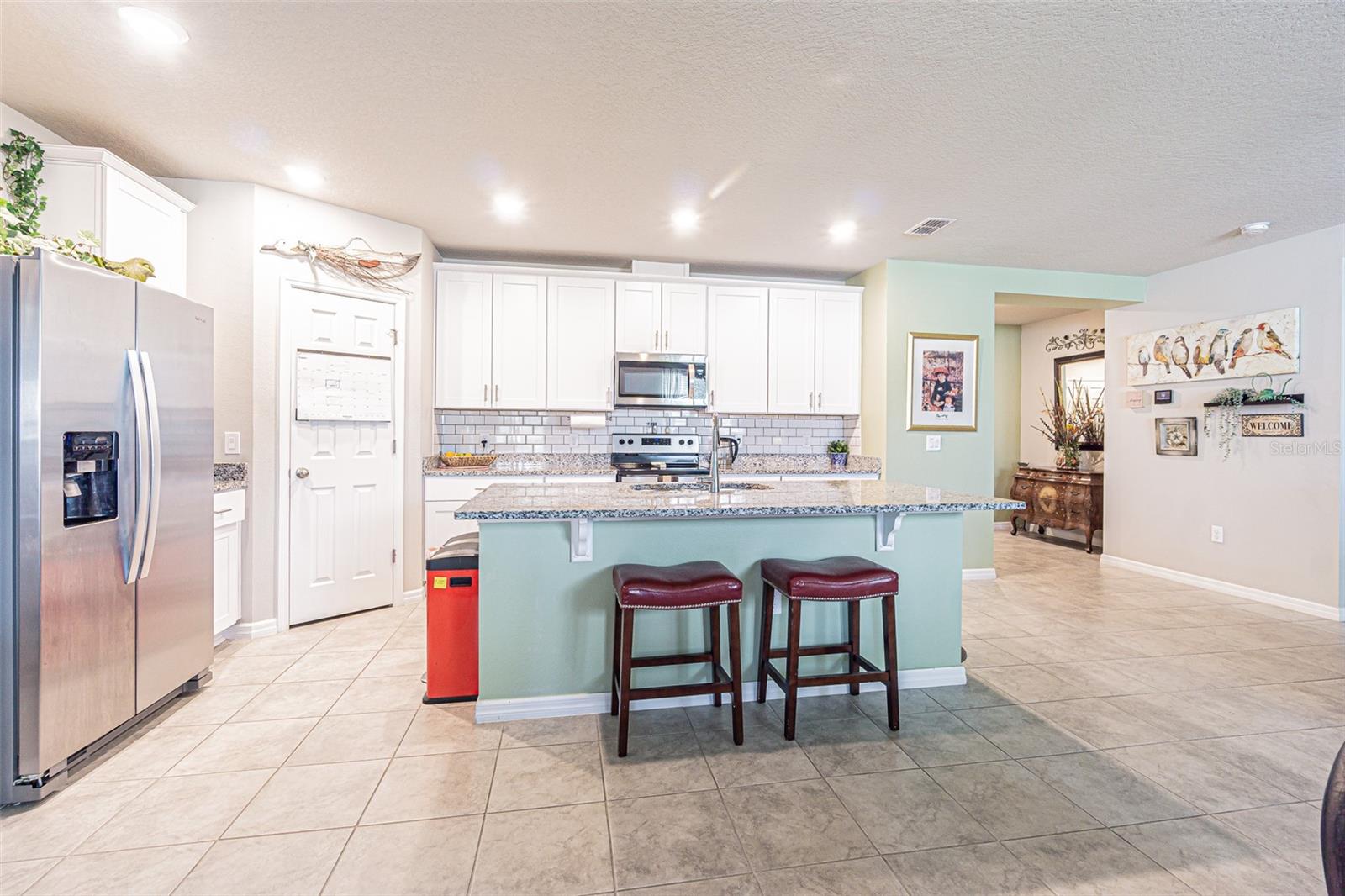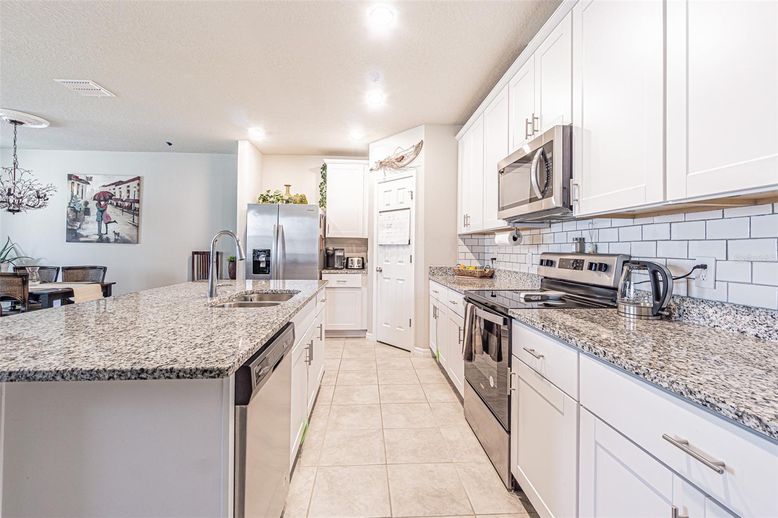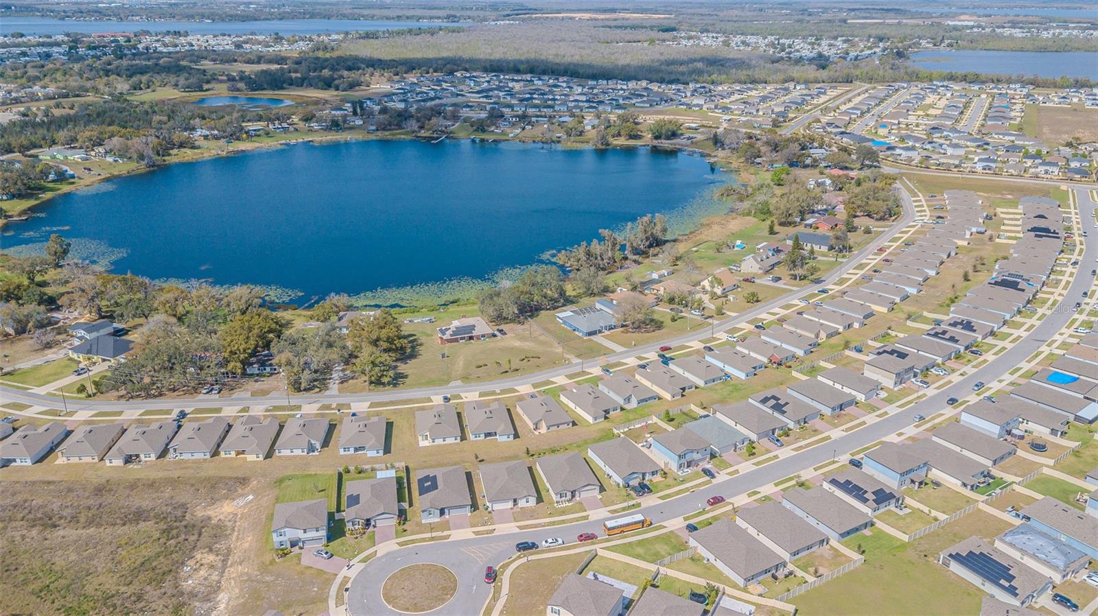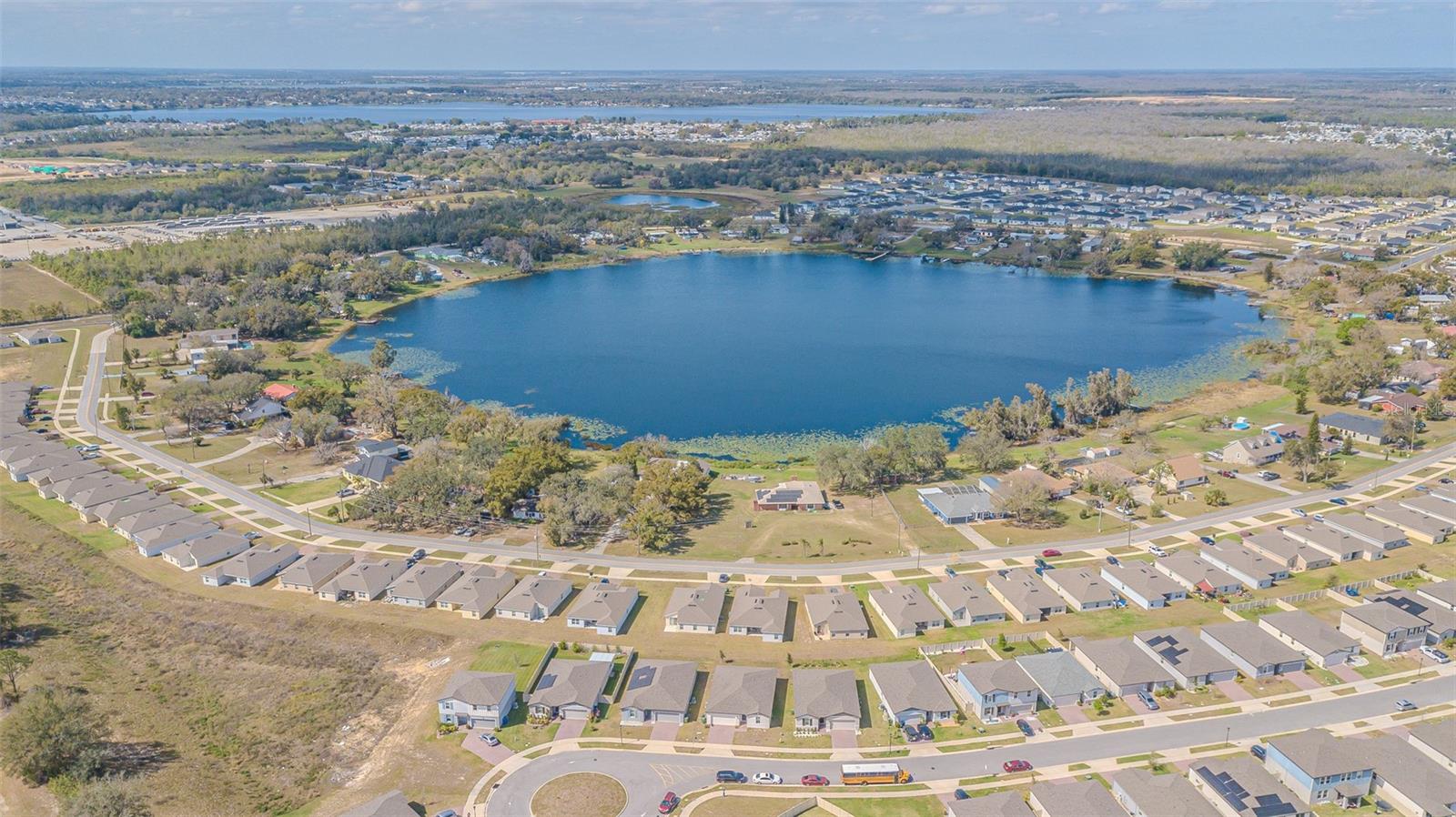 Big price drop! Seller is motivated! This 2 year old lake view 4 bed 2 bath Meritage home is practically brand new! Situated on a "corner cul de sac", this home enjoys low traffic flows in the front and beautiful views of Lake Lucerne in the back! From the pavered driveway and landscaped front lawn, a covered front porch welcomes you in. Large entry hall boasts plenty of space for backpack tree, console table, art display, or whatever makes you feel at home! To the immediate left of the entry are two spacious bedrooms and a shared bathroom with double sinks, granite countertop, and tub/shower combo. Halfway down the hall to the right you find the fourth bedroom tucked away for privacy, along with the interior laundry room and garage entry door. And just before you reach the end of the grand entry hall is a perfectly sized nook for creating a reading space, writing desk, homework area, custom dog/cat house area, or exactly what best suits your lifestyle. At the left end of the hall is the private owner's retreat with ensuite bath and extra large walk-in closet. Just beyond that, the space opens up to a large open floorplan living / dining / kitchen combo. The spacious kitchen features a large island with plenty of room for 4 barstools, white shaker cabinets, subway tile backsplash, granite countertops, stainless Whirlpool appliances, and corner walk-in pantry. The living room includes upgraded huge ceiling fan to keep the air moving in this wide open space, and dining room features custom light fixture. You can easily expand your dining or entertaining to the outdoors through the sliders, which open onto a custom built fully enclosed lanai, with view of the lake! This is not just a screened patio! This room is fully enclosed with a pavered floor and windows on all 3 sides, allowing you to use this space year round regardless of the weather. Current owners chose to pop in a portable room air conditioner, making this space truly an extension of the home during all seasons. The completely fenced backyard opts for privacy on the sides and picket along the back so that the lake view can be enjoyed. This community offers a beautiful pool, community mailboxes and playground area. Just minutes to US 27 for access to shopping, dining and medical facilities. Legoland less than 30 minutes away. And a simple drive out to I-4 for travel to Orlando. Disney fans, you can be at Mickey's place in under an hour! Close enough to visit as often as you'd like, but far enough away to enjoy daily life without the congestion of the attractions. If you are an outdoorsman, welcome to the home of the Chain of Lakes and world class freshwater fishing! Under 30 minutes to Lake Toho and many, many more! Enjoy the nearby Hilochee Wildlife Management Area, or one of many nearby golf courses and country clubs. And finally, under 30 minutes to Florida Polytechnic University, which is ranked number 8 in the COUNTRY for career outcomes. This home has so much more to offer than just a house! Seller is sad to go but needed to get back into a smaller place for health reasons. Their loss is your opportunity! Schedule your private tour today.