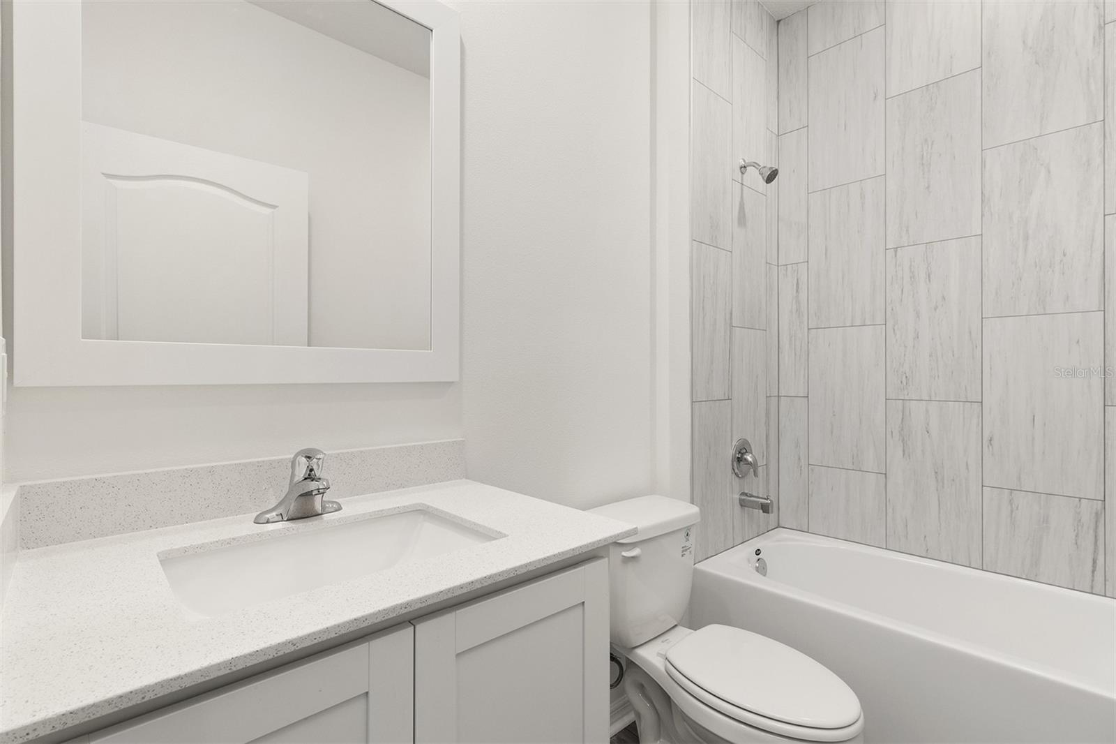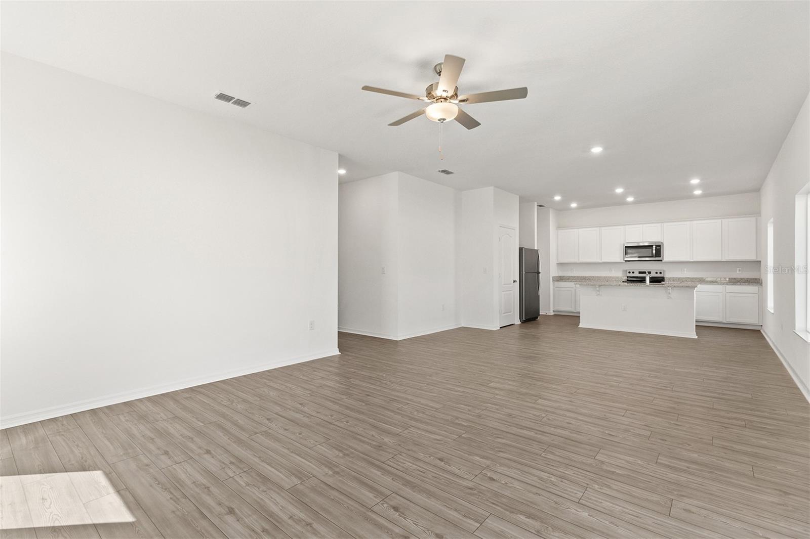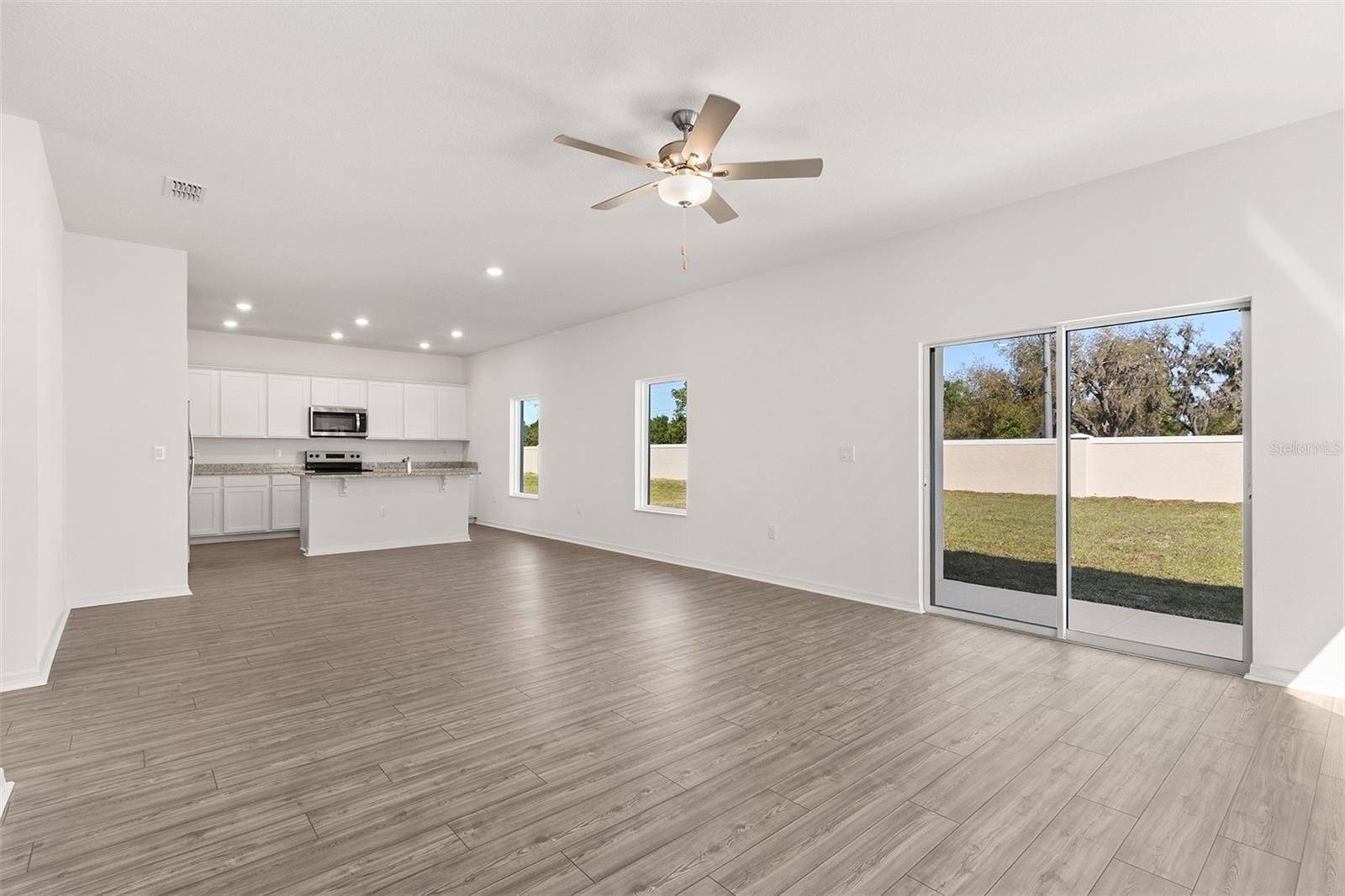 Welcome to the Spring model in Peach Crossings, a stunning two-story home featuring five spacious bedrooms and three bathrooms. Set on a private lot with no side or rear neighbors, this property ensures complete tranquility. An extended driveway adds convenience with plenty of parking, and the home is uniquely positioned next to a serene pond for peaceful views. Enter through a generous foyer that leads to an open and inviting main level. Here, a bright family room offers a perfect setting for gatherings, while a modern kitchen dazzles with a large island, breakfast bar, and premium Whirlpool appliances. A guest bedroom and full bathroom on the first floor provide versatile space for visitors or a home office. Upstairs, the expansive master suite serves as a true retreat with ample room for a king-sized bed, dresser, and a cozy reading nook. The master en-suite boasts a dual-sink vanity, a linen closet, and a roomy walk-in closet designed for optimal storage. Four additional well-sized bedrooms offer flexibility for family, office, play, or hobby needs, and the additional bathrooms ensure a smooth morning routine for everyone. A large upstairs laundry room with generous storage completes the functional design of this home. Outside, a covered back patio invites you to relax and enjoy the natural surroundings. Located in the coveted Peach Crossings community, this home is just minutes from top-rated Polk County schools, shopping, dining, and local attractions. With all upgrades included, this move-in ready home is waiting for you. Schedule your private tour today!