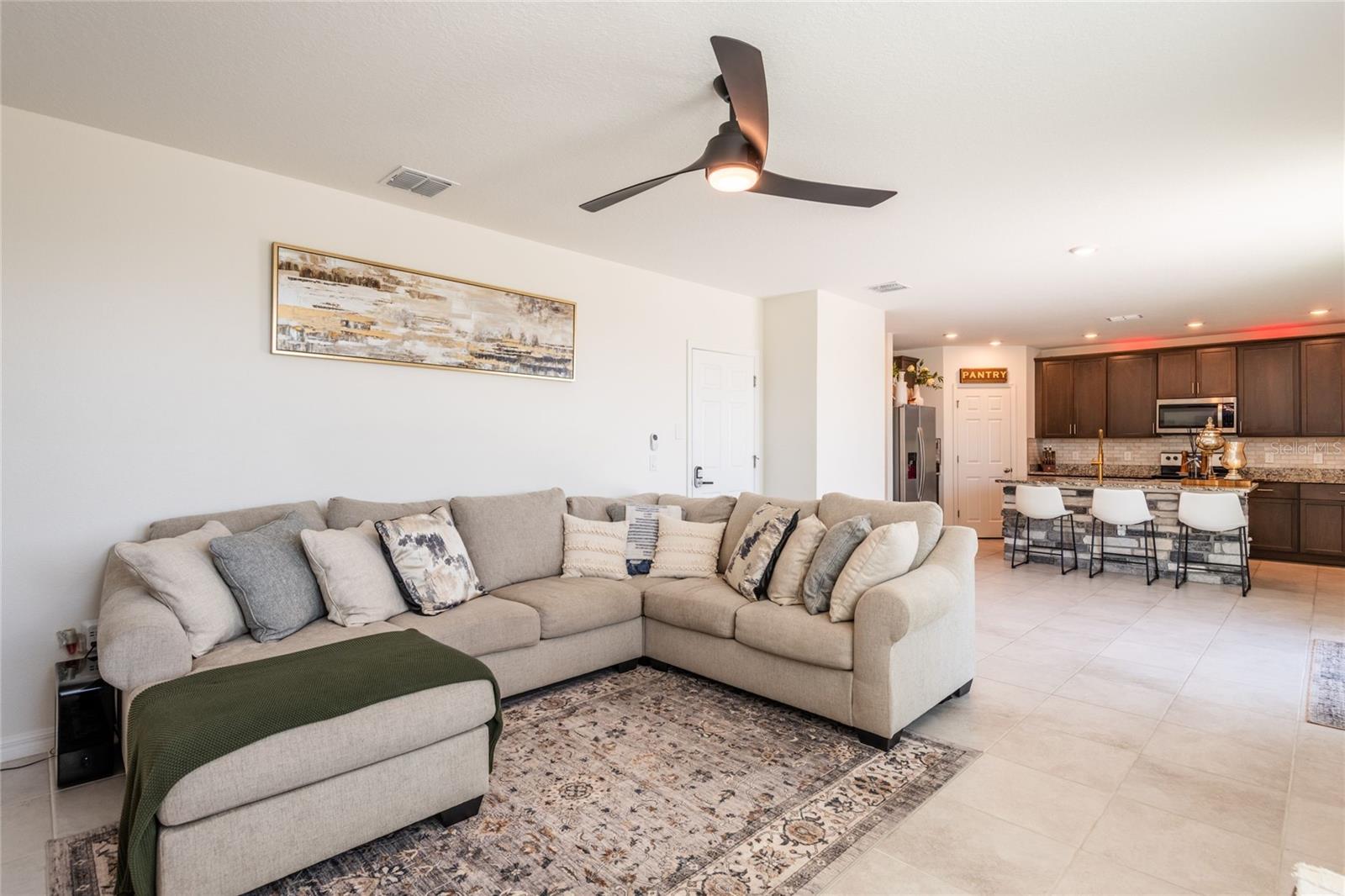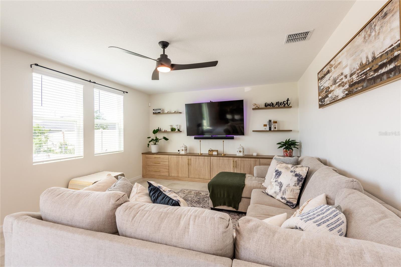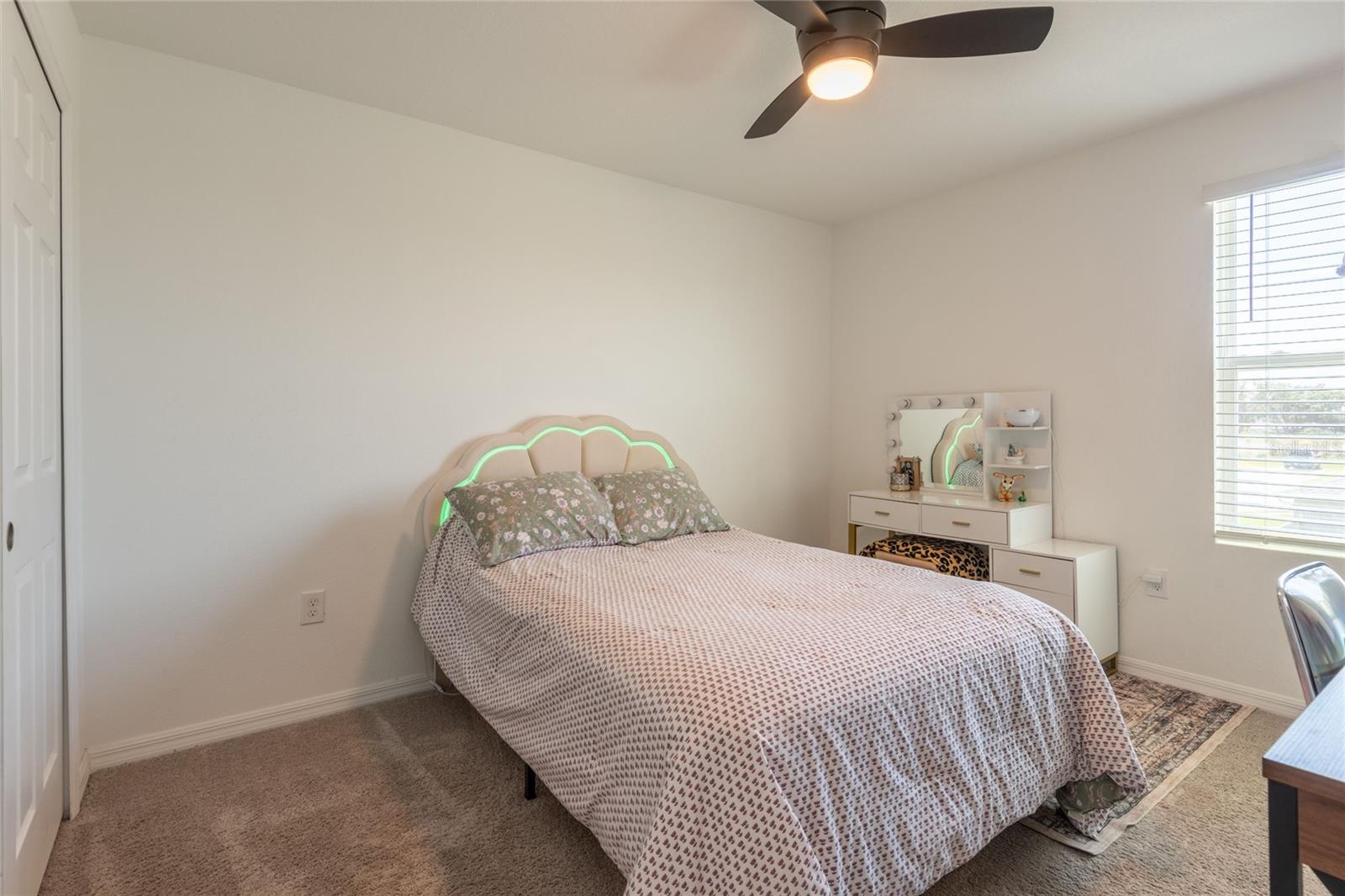 One or more photo(s) has been virtually staged. PRICE REDUCED and SELLERS MOTIVATED! Discover this stunning 2023 upgraded, move-in ready home that effortlessly blends style and space with great functionality. From the moment you step inside, you’re welcomed by a formal dining room which can also be a flex space or home office. The heart of the home features a bright, open-concept layout that connects the living, dining, and kitchen areas—perfect for both everyday living and entertaining. The kitchen is a true showpiece with granite countertops, an upgraded faucet, stylish backsplash, stone-accented island, and color-changing LED cabinet lighting for a customized ambiance. A spacious walk-in pantry ensures ample storage, while an additional closet off the foyer includes a wine refrigerator and extra shelving for more storage. The inviting great room has custom built-in soft close cabinets and drawers, shelving with LED lighting behind the TV. Adjacent to the kitchen is a cozy breakfast nook perfect for casual meals. Upstairs, a spacious loft provides separation between the luxurious primary suite and the secondary bedrooms. The expansive primary retreat includes a spa-inspired ensuite bath with dual sinks, abundant cabinetry, a rain head shower, private water closet, and a spacious walk-in closet with custom shelving and soft-close drawers. All secondary bedrooms are comfortably sized and feature built-in shelving and soft-close drawers in the closets. These bedrooms share a full bathroom with granite countertops, dual sinks, and lots of storage. The upstairs laundry room is conveniently located off the loft and includes additional cabinetry for organization. Love outdoor living? The backyard is designed for enjoyment with a sprawling brick-paved patio that includes distinct spaces for dining, grilling, relaxing, and gathering around the fire pit. There’s even room to add an inground or above ground pool, gazebo, outdoor kitchen, basketball hoop, playhouse, or whatever your family needs. Additional Upgrades Include, Interior and exterior security cameras, Smart keypad locks on front and garage doors, new ceiling fans throughout, custom wall shelving in loft and primary bedroom, overhead garage storage racks, and a whole-home A/C dehumidifier. This home offers the perfect blend of luxury, comfort, and modern efficiency and is a must see!