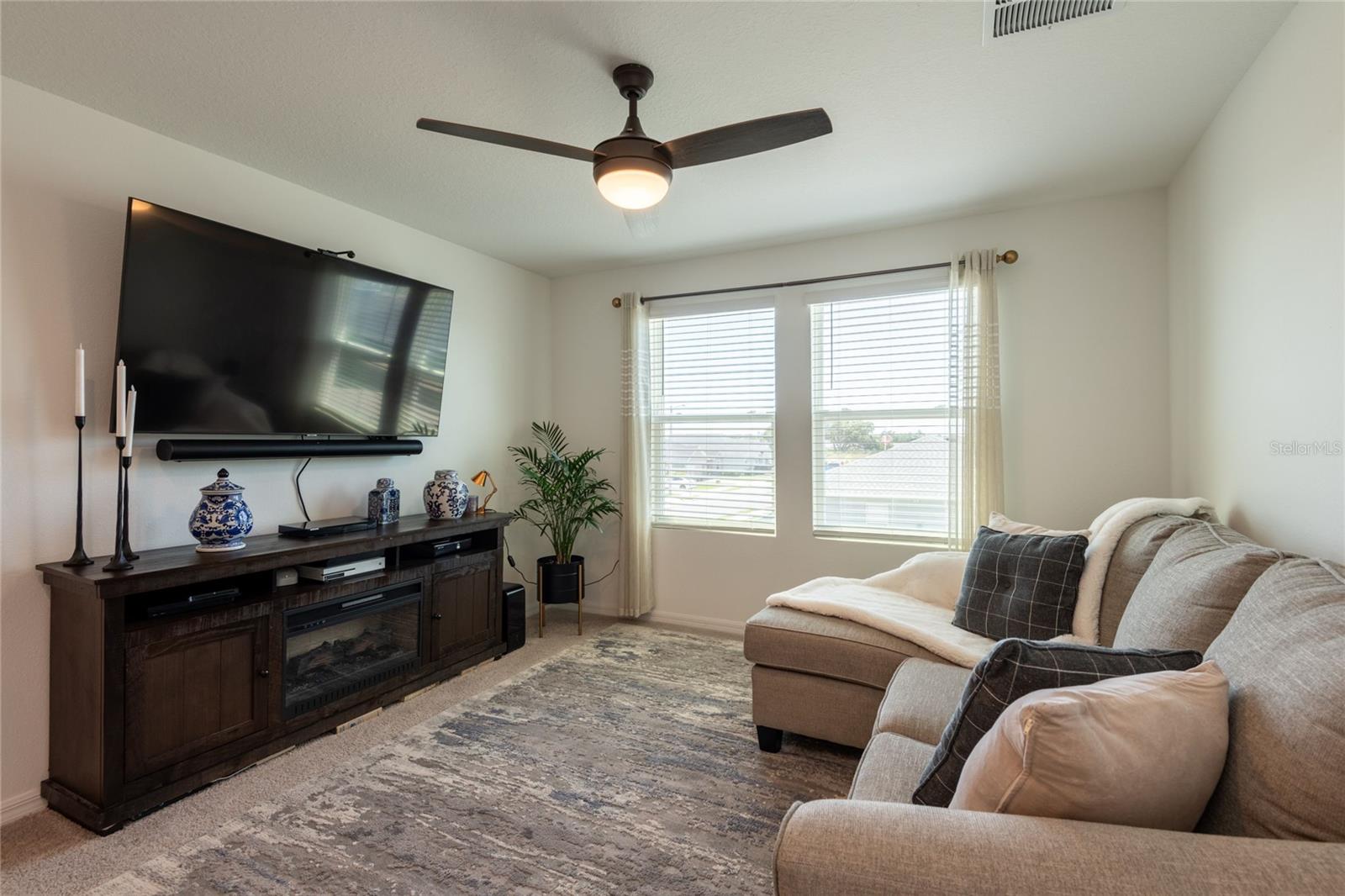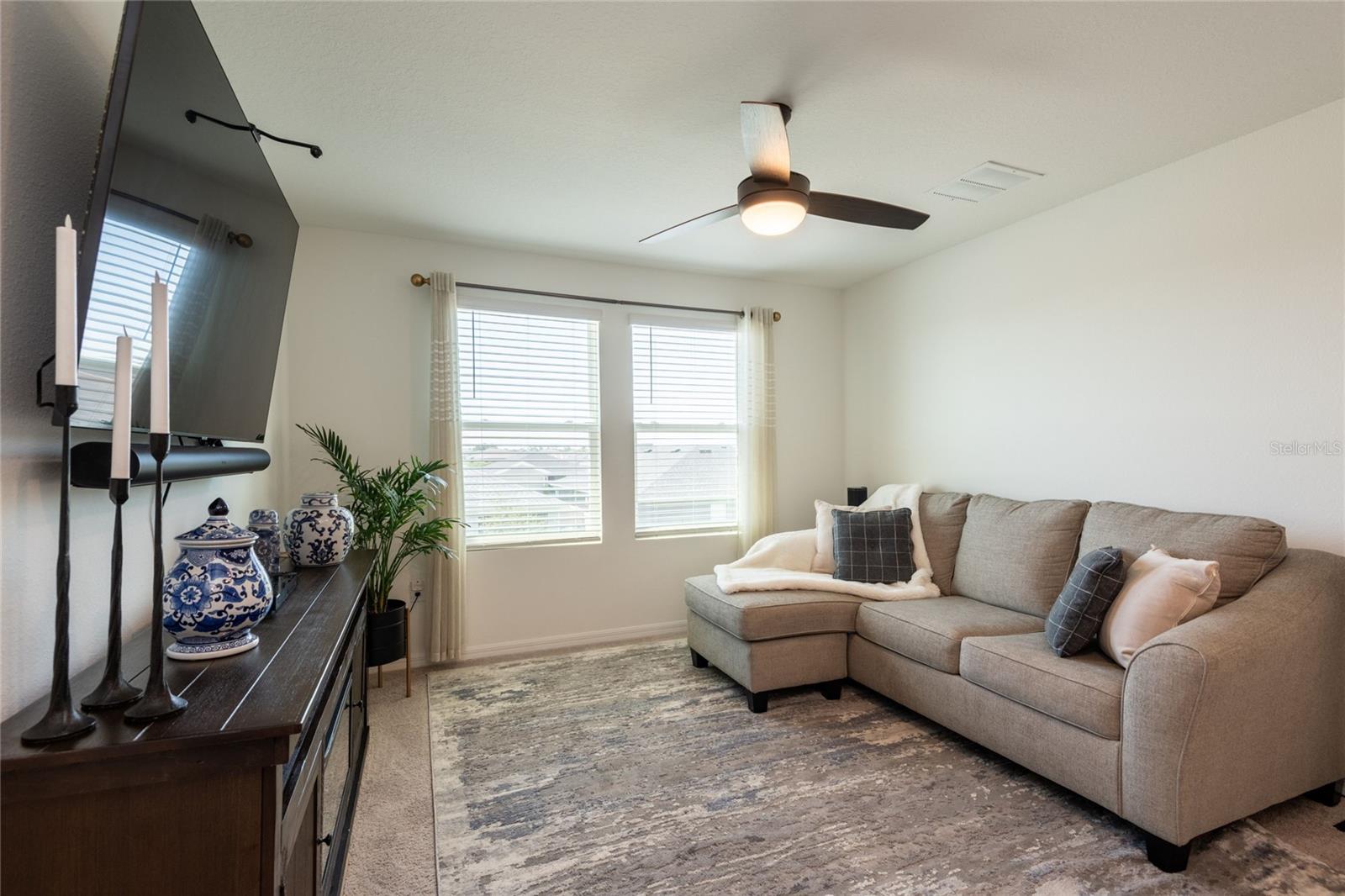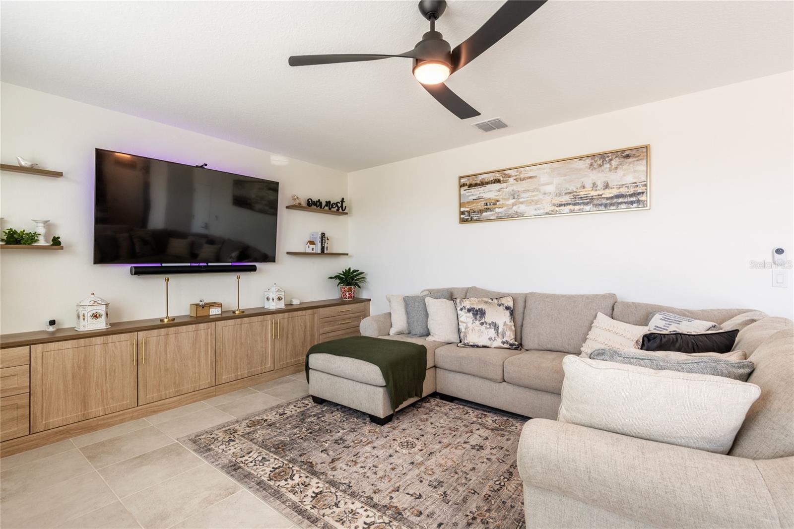 One or more photo(s) has been virtually staged. PRICE REDUCED and SELLERS MOTIVATED! Discover this stunning 2023 upgraded, move-in ready home that effortlessly blends style and space with great functionality. From the moment you step inside, you’re welcomed by a formal dining room which can also be a flex space or home office. The heart of the home features a bright, open-concept layout that connects the living, dining, and kitchen areas—perfect for both everyday living and entertaining. The kitchen is a true showpiece with granite countertops, an upgraded faucet, stylish backsplash, stone-accented island, and color-changing LED cabinet lighting for a customized ambiance. A spacious walk-in pantry ensures ample storage, while an additional closet off the foyer includes a wine refrigerator and extra shelving for more storage. The inviting great room has custom built-in soft close cabinets and drawers, shelving with LED lighting behind the TV. Adjacent to the kitchen is a cozy breakfast nook perfect for casual meals. Upstairs, a spacious loft provides separation between the luxurious primary suite and the secondary bedrooms. The expansive primary retreat includes a spa-inspired ensuite bath with dual sinks, abundant cabinetry, a rain head shower, private water closet, and a spacious walk-in closet with custom shelving and soft-close drawers. All secondary bedrooms are comfortably sized and feature built-in shelving and soft-close drawers in the closets. These bedrooms share a full bathroom with granite countertops, dual sinks, and lots of storage. The upstairs laundry room is conveniently located off the loft and includes additional cabinetry for organization. Love outdoor living? The backyard is designed for enjoyment with a sprawling brick-paved patio that includes distinct spaces for dining, grilling, relaxing, and gathering around the fire pit. There’s even room to add an inground or above ground pool, gazebo, outdoor kitchen, basketball hoop, playhouse, or whatever your family needs. Additional Upgrades Include, Interior and exterior security cameras, Smart keypad locks on front and garage doors, new ceiling fans throughout, custom wall shelving in loft and primary bedroom, overhead garage storage racks, and a whole-home A/C dehumidifier. This home offers the perfect blend of luxury, comfort, and modern efficiency and is a must see!