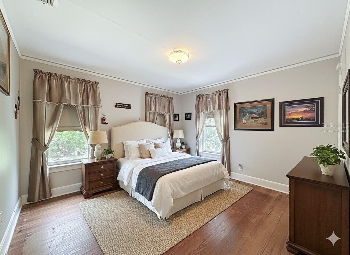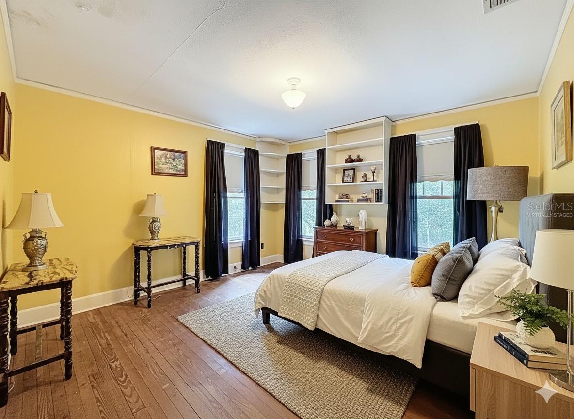 One or more photo(s) has been virtually staged. A RARE HISTORIC MASTERPIECE ESTATE ARCHITECTURALLY DESIGNED, BUILT, AND RESIDED BY CYPRESS GARDENS FOUNDER DICK POPE. 800 West Lake Elbert Drive offers a rare opportunity to own a truly iconic piece of Central Florida’s heritage. Overflowing with timeless character while for today’s living comfort it has been meticulously blended with modern amenities. From the appointed grand imported Italian outdoor fountain centering the front of the estate to the stunning detailed craftsmanship throughout its charming interior, you’ll feel like you’ve stepped into a time capsule. The original details abound — including hardwood floors, handcrafted wood doors, intricate moldings, built-ins, and vintage tile — all beautifully preserved to honor the home's architectural roots. The formal living room welcomes you with its crafted fireplace, pocket doors, and appointed staircase leading the upper level living quarters. The spacious formal dining room featuring classic built-ins. Adjacent is a thoughtfully updated kitchen where history charm blends with contemporary convenience: custom wood cabinetry, stone countertops, stainless steel appliances, a copper farmhouse sink, and a natural gas stove. The adjoining butler’s pantry includes a second staircase to the upper level, adding both function and flair. The formal dining room expands through french doors into an expansive den that boasts the original mosaic tile floor offering a flexible space for entertaining or relaxing. The outdoor porch is screened for relaxing while capturing nature and the Florida breeze. Among many other features this estate includes a bonus room with a full bathroom also draped in original vintage tile and vanity. The upper level of the estate features a secondary master suite with walk-in closet and private ensuite with beautifully preserved original tile and lighting fixtures. Two additional guest bedrooms share a full bath and the indoor laundry room adds convenience. The expansive primary suite features a private sitting room with a wood-burning fireplace, a walk-in closet, and an en-suite. Original built-ins in the bedroom blend seamlessly with the refined updates, creating a space that is both restful and regal. This historic gem also has the potential to be officially registered as a historic landmark, making it not just an estate, but a legacy. A bonus is an existing assumable FHA mortgage with only 3.5% interest rate. This is truly a rare opportunity for the buyer that loves historic masterpieces. Don’t delay..... Make your appointment today.