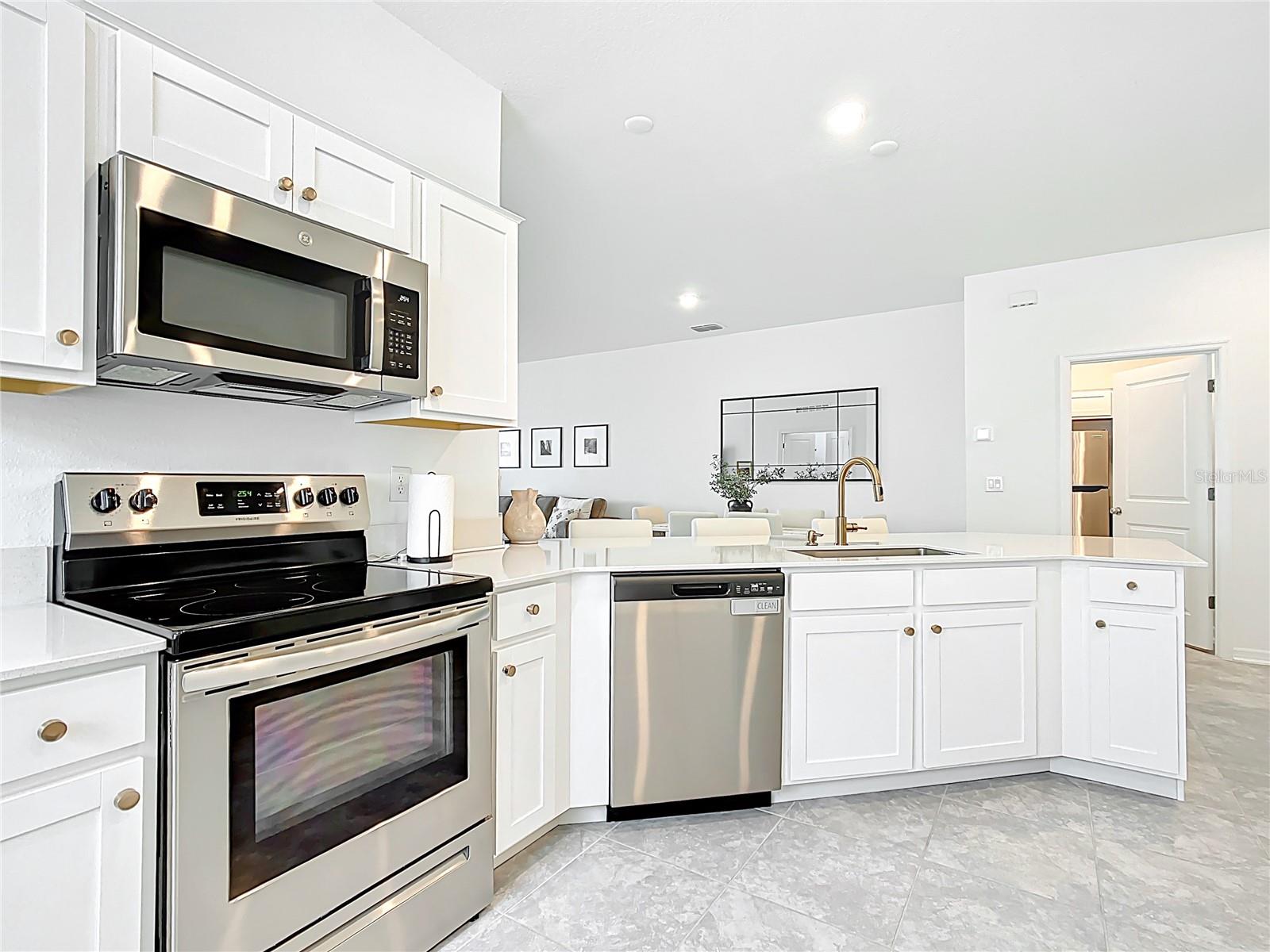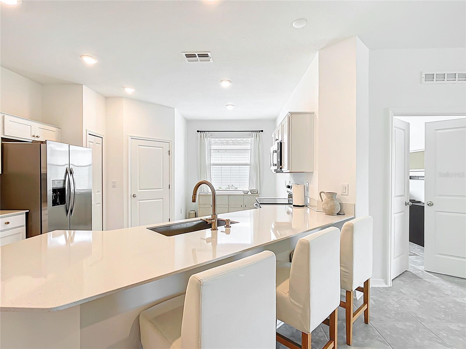 This stunning, single-story residence in the desirable Peace Creek Reserve community of Winter Haven, Florida, presents an exceptional opportunity for multigenerational living. Built by Lennar and featuring their popular Freedom floor plan, the home boasts four bedrooms and three bathrooms, complemented by a two-car garage. A significant advantage is the thoughtfully designed Next Gen/In-Law suite, complete with a private entrance, bedroom, living room, full bathroom, and kitchenette. This offers ideal accommodation for aging parents or adult children, providing both independence and close proximity. The main living area features a contemporary open-concept design, seamlessly integrating the spacious living and dining areas with a well-appointed kitchen. A private office/study with double doors adds to the home's functionality. The master suite provides a luxurious retreat, complete with his and her closets and an en-suite bathroom. Two additional bedrooms are conveniently situated on the opposite side of the home, sharing a full bathroom. All appliances are included. Peace Creek Reserve offers a tranquil lifestyle, combining the beauty of natural surroundings with easy access to Winter Haven's attractions, including its picturesque chain of lakes, diverse dining options, charming boutiques, and scenic biking trails. Residents also enjoy community amenities such as a swimming pool and playground. This move-in ready home eliminates the wait and disruption associated with new construction, allowing immediate occupancy. The combination of modern design, convenient features, and a prime location makes this property an exceptional value.