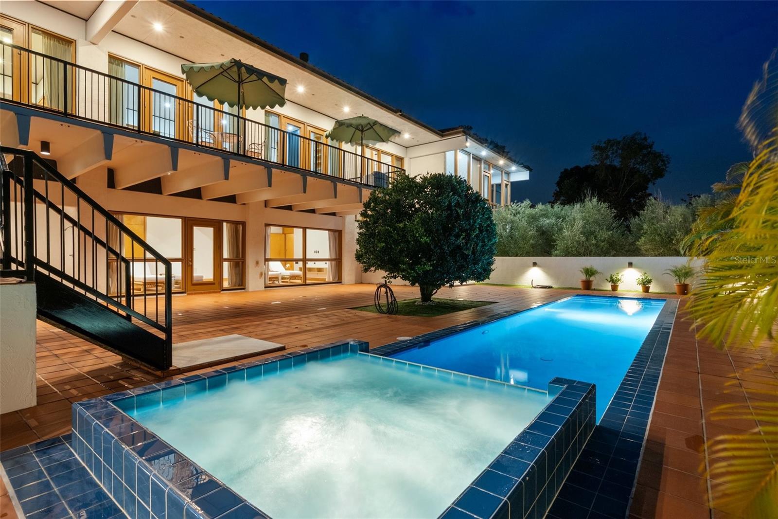 There was a time when homes were designed to last—and this is one of them. Designed by award-winning architect Gene Leedy, this south-facing lakefront residence embodies a legacy of modernism uniquely attuned to Florida’s landscape and climate. As a founding voice of the Sarasota School of Architecture, Leedy’s vision was ahead of its time, helping to shape a movement that left its mark on architecture around the world. Designed in 2006 for his daughter, this residence reflects decades of innovation—every detail considered, nothing spared. Step inside and you enter the mind of a true visionary—where nothing was done without purpose, and every detail was designed for modern living. From the soaring 15-foot ceilings to the graceful grain of custom woodwork, from ample storage to quietly integrated modern comforts, every detail speaks to Leedy’s belief that beauty and function must coexist. Leedy’s design masterfully merges indoors and out drawing Florida’s natural beauty into the flow of daily life with floor-to-ceiling windows and abundant outdoor living—more than 5,700 square feet—allow light, sky, and greenery to infuse each space. Courtyards and balconies offer a sense of retreat from every main room and bedroom. Built with Gene Leedy’s signature cantilevered style, the home is elevated by pre-stressed concrete beams, allowing it to float gracefully above Lake Otis—high and dry. Inside, custom cabinetry is found throughout made of beechwood, with doors, trim, and built-ins crafted with warmth and intention. The kitchen strikes a perfect balance of form and function, anchored by a VIKING gas range, Sub-Zero refrigerator, dual dishwashers, granite countertops, and a wine fridge—designed for easy everyday living and entertaining. Engineered for resilience, the home includes hurricane-rated tempered windows and doors, underground power lines, a full-home generator, surge protection, dual HVAC zones, imported Venezuelan clay roof tiles, a 4-foot concrete wall around the pool and modern fiber-optic connectivity— without compromising its architectural integrity. Including two separate garages with a total of four parking spaces with plenty of room for an RV or boat. Upstairs, soft natural light and gas/wood-burning fireplaces create space for stillness. Though the interior spans over 5,100 square feet, it feels remarkably cozy and serene. Downstairs, a generous pool room with wet bar opens directly to the pool deck and lakefront—made for open-air entertaining, dining and quiet nights on the lake. The resurfaced lap pool and spa, heated by natural gas, are surrounded by lush landscaping and lighting, including Magnolia trees and Sicilian olive trees that sway just outside the primary suite. The shoreline invites native birds and wildlife, while offering front-row seats to holiday fireworks and golden sunsets. There is ample room to add a dock and boathouse—perfect for afternoons on the water, boating, or waterskiing.For those who appreciate timeless design and refined craftsmanship, this is a rare opportunity to be part of an architectural legacy. Schedule your showing today.