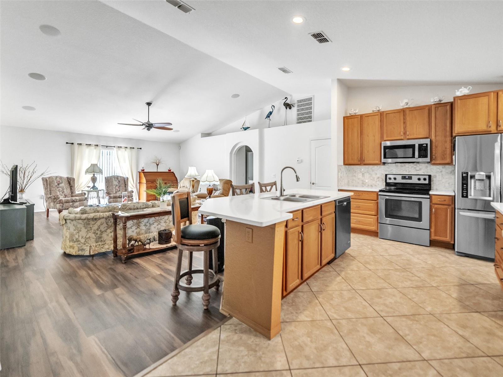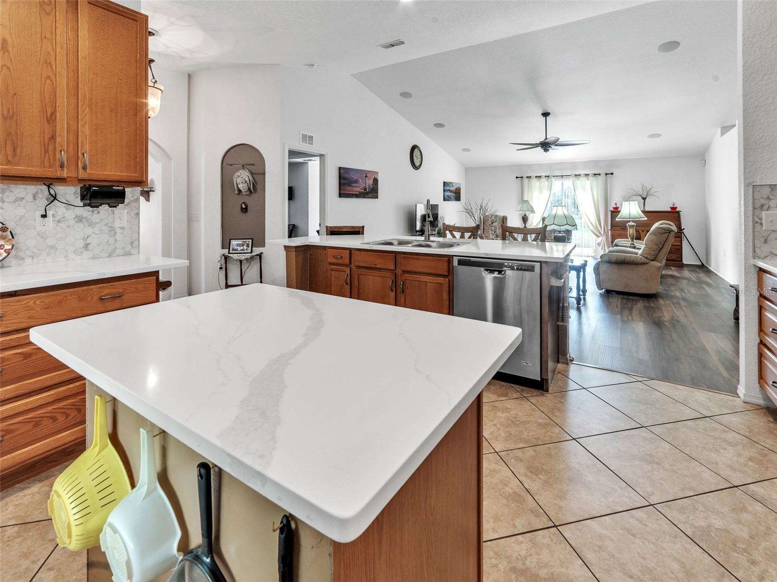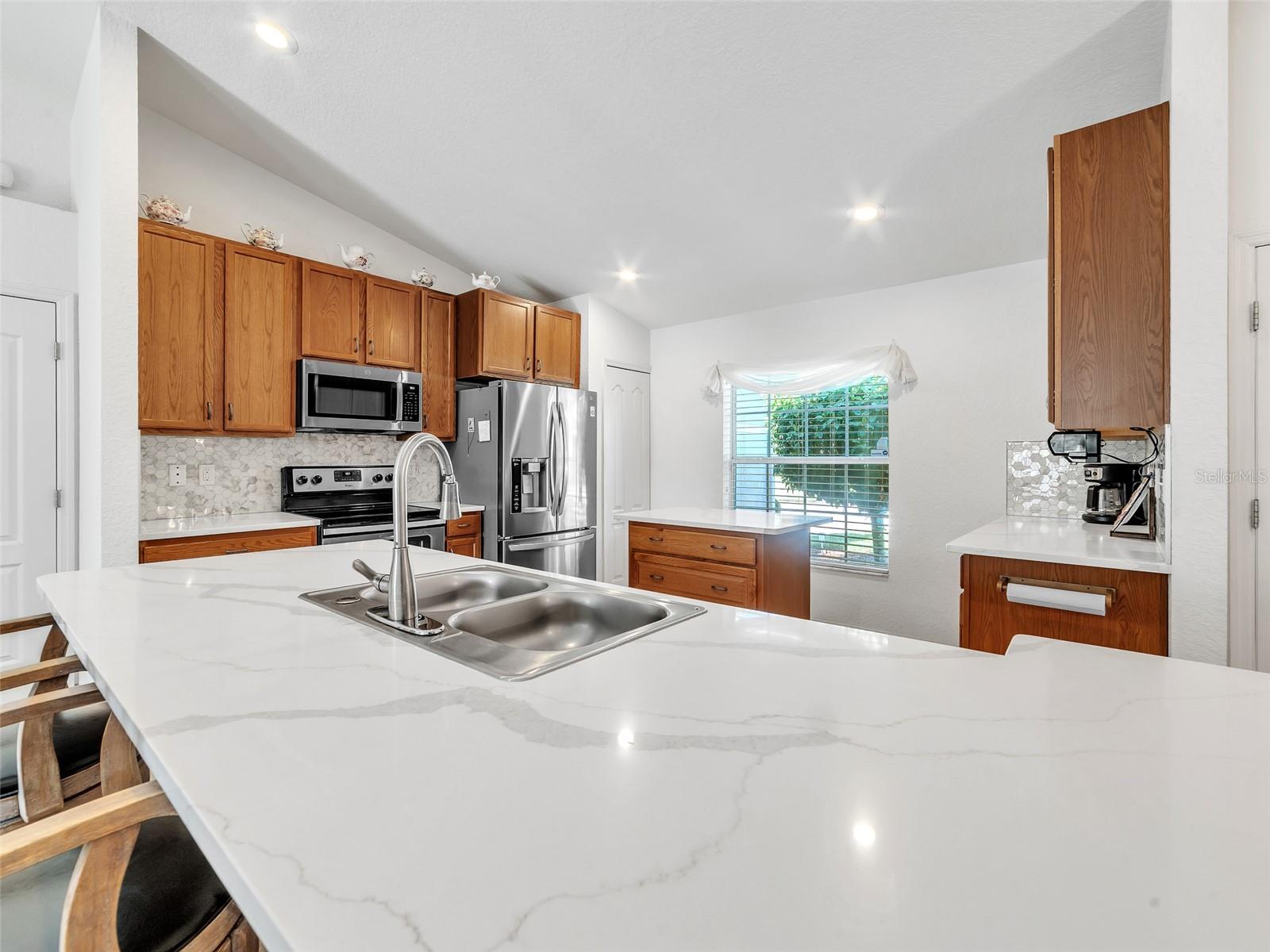 This former model home offers just over 1,800 square feet of comfortable, thoughtfully updated living space. Nestled on an oversized, premium, conservation lot with meticulously maintained landscaping, the home welcomes you through elegant double front doors into an open, light-filled living area. Located in the highly sought-after Country Club Trails community of Winter Haven. The remodeled kitchen is a chef’s dream—with gleaming quartz countertops, a tasteful backsplash, modern drawer cabinetry with spacious 36" drawers, and a brand-new microwave. A separate office/den/dining room creates a graceful setting for gatherings or working, while the flowing layout ties every living space together seamlessly. Your private primary suite is a serene retreat, featuring tray ceilings, large dual walk-in closets, and an ensuite bath with split vanities and a generous walk-in shower. Two additional well-appointed bedrooms lie on the opposite side of the home, offering comfort and privacy. Recent upgrades include luxury vinyl plank flooring in the living room, a new dining/office/den room rug, gutters with underground drainage, a water softener, and a roof less than 1 year old. The HVAC system is serviced regularly, giving peace of mind year-round. Outside, the landscaping is nothing short of stunning—supported by an efficient drip irrigation system, your yard stays lush all year, and a brilliant poinsettia blooms each winter, adding seasonal charm. Location-wise, this home’s address puts you just minutes from I-4 for easy access to Polk County and beyond. Everyday conveniences like Publix, Walmart, and a variety of restaurants—including cozy local favorites—are close by. Adventure is in the neighborhood, too: LEGOLAND Florida, Peppa Pig Theme Park, Cypresswood Golf & Country Club, and the scenic Chain of Lakes Trail are all just a short drive away. This home blends charm, thoughtful updates, and a prime location in one compelling package—a truly welcoming place to call your own.