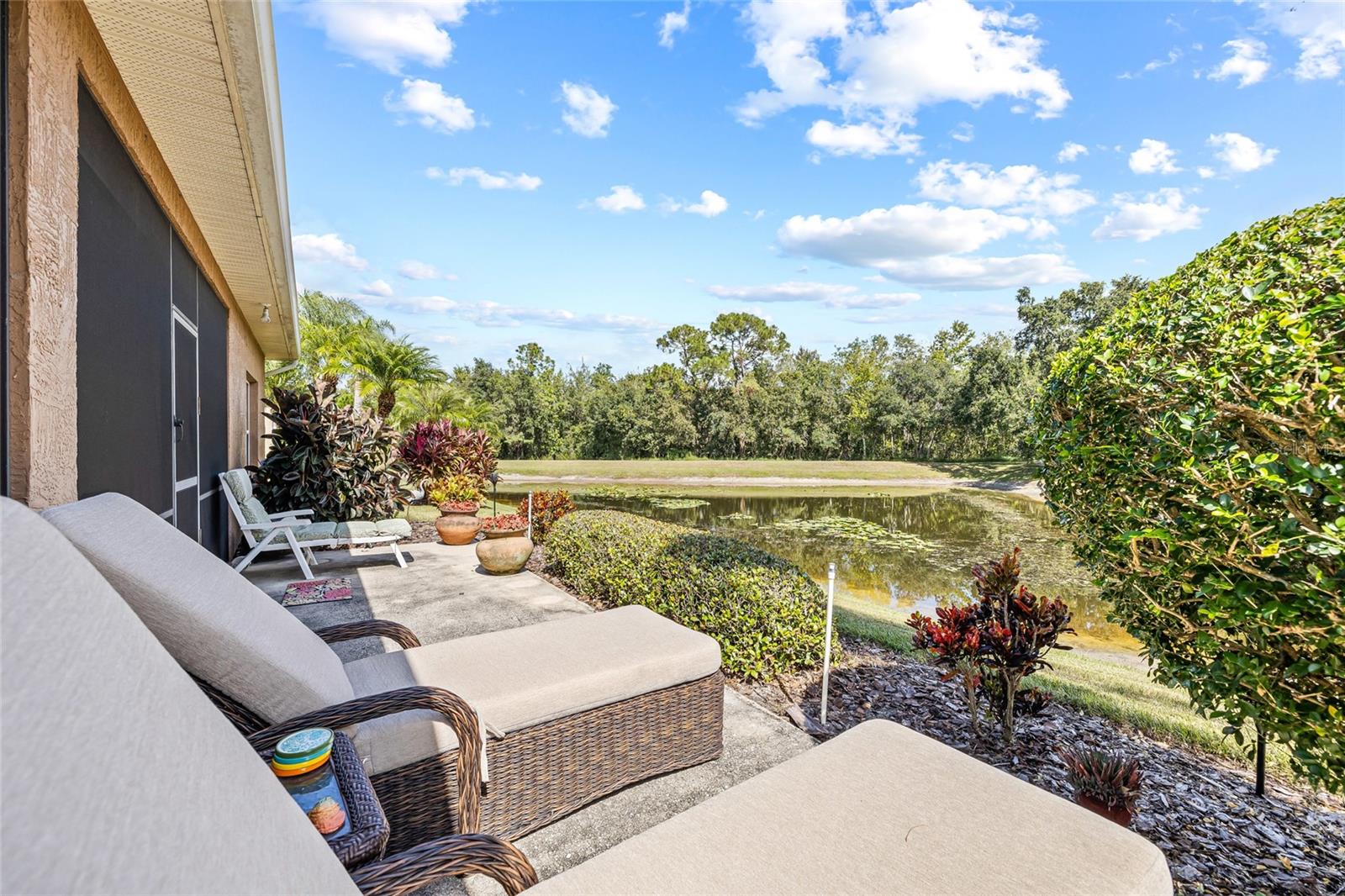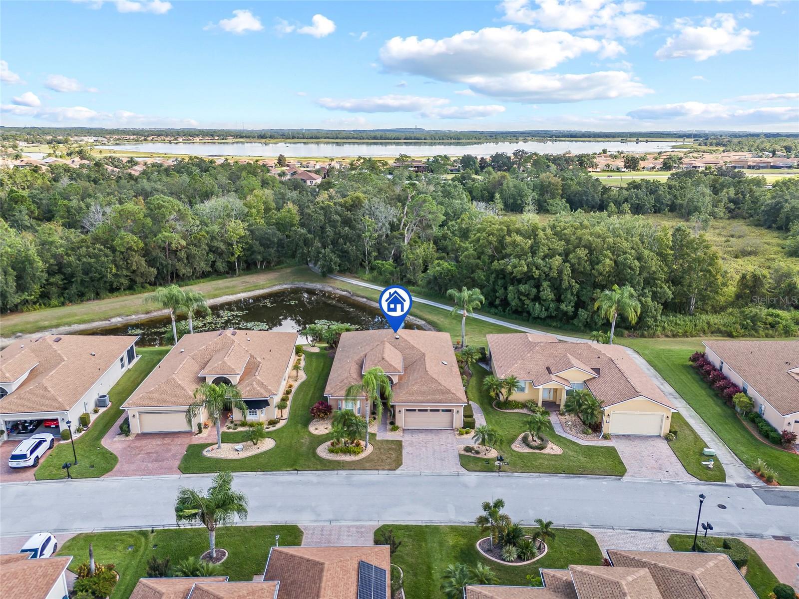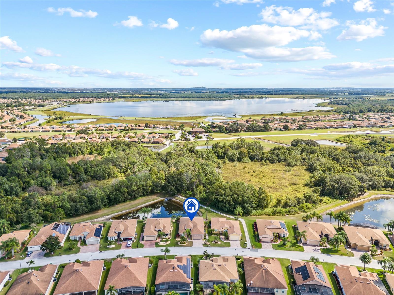 Welcome to the luxurious 55+ golf course community of Lake Ashton! The home is the Biscayne floor plan, consisting of 3 bedrooms and 2 baths and a 2 car garage. The home and garage are accessible with electronic entry for ease. This home has been a winter retreat and only lived in a few months per year. Beautifully installed ceramic tile throughout and carpet in the bedrooms with 9' ceilings create such volume to the space. This home has stainless appliances and solid countertops to compliment the solid wood cabinetry giving it overall elegant feel and spaciousness. The breakfast nook looks into the main living space as well as out to the pond and nature preserve through one of the two 8' sliders giving perfect tranquility to peaceful mornings. No backyard neighbors!! Expansive primary bedroom with soaking tub and dual walk in closets make for the perfect retreat. Home is fully furnished with golf cart in the garage and all items are negotiable with purchase. Come see all that the Lake Ashton community has to offer.