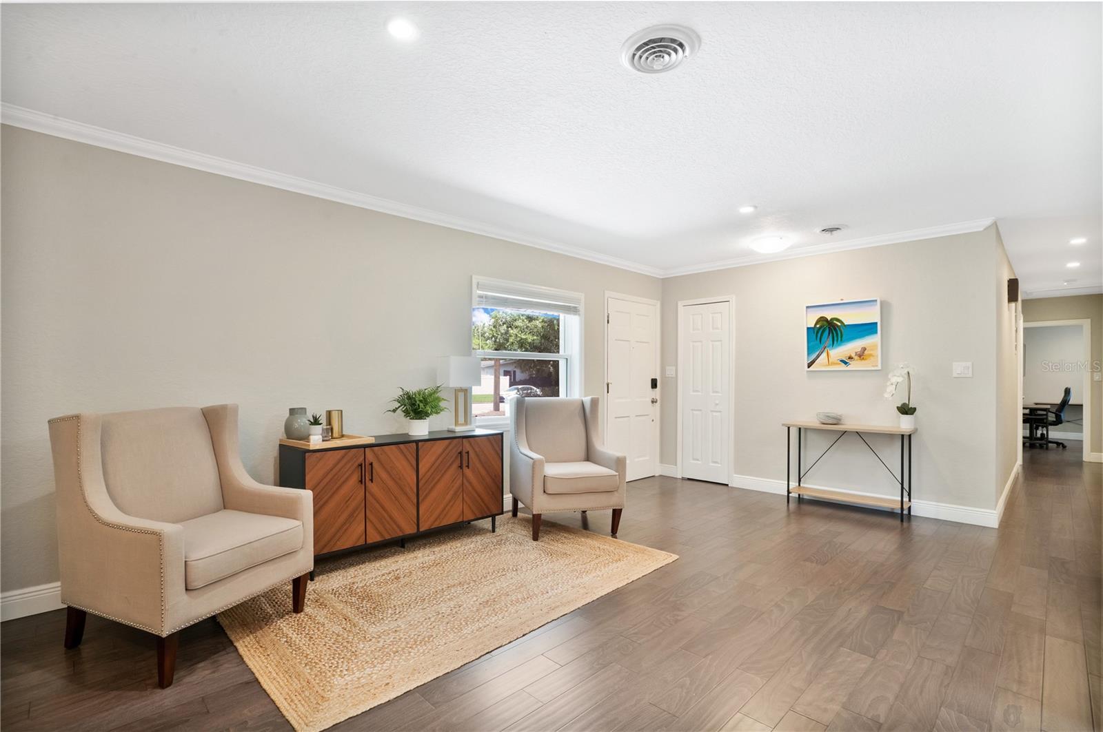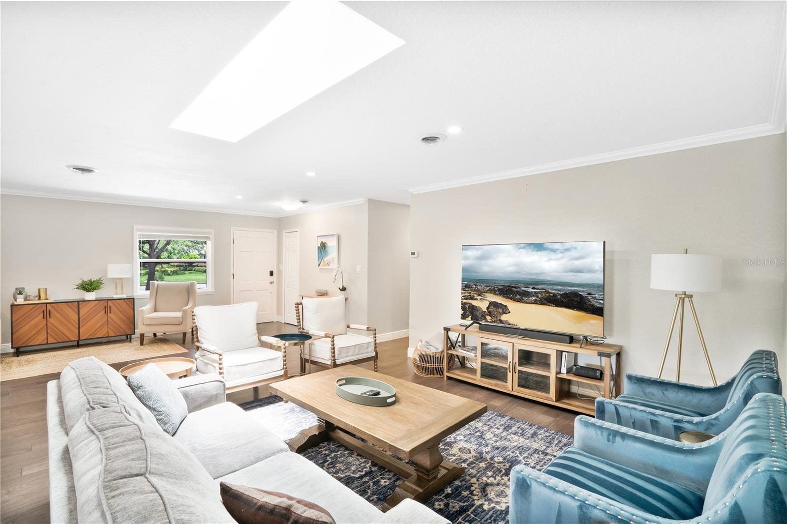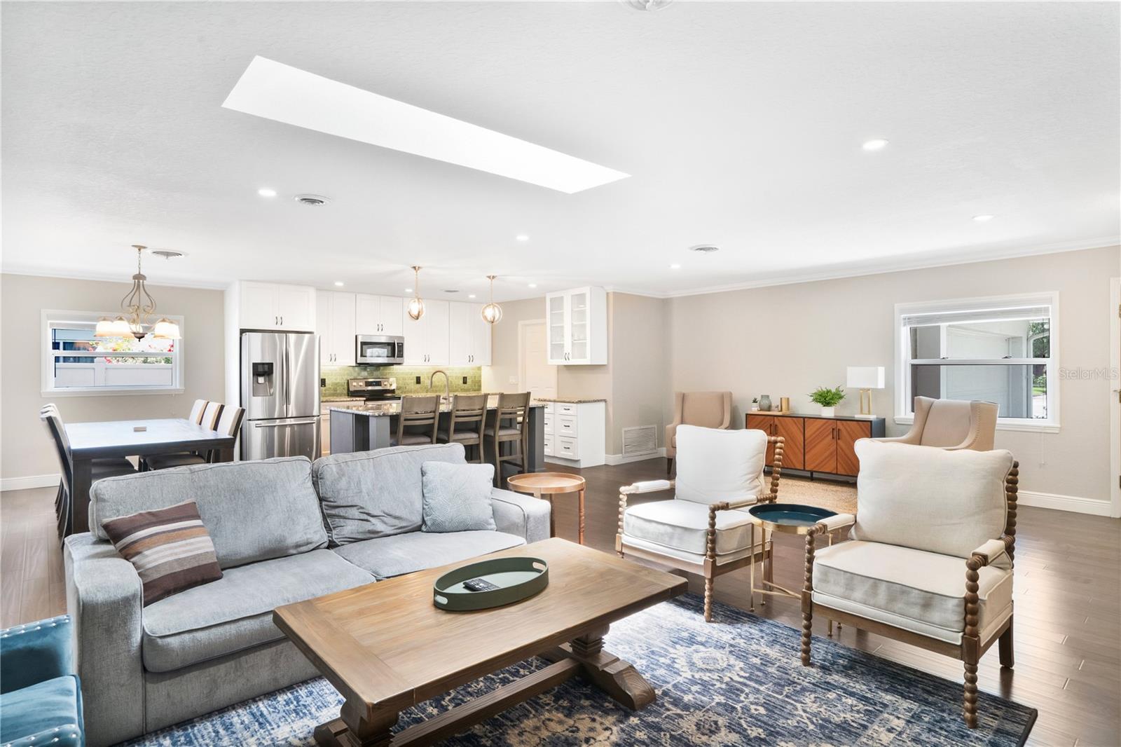Stunning Winter Park home that has been completely renovated. This spacious 3 bedroom/2 bath features hardwood flooring, designer fixtures, custom crown molding & base boards throughout the majority of the home, The open floor plan is perfect for living and entertaining. The kitchen is AMAZING, with granite countertops, stainless steel appliances and a large walk in pantry. There is also a floating island overlooking the dining and living room plus a cozy sitting area. You will have an abundance of natural light from the skylights and double pane windows. Enjoy the additional spacious den or flex room for gaming, exercising or studies with French doors leading to the screened in porch. The laundry area with washer, dryer (included) and a utility sink is conveniently located near your entry to the oversized 2-car garage! The large patio is surrounded by privacy landscaping and fencing along with a shed nearby. The home was re-roofed, replumbed and the electrical box re-wired in 2017. The HVAC was replaced in 2016. This home also has a well for the irrigation system-free water! You don't like an HOA, no worries, it is OPTIONAL!, You want great schools GOT EM! You want a place to play, you are minutes from the WP Pines golf course, Cady Way Bike trail, pool, pickleball/tennis courts, playground, and sports fields plus shopping and WP Hospital. Great investment option as well for parents with a student at Rollins!