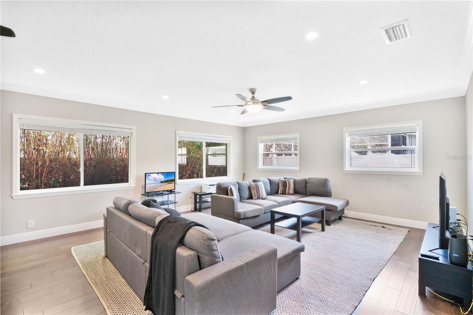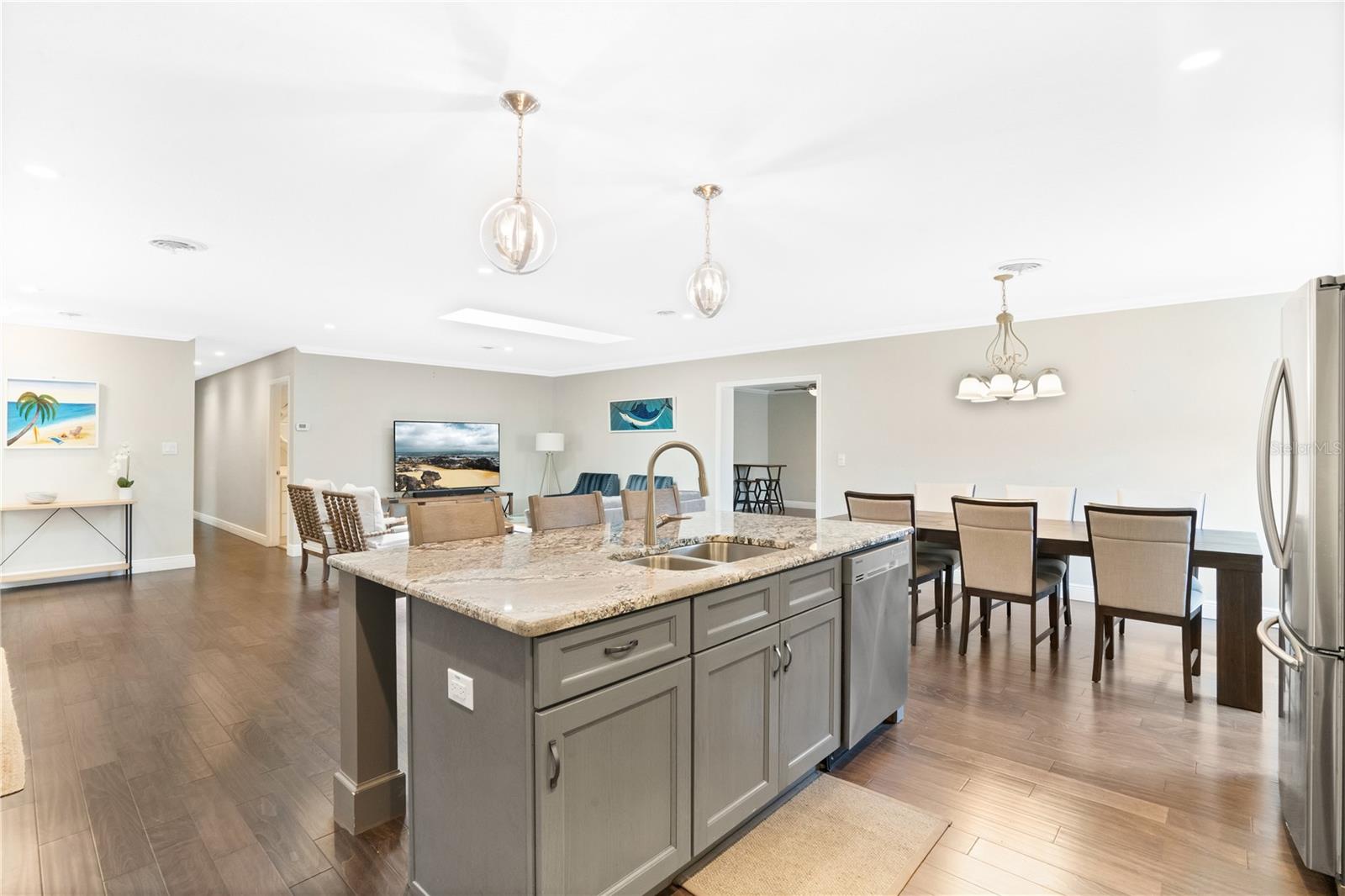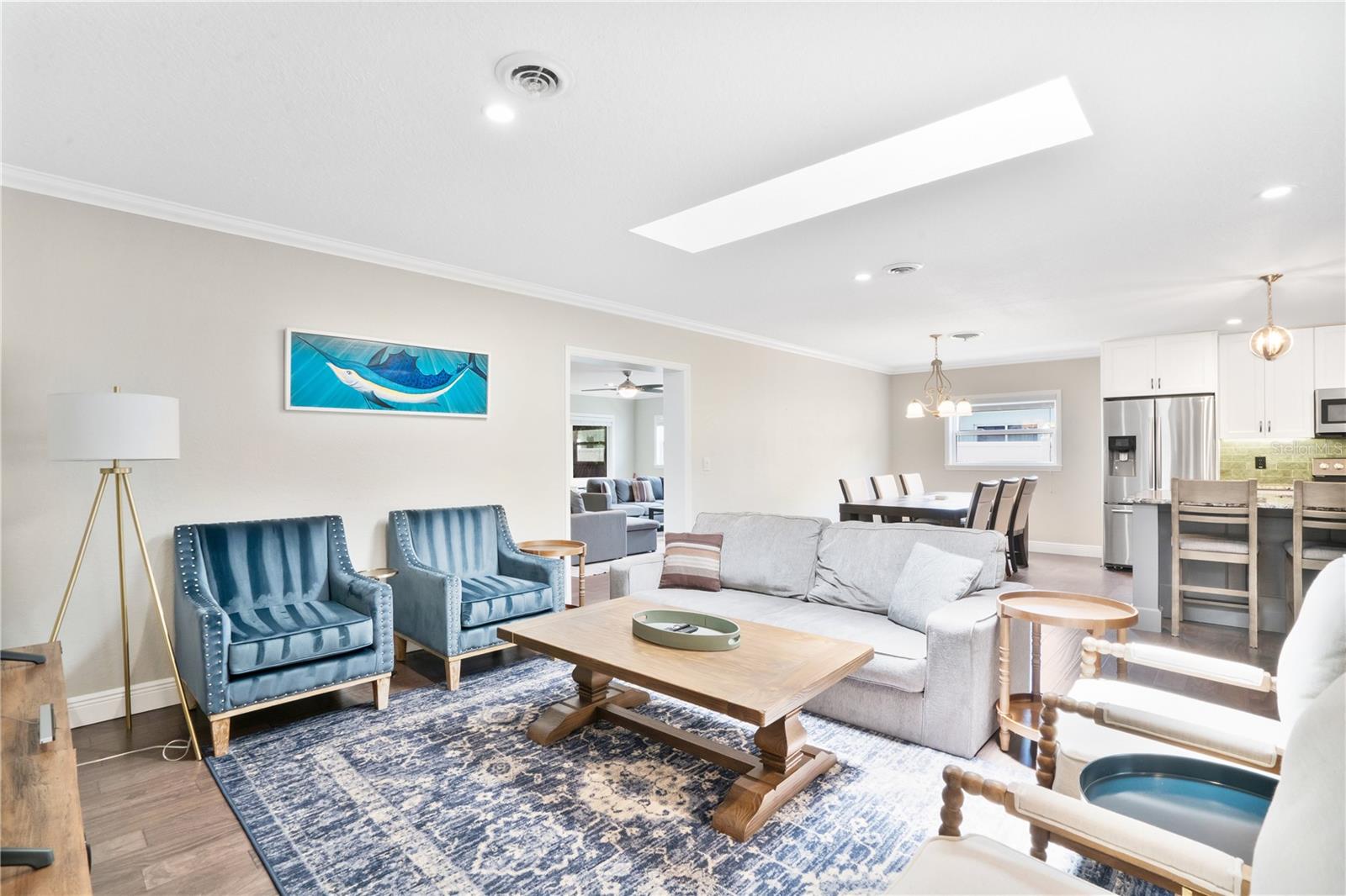 Stunning Winter Park home that has been completely renovated. This spacious 3 bedroom/2 bath features hardwood flooring, designer fixtures, custom crown molding & base boards throughout the majority of the home, The open floor plan is perfect for living and entertaining. The kitchen is AMAZING, with granite countertops, stainless steel appliances and a large walk in pantry. There is also a floating island overlooking the dining and living room plus a cozy sitting area. You will have an abundance of natural light from the skylights and double pane windows. Enjoy the additional spacious den or flex room for gaming, exercising or studies with French doors leading to the screened in porch. The laundry area with washer, dryer (included) and a utility sink is conveniently located near your entry to the oversized 2-car garage! The large patio is surrounded by privacy landscaping and fencing along with a shed nearby. The home was re-roofed, replumbed and the electrical box re-wired in 2017. The HVAC was replaced in 2016. This home also has a well for the irrigation system-free water! You don't like an HOA, no worries, it is OPTIONAL!, You want great schools GOT EM! You want a place to play, you are minutes from the WP Pines golf course, Cady Way Bike trail, pool, pickleball/tennis courts, playground, and sports fields plus shopping and WP Hospital. Great investment option as well for parents with a student at Rollins!