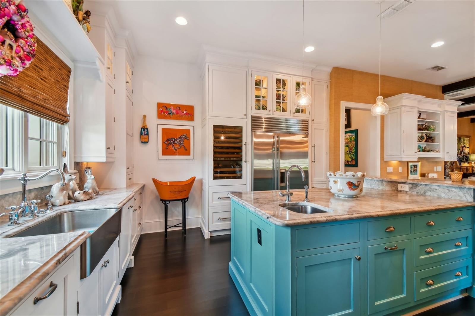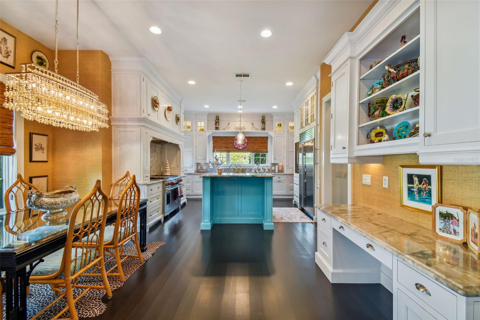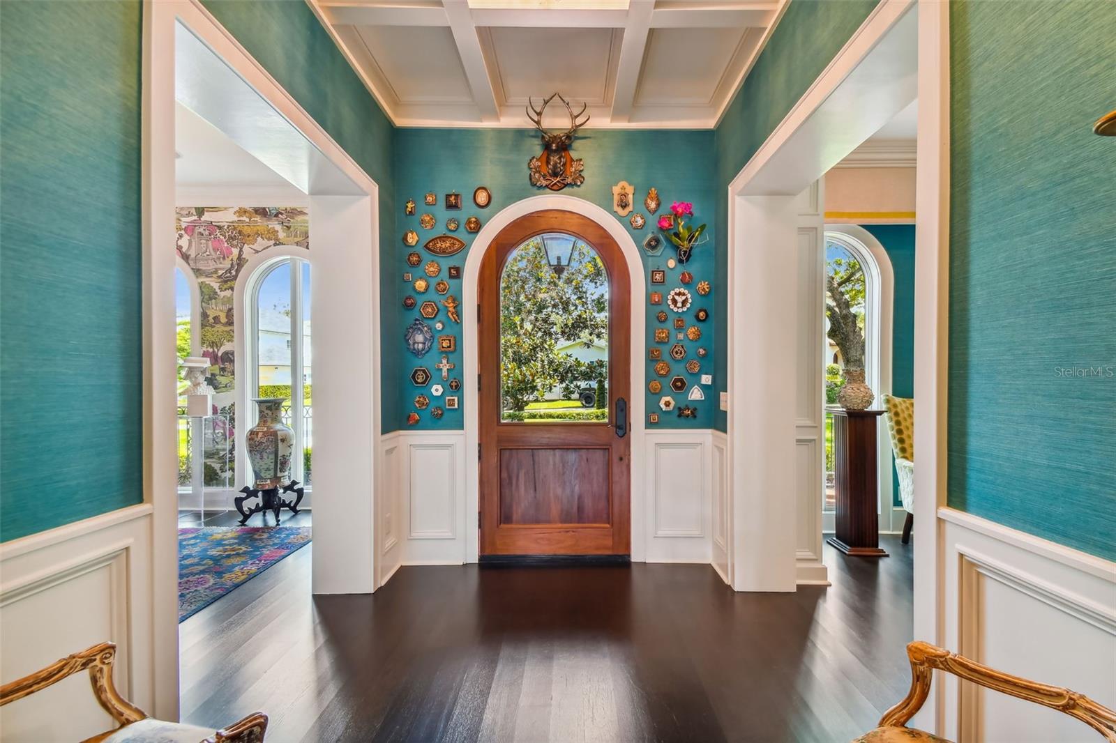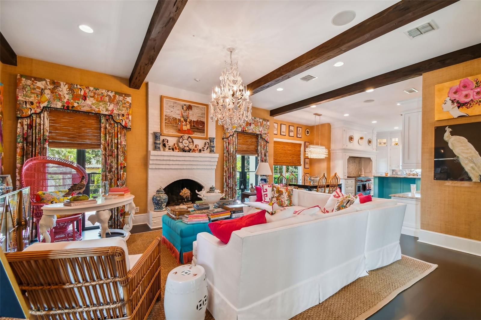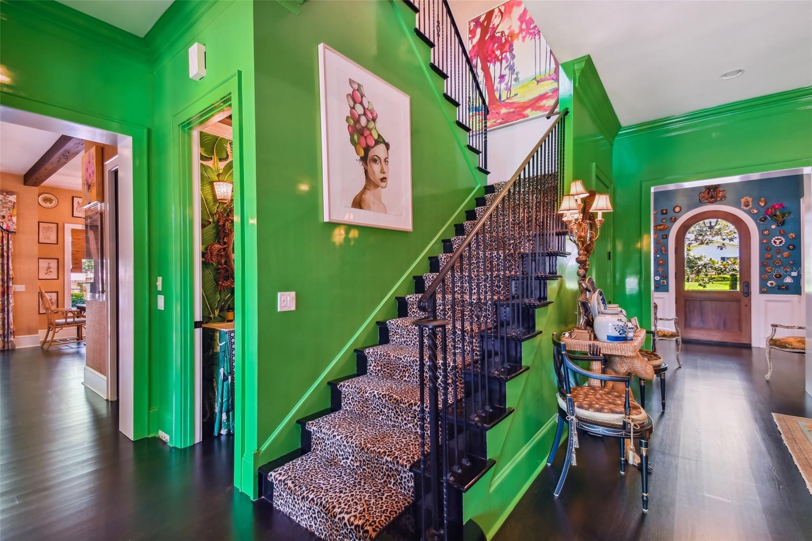 Gorgeous Winter Park home beautifully curated with designer details and recently featured in June’s “Orange Appeal” and was the 2022 Mystery Home Tour selected by Council of 101 for the Orlando Museum of Art. This elegant transitional French Provincial residence is located on a large, elevated corner lot in a quiet and secluded area in the Via’s of Winter Park. This designer home has been significantly enhanced inside and out by the current owner and is in “brand new condition.” The home features 5,100 square feet of living space and 800+ square feet of outdoor space with 5 bedrooms, 5 bathrooms, 1 half bathroom, 3 car garage, pool, patio, outdoor shower and professionally landscaped yard and lighting. Upon entry, you are welcomed through the exquisite foyer where you instantly notice the craftsmanship and expert care that went into the custom carpentry and crown molding details throughout. To the left of the foyer is an elegant and intimate parlor with grass cloth wallpaper, a gas vented fireplace and built-in bookshelves. To the right of the foyer is the formal dining room with beautiful hand painted wallpaper and an adjacent butler’s pantry. Past the foyer you are led to a spacious and grand formal living room with lacquered walls and 6 new French iron doors that flow out to a covered brick porch and picturesque back yard & pool. Designed with entertainment in mind, the adjoining chef’s kitchen includes newly painted custom cabinetry, a Sub-Zero/Wolf appliance package, a grand center island and a walk-in pantry. Built in desk and casual dining area all open to the adjoining beamed ceiling family room with gas vented fireplace and additional French doors that lead to street side patio with new awnings. First floor master retreat overlooks the pool & yard and features 14-foot wood beam vaulted ceilings. The oversized master bath with double custom lacquered vanities made in Palm Beach, mosaic marble shower and a Waterworks free standing tub, brushed brass fixtures, and walk in closet. The second-floor features nine-foot ceilings with four bedrooms (one which was converted to a beautiful women’s dressing room) and four ensuite bathrooms, covered balcony adjoining two bedrooms, two built in desks and bookshelves for office/study time and large media room with big screen tv and wet-bar. There are also two laundry rooms, one upstairs and one downstairs. Attic space inside the home and inside the garage. Recent upgrades include new slate roof/swooped decorative copper roof with chimney caps, complete chimney rebuild, nine new iron French doors, new ebony-stained oak hardwood floors, lacquered walls, newly renovated master bath and two ensuite baths. This home offers boat access to the Winter Park chain of lakes and is within short distance of the Winter Park Racquet Club. It’s also a bike ride away and a short drive to the Interlachen Country Club and Park Avenue shopping and dining district. The property is zoned for Dommerich Elementary, Maitland Middle School, and Winter Park High School.