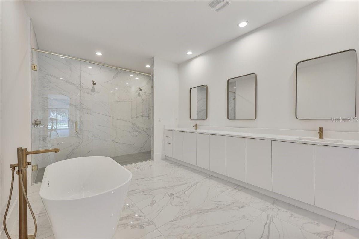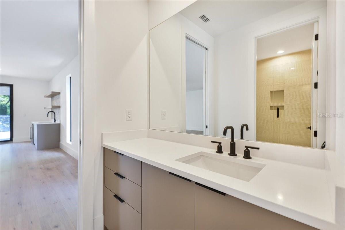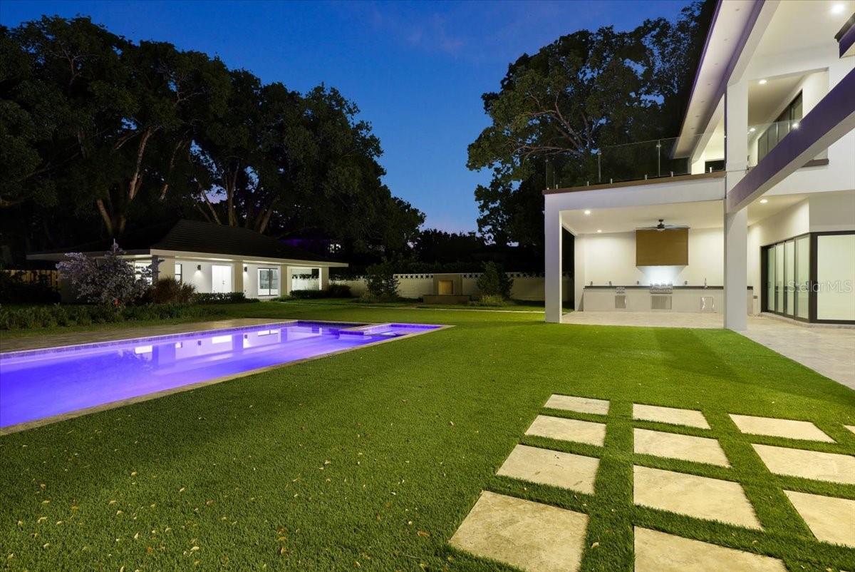 New Home Nestled in the esteemed The Vias area and near the WPRC. Situated on a secluded street, it occupies an approximately 0.58-acre lot with an expansive backyard landscape that is truly captivating. This exquisite home encompasses five bedrooms and six-and-a-half bathrooms with a four-car garage. An indomitable presence is seen in its immense and grand pivoting iron door which directs you to a double-height foyer and great room separated by a glass-railing catwalk. The property boasts exclusive features like a formal dining room endowed with a glass-encased wine display as well as an intimate den/office safeguarded by private entrance doors. The airy master bedroom is adorned with sliding doors that open up to reveal a private lanai overlooking the pool area; one cannot overlook its distinctively vast his-and-hers walk-in closets complemented by a spa-like luxurious bathroom suite. A state-of-the-art kitchen featuring gold Calacatta Quartz countertops/backsplash matched alongside an oversized walk-in pantry, creating everyday usability flanked with indulgence! Two separate upper and lower level laundry rooms serve this expansive open floor plan a win-win situation for convenience! Adding exceptional charm to this stunning home is a family room equipped with zero corner sliding doors opening up towards the summer kitchen leading onto a large covered patio encased in travertine pavers-- making it your personal haven for enhancing entertainment moods. Venturing upstairs via an elegant Quartz staircase leads you to an additional four en-suite bedrooms (each with walk-in closets). Complementing your leisure needs flawlessly are a comfy lounge space and fun-filled game room with a wet bar setup; creating a direct pathway onto a sprawling balcony exhibiting glass railings overlooking backyards - commanding mesmerizing views of your saltwater gas-heated pool and cozy gas firepit with a seating area for social gatherings! A dedicated full-bath pool with a steam shower. Home gets fully enveloped using high-quality materials fashioned from Large Porcelain format tiles, European tiles, Travertine pavers, and Swiss-origin WPL catering to its strength quotient. Tor uniquely detailed outlook, the property also offers a detached additional building that has been thoughtfully renovated to deliver an extra 600 sq ft of living space - not part of the main house size calculation (6475 sq ft). With 1 bedroom, 1 full bath, a fully functional kitchen surrounded by a living area, and a covered/tiled porch; it makes for a rare addition delivering discernible usefulness. Think creativity! Convert it into a guest house, in-law suite, gym space, professional office setup, or even a hobby room - multiple endless usage options make its possession a valued choice! The home is available now and move-in ready! Get one step closer to owning the realization of your dream dwelling experience!