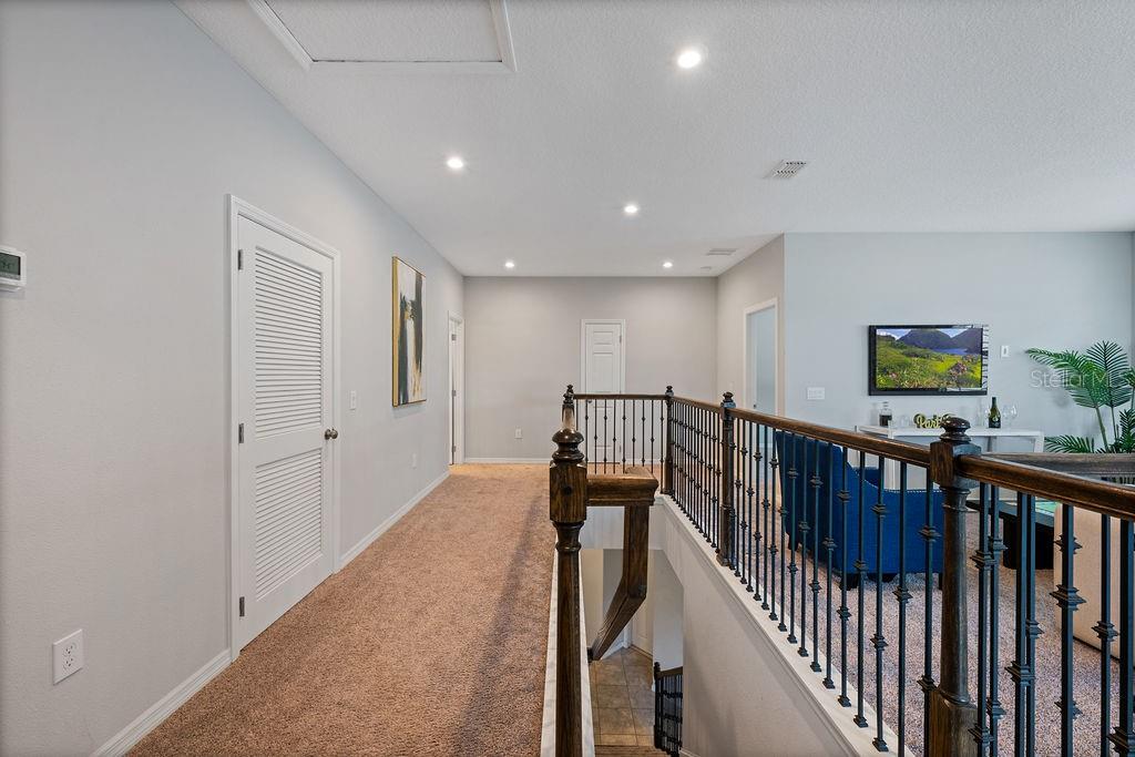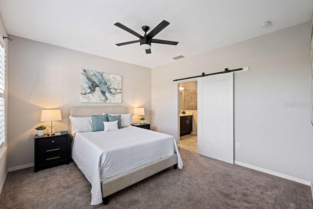 Welcome to this stunning two-story, 3-bedroom, 3 and a half bathroom home, nestled within the highly desirable Winter Park in a secure gated community. This kitchen boasts luxury features including quartz countertops, stainless steel appliances and rich dark wood cabinets. The master bedroom, with a spacious bathroom and walk-in closet, is conveniently located downstairs for added convenience. Upstairs, you'll find a second master suite, a third bedroom and a generous loft, providing ample living space. Enjoy the tranquil conservation view with no rear neighbors from the comfort of your fenced-in backyard, complete with a built-in grill area and a fireplace, perfect for entertaining or relaxing. This community offers resort-style living with a huge pool, cabanas, fitness center, and a beautiful clubhouse managed onsite. Embrace the picturesque surroundings with a private lake and dock featuring a kayak launch. The HOA takes care of ALL yard maintenance, ensuring a hassle-free and maintenance-free lifestyle. Plantation shutters adorn every window, adding a touch of elegance. Don't miss out on this exceptional Winter Park home offering luxury, convenience, and a serene setting.