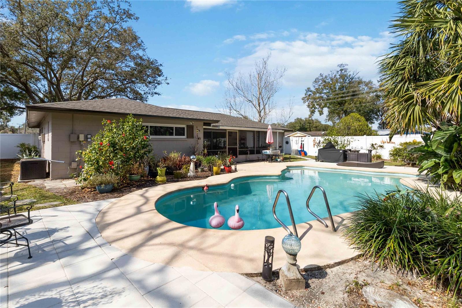 MOTIVATED SELLER. Meticulously Maintained Corner-Lot Pool Home with Modern Upgrades & No HOA! Pride of ownership shines throughout this beautifully maintained corner-lot home, offering privacy, space, and modern comfort on over a quarter-acre of professionally landscaped grounds—all with NO HOA! Every detail has been thoughtfully cared for, ensuring a move-in-ready retreat for its next owner. Located in SEMINOLE COUNTY TOP-RATED SCHOOL DISTRICT From the moment you arrive, you'll notice the meticulous upkeep and thoughtful upgrades, including a new roof (2021) and NEW double impact windows, providing both peace of mind and energy efficiency. Inside, the home features all-tile flooring throughout, a spacious open-concept great room, and an abundance of natural light. The oversized area seamlessly flows into a large extra living space, making it perfect for entertaining or customizing to fit your lifestyle. The bright and airy eat-in kitchen offers the perfect spot for casual dining and features a BRAND-NEW DISHWASHER, making meal prep and cleanup a breeze. Step outside to your NEWLY SCREENED-IN LANAI leading to your private backyard OASIS, where you’ll find a large pool with premium Jacuzzi-brand equipment, an extended pool deck, and a huge fenced-in yard—ideal for pets or simply enjoying the Florida sunshine. Whether hosting a gathering or unwinding in your personal sanctuary, this backyard offers the perfect setting. A second water meter adds an extra benefit for the pool house, providing significant savings on water usage, particularly for pool maintenance and landscaping. This home is a rare gem for first-time buyers or anyone looking for a stress-free, move-in-ready home.