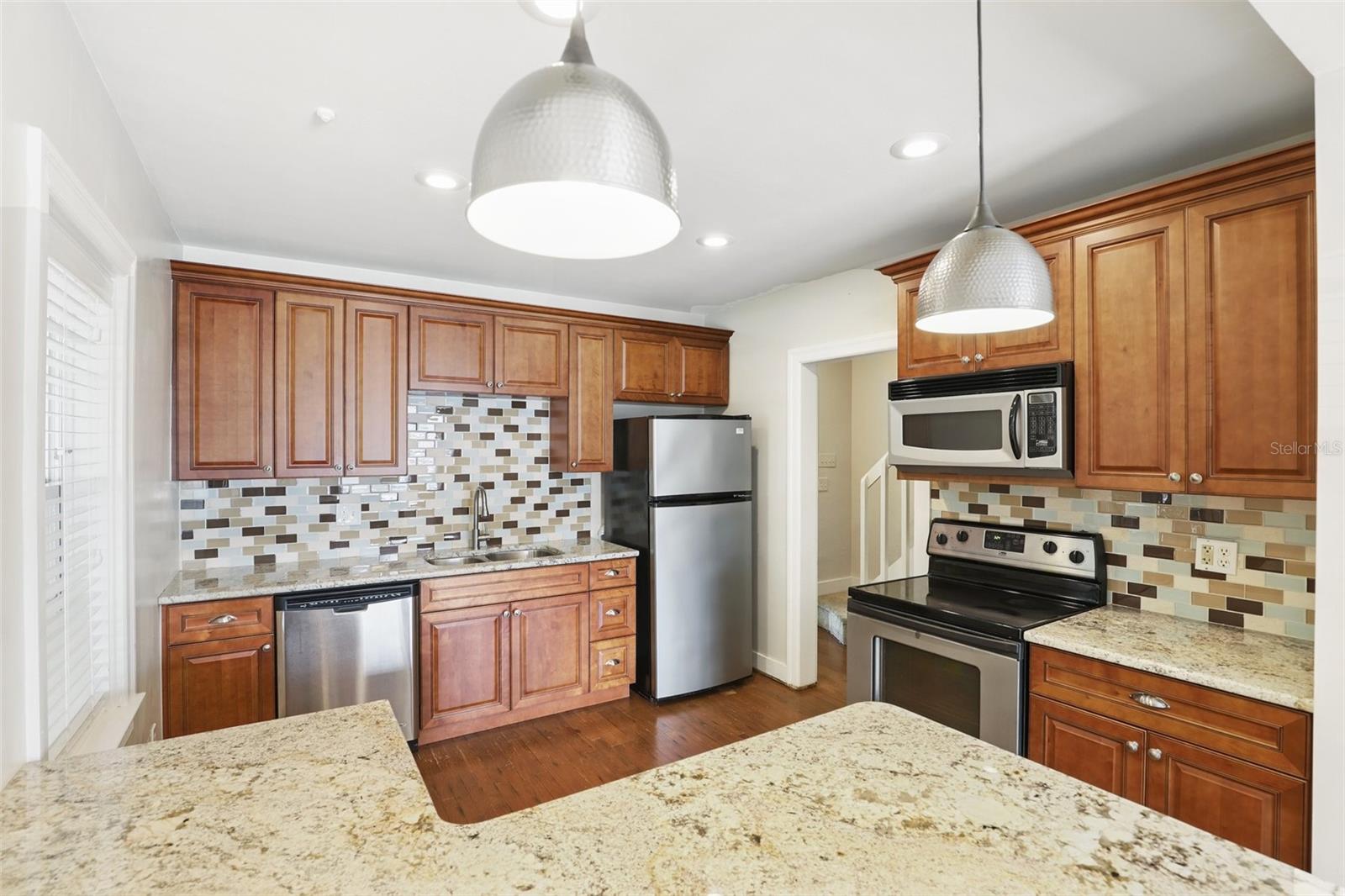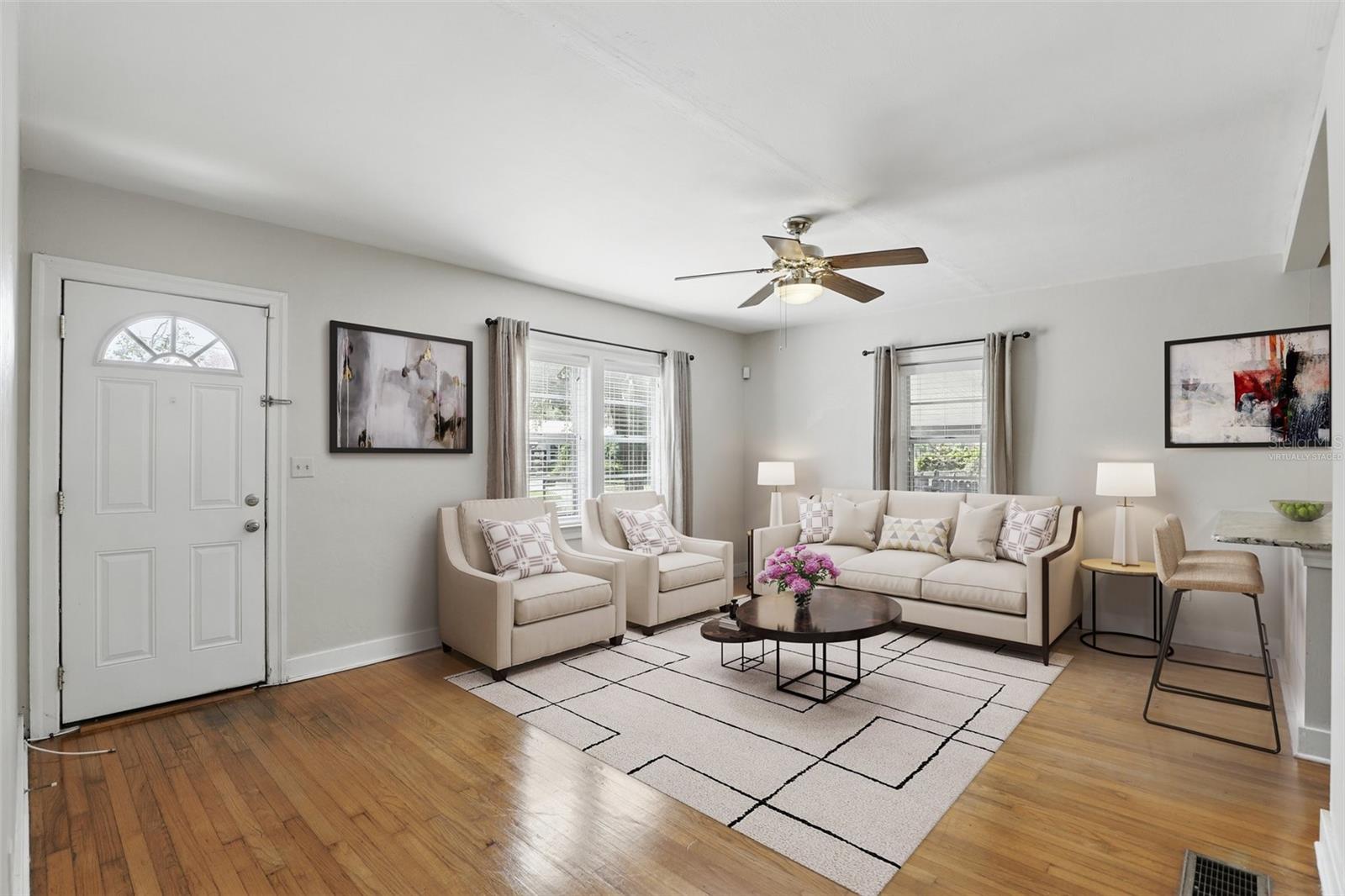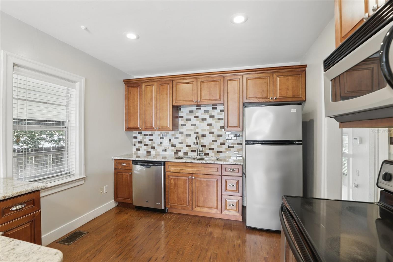 One or more photo(s) has been virtually staged. An awesome home for young professionals or family or great rental for an Investor! Fantastic location! Welcome to this charming 3-bedroom, 2-bathroom Winter Park home. The combination of original wood floors and plaster walls keep the integrity of the home. An updated kitchen with gorgeous cabinets and granite countertops with space for 3 bar stools and NEW APPLIANCES adds a perfect blend of charm and modern convenience. The interior has been freshly painted. The bathroom was renovated to maintain the character of the home. The large living room is filled with light, and the additional versatile family room can be used as a home office, dining room, or exercise space. There are two nice sized bedrooms on the main floor and the upstairs bonus room includes a bedroom an ensuite bathroom and air conditioned attic space for storage. It could also be a great man cave, office or teenager private space. The beautiful totally fenced treed backyard and one-car garage with a workshop area and its own toilet, along with a carport, add to the home's appeal. The seller is offering a two year home warranty! Conveniently located near I-4, Park Avenue, Winter Park Village, Dubsdread Golf Course, restaurants and shopping and downtown Orlando
