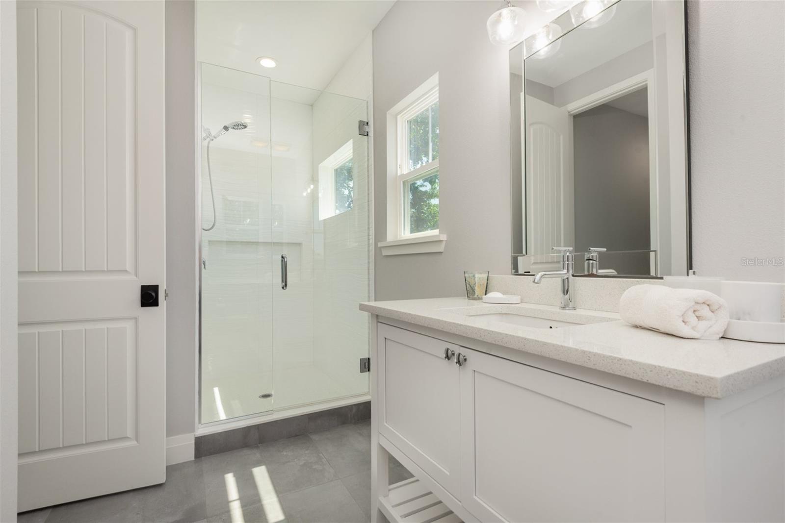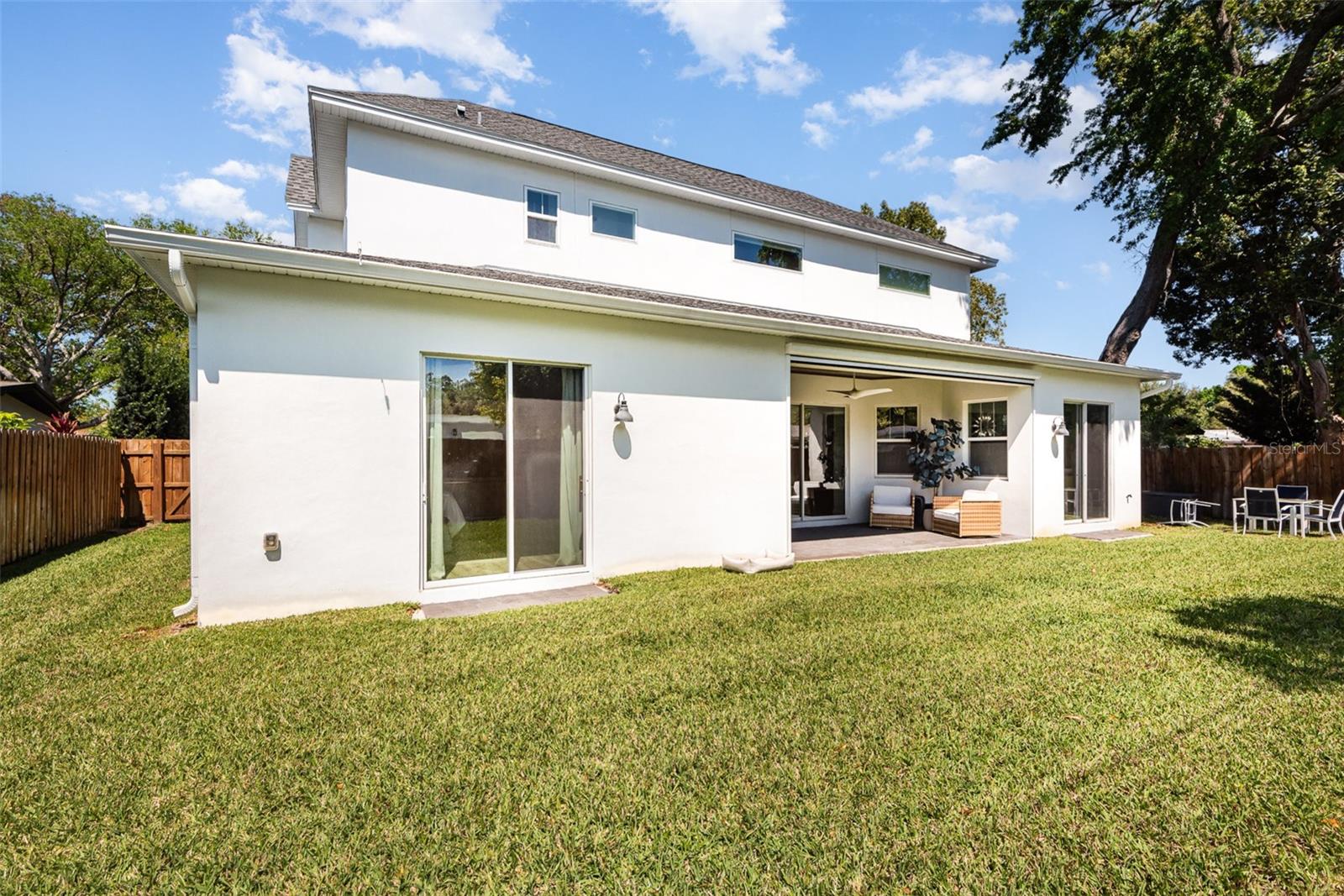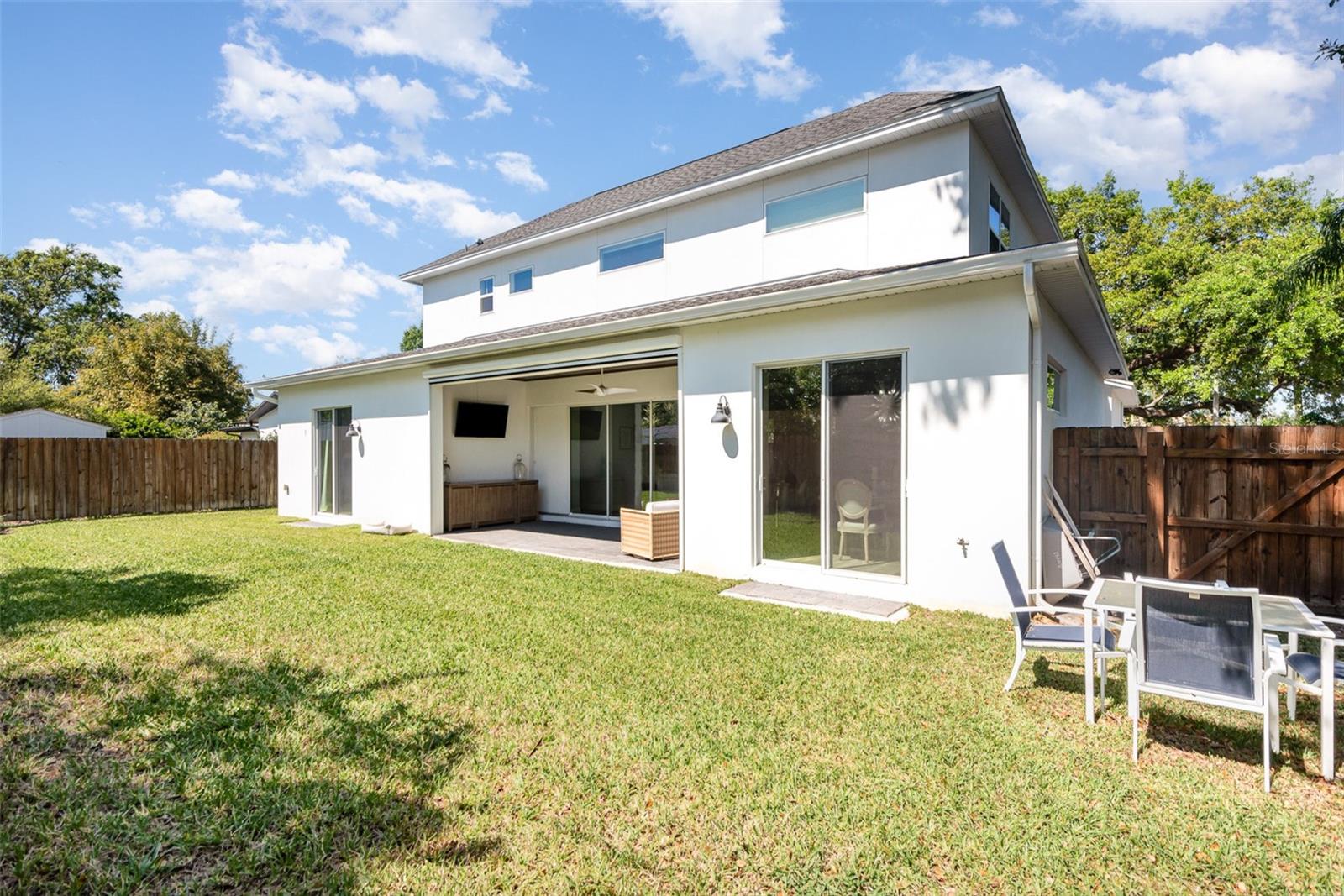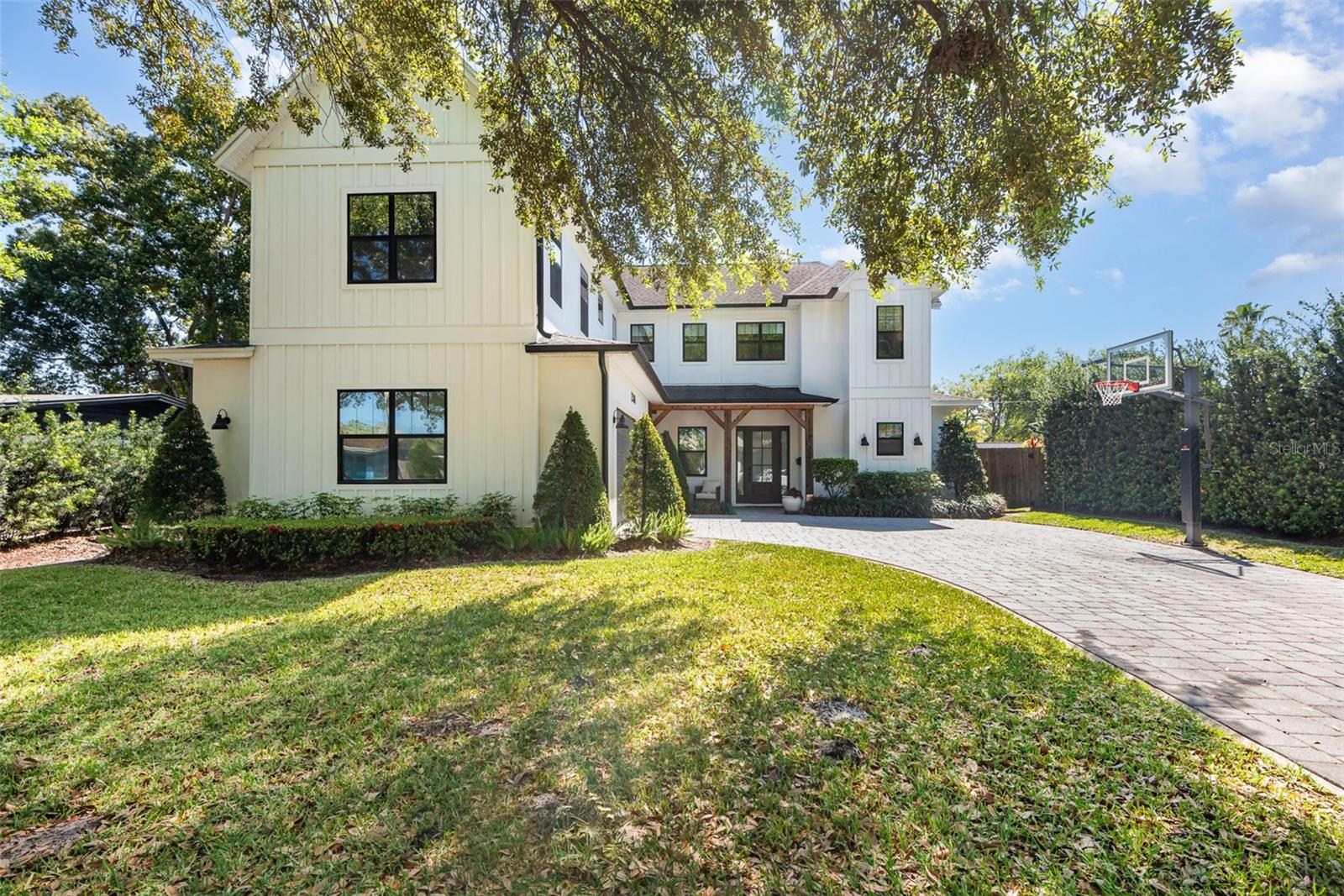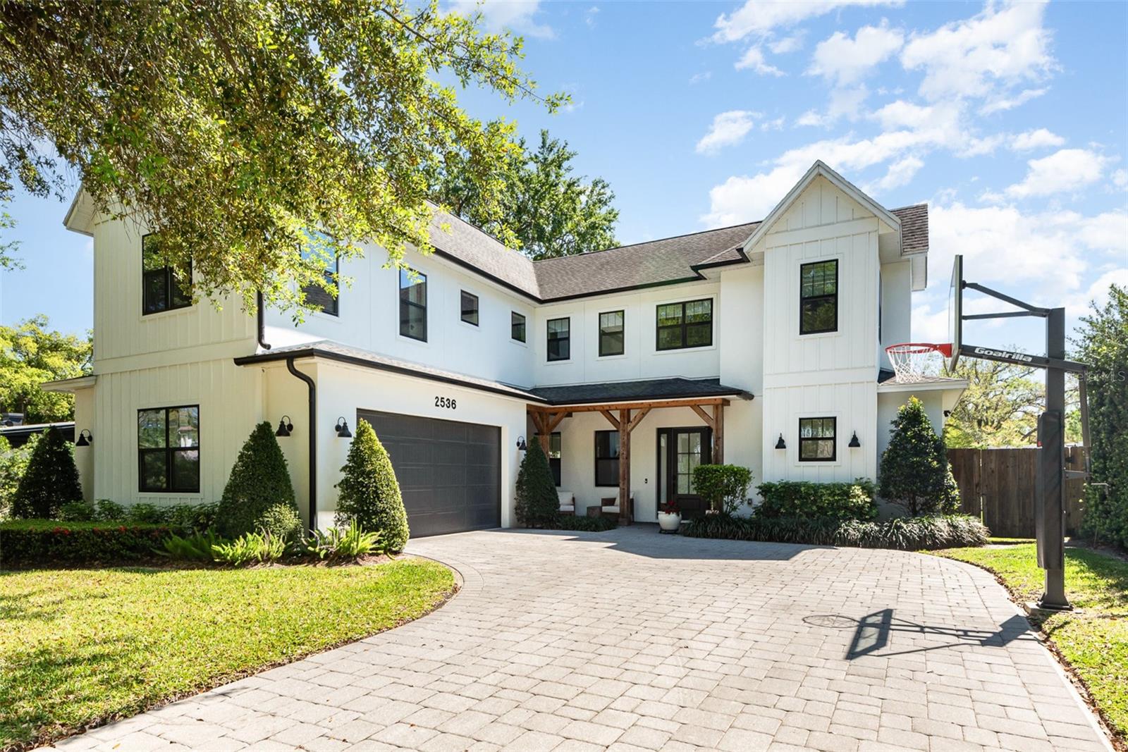 Welcome to 2536 Brookshire Ave, a spacious 4-bedroom, 3.5-bath modern farmhouse located in the heart of Winter Park. The open floor plan enhances connectivity throughout, with a first-floor primary suite featuring generous his and her closets. Designer lighting and plumbing fixtures, custom interior paint, 8-foot doors, and wood-like tile floors create a cohesive design. Enjoy additional space upstairs with a loft that has the potential to be converted to a 5th bedroom. All bedrooms are pre-wired for cable and CAT 6, with surround sound in the main living areas and speaker wiring on the back porch. The gourmet kitchen features custom white shaker cabinetry with soft-close doors and drawers, an oversized granite island, and designer pendant lighting. Stainless steel appliances, including an induction cooktop and refrigerator, complement the space. A built-in pantry and under-cabinet lighting with integrated outlets add functionality. The primary suite includes a walk-in shower enclosed in custom glass, a freestanding soaking tub, and dual solid wood vanities with ample storage. Smart technology features include a motorized retractable screen lanai, a Lutron smart exterior lighting system, a MyQ smart garage door opener, and a Schlage smart front door lock with coded entry access on all exterior doors. The home is wired for Ethernet, and a Ring doorbell adds security. The spacious garage offers remote access. Built for efficiency and durability, the home features foam-insulated block walls, Low-E windows, a fully fenced backyard, a sprinkler system, and a radiant barrier roof. Two 15 SEER AC units and a programmable thermostat provide climate control. Located within one of Winter Park’s top-rated school districts, this home is just minutes from Park Avenue’s upscale shopping, dining, and entertainment. Additionally, it is conveniently close to the Winter Park Racquet Club, Interlachen Country Club, and the YMCA. Enjoy nearby outdoor recreation at Ward Park, as well as wellness amenities at the Center for Health & Wellbeing.