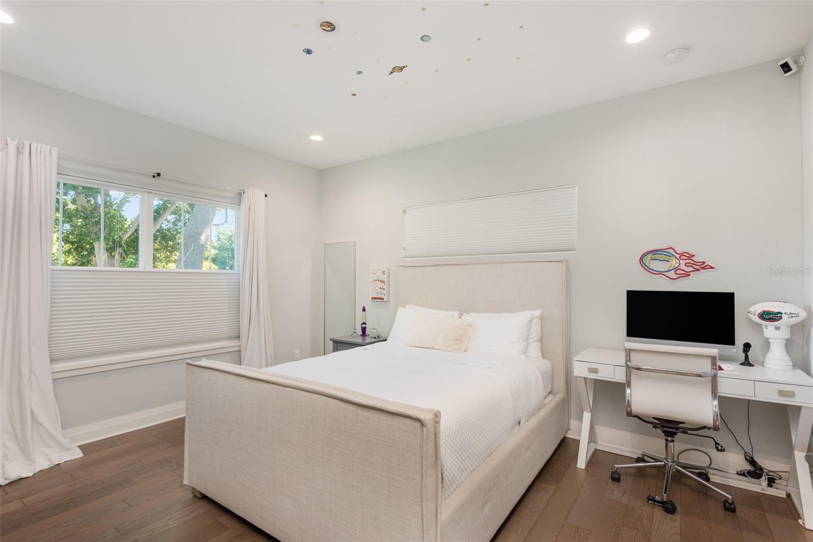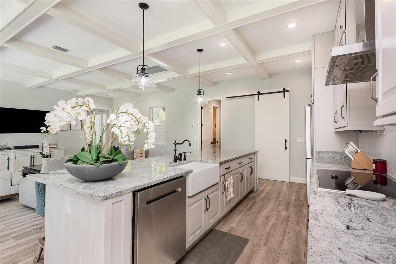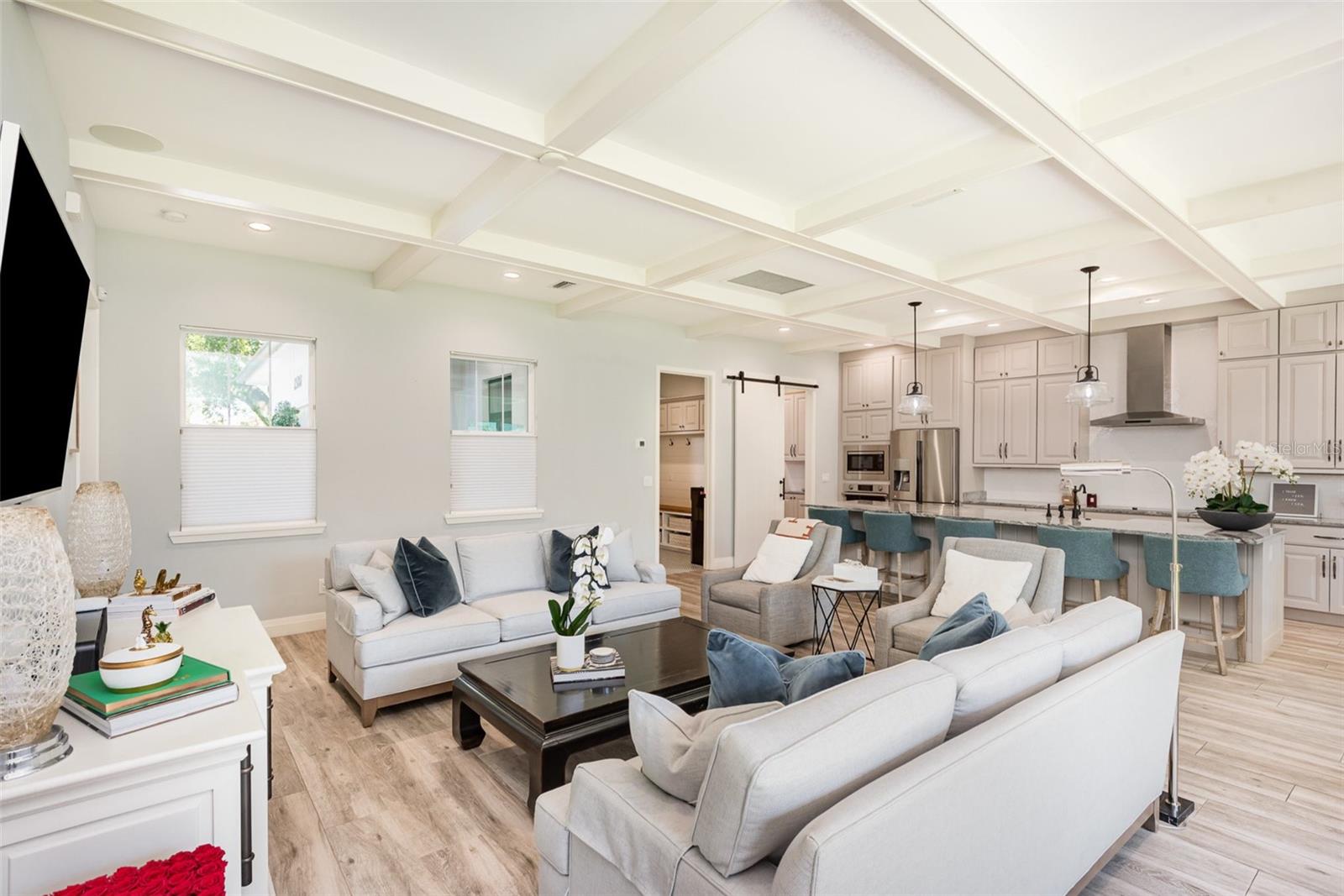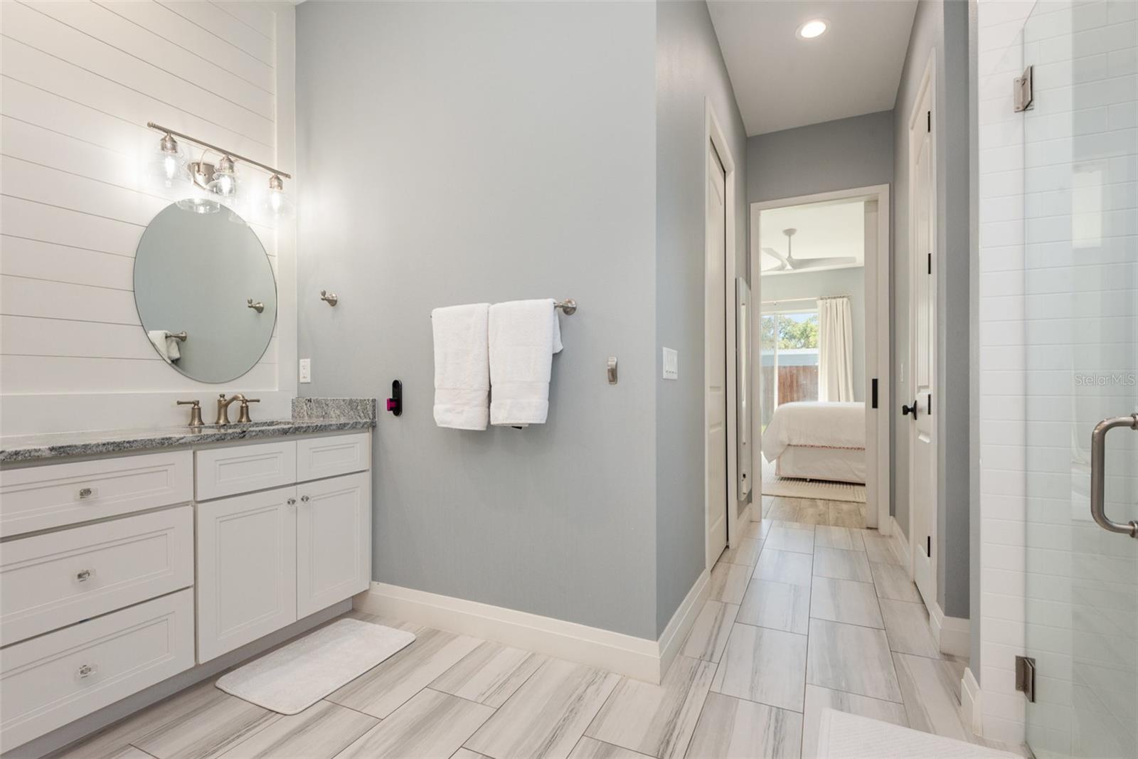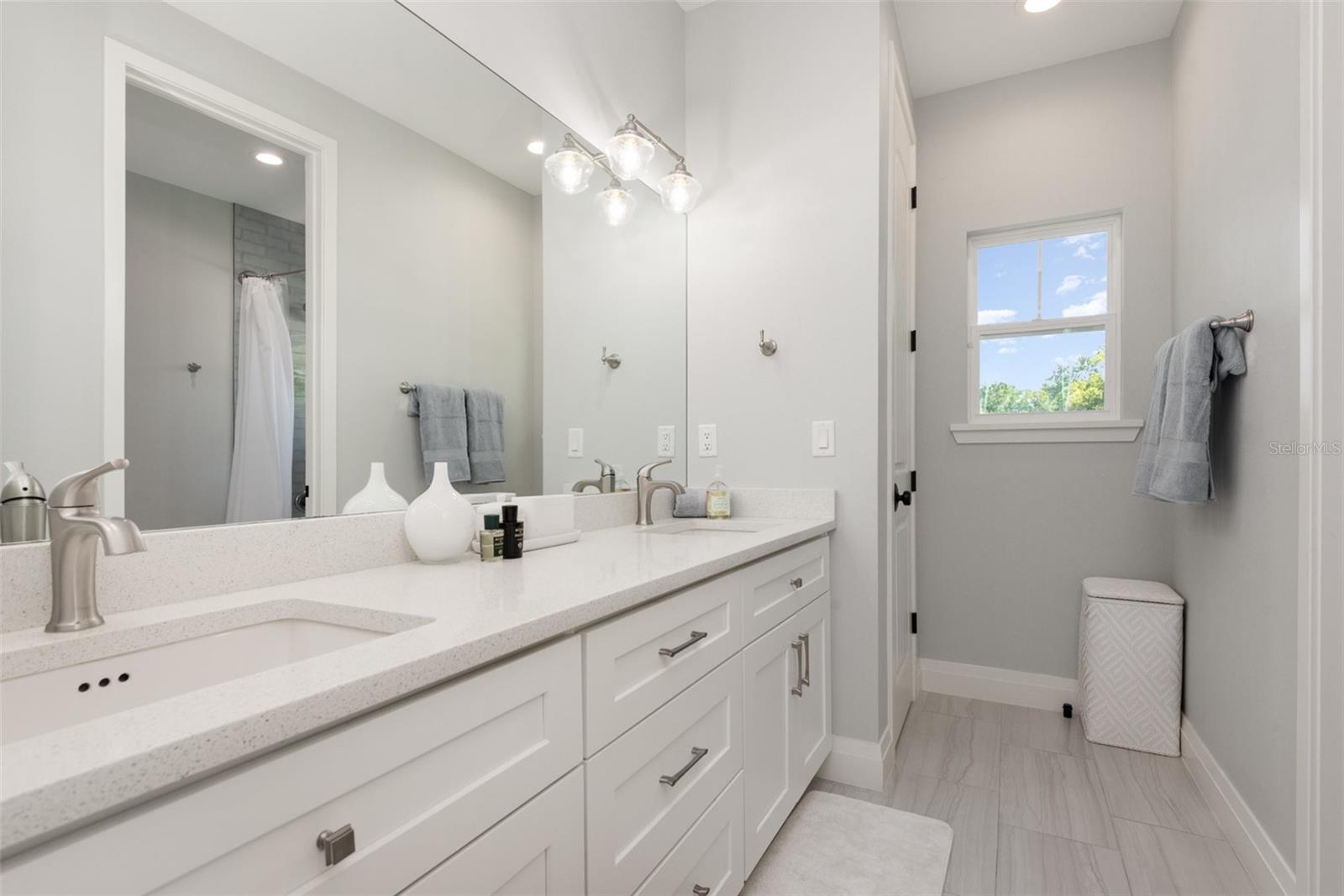 Welcome to 2536 Brookshire Ave, a spacious 4-bedroom, 3.5-bath modern farmhouse located in the heart of Winter Park. The open floor plan enhances connectivity throughout, with a first-floor primary suite featuring generous his and her closets. Designer lighting and plumbing fixtures, custom interior paint, 8-foot doors, and wood-like tile floors create a cohesive design. Enjoy additional space upstairs with a loft that has the potential to be converted to a 5th bedroom. All bedrooms are pre-wired for cable and CAT 6, with surround sound in the main living areas and speaker wiring on the back porch. The gourmet kitchen features custom white shaker cabinetry with soft-close doors and drawers, an oversized granite island, and designer pendant lighting. Stainless steel appliances, including an induction cooktop and refrigerator, complement the space. A built-in pantry and under-cabinet lighting with integrated outlets add functionality. The primary suite includes a walk-in shower enclosed in custom glass, a freestanding soaking tub, and dual solid wood vanities with ample storage. Smart technology features include a motorized retractable screen lanai, a Lutron smart exterior lighting system, a MyQ smart garage door opener, and a Schlage smart front door lock with coded entry access on all exterior doors. The home is wired for Ethernet, and a Ring doorbell adds security. The spacious garage offers remote access. Built for efficiency and durability, the home features foam-insulated block walls, Low-E windows, a fully fenced backyard, a sprinkler system, and a radiant barrier roof. Two 15 SEER AC units and a programmable thermostat provide climate control. Located within one of Winter Park’s top-rated school districts, this home is just minutes from Park Avenue’s upscale shopping, dining, and entertainment. Additionally, it is conveniently close to the Winter Park Racquet Club, Interlachen Country Club, and the YMCA. Enjoy nearby outdoor recreation at Ward Park, as well as wellness amenities at the Center for Health & Wellbeing.