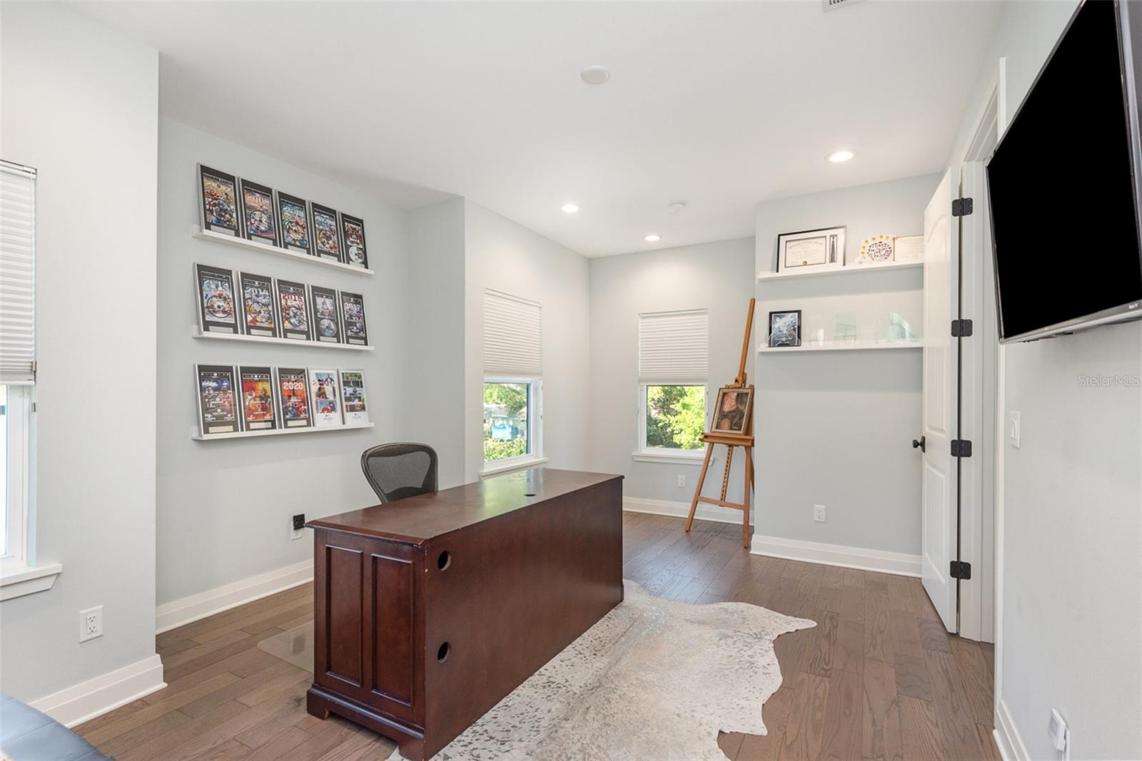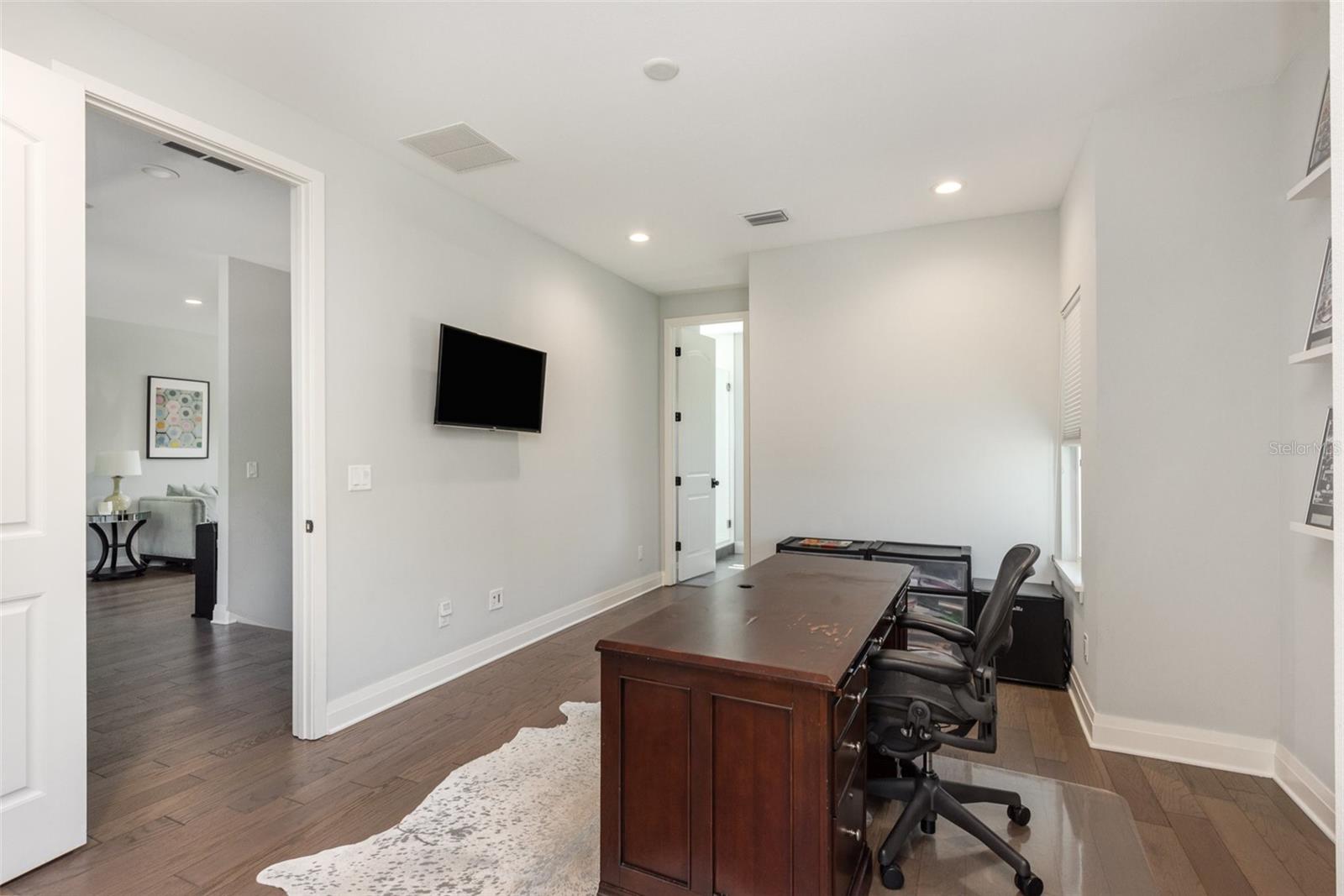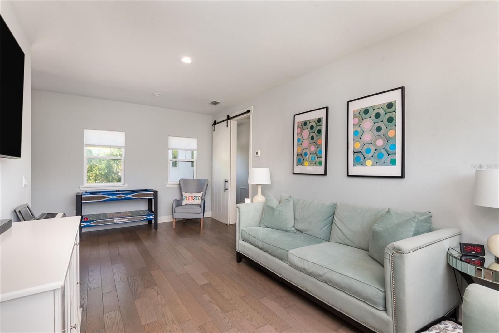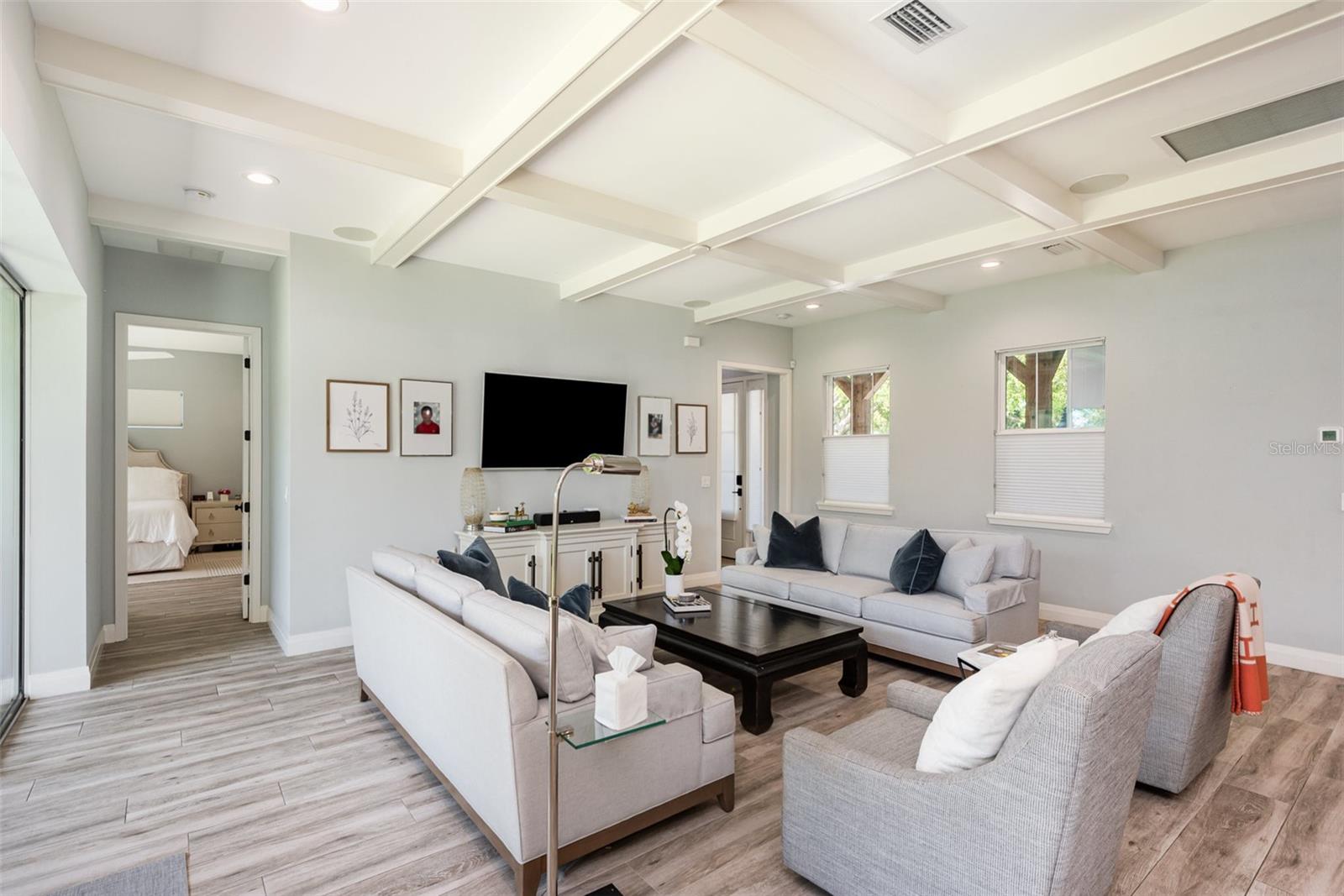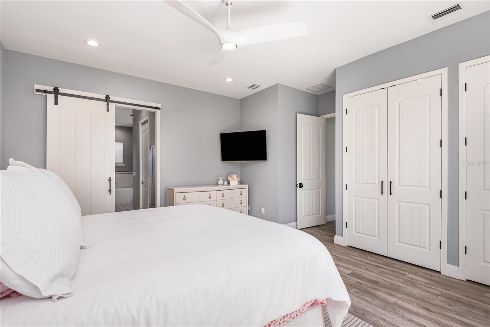 Welcome to 2536 Brookshire Ave, a spacious 4-bedroom, 3.5-bath modern farmhouse located in the heart of Winter Park. The open floor plan enhances connectivity throughout, with a first-floor primary suite featuring generous his and her closets. Designer lighting and plumbing fixtures, custom interior paint, 8-foot doors, and wood-like tile floors create a cohesive design. Enjoy additional space upstairs with a loft that has the potential to be converted to a 5th bedroom. All bedrooms are pre-wired for cable and CAT 6, with surround sound in the main living areas and speaker wiring on the back porch. The gourmet kitchen features custom white shaker cabinetry with soft-close doors and drawers, an oversized granite island, and designer pendant lighting. Stainless steel appliances, including an induction cooktop and refrigerator, complement the space. A built-in pantry and under-cabinet lighting with integrated outlets add functionality. The primary suite includes a walk-in shower enclosed in custom glass, a freestanding soaking tub, and dual solid wood vanities with ample storage. Smart technology features include a motorized retractable screen lanai, a Lutron smart exterior lighting system, a MyQ smart garage door opener, and a Schlage smart front door lock with coded entry access on all exterior doors. The home is wired for Ethernet, and a Ring doorbell adds security. The spacious garage offers remote access. Built for efficiency and durability, the home features foam-insulated block walls, Low-E windows, a fully fenced backyard, a sprinkler system, and a radiant barrier roof. Two 15 SEER AC units and a programmable thermostat provide climate control. Located within one of Winter Park’s top-rated school districts, this home is just minutes from Park Avenue’s upscale shopping, dining, and entertainment. Additionally, it is conveniently close to the Winter Park Racquet Club, Interlachen Country Club, and the YMCA. Enjoy nearby outdoor recreation at Ward Park, as well as wellness amenities at the Center for Health & Wellbeing.