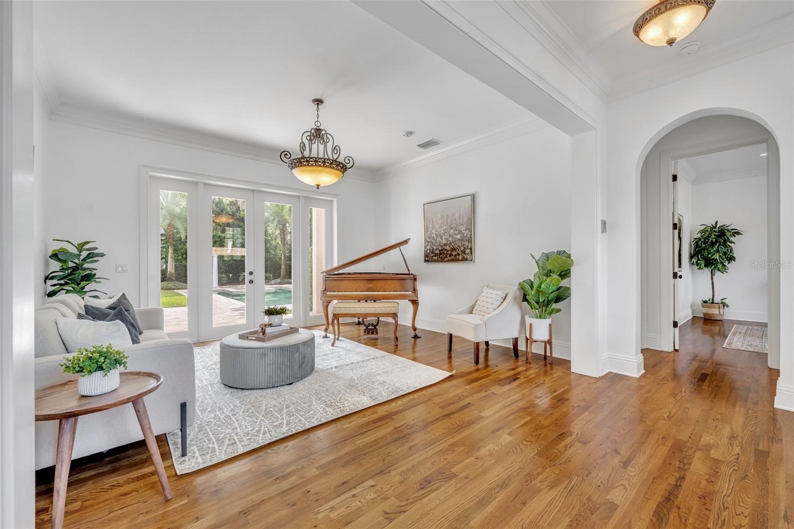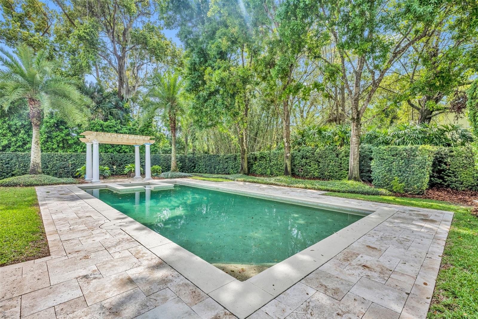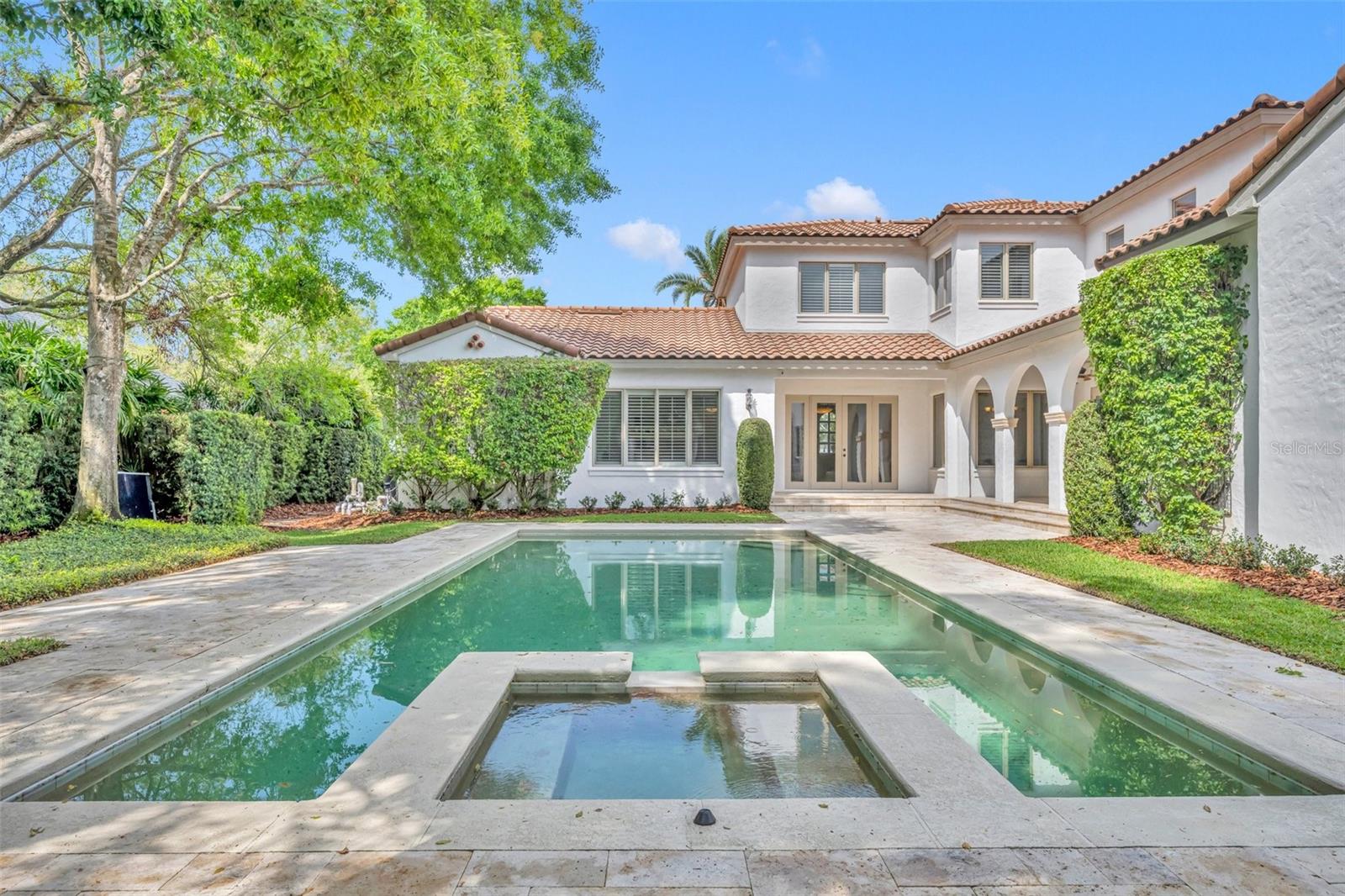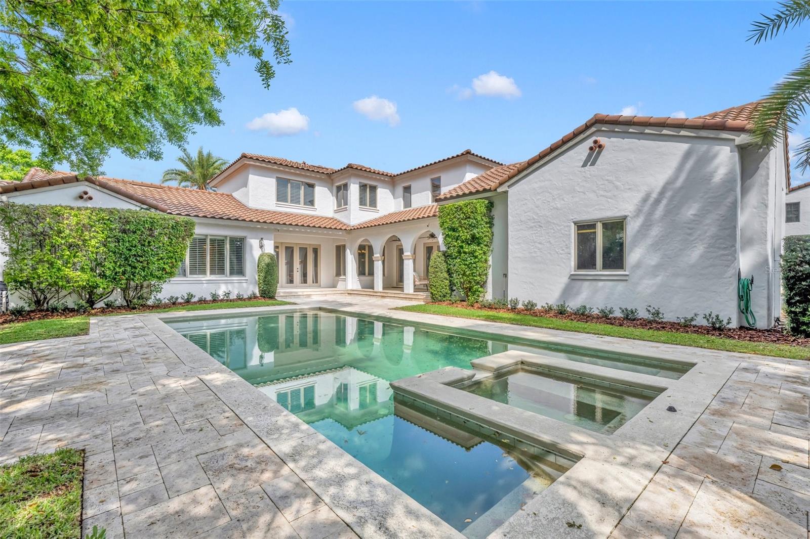 One or more photo(s) has been virtually staged. Nestled on a serene, brick-paved street in the heart of Winter Park, this elegant 5-bedroom, 3.2-bathroom pool home is situated on a stunning oversized lot. Custom-built in 2003, it offers a thoughtful floor plan that adapts beautifully to any lifestyle. From the moment you arrive, this home welcomes you with timeless charm and a sense of warmth. Inside, expansive windows, rich wood flooring, and exquisite millwork create an atmosphere of sophistication. Upon entering, you’re greeted by breathtaking views of the lushly landscaped backyard, complete with a sparkling pool and spa. The main level features a luxurious primary suite with picturesque views of the outdoor retreat. The primary bath is a sanctuary, offering dual sinks, a jacuzzi tub, a separate shower with dual showerheads, dual walk-in closets, and a private water closet. Adjacent to the suite is a dedicated home office, ideal for remote work or quiet study. Perfect for hosting, the spacious dining room is ready for memorable gatherings. The chef’s kitchen is a true centerpiece, outfitted with custom Busby cabinetry, GE Monogram appliances, a 6-burner gas cooktop with dual ovens, and a cozy breakfast nook that overlooks the backyard. The kitchen opens seamlessly to the family room, creating a welcoming space for everyday living and entertaining. French doors from the family room, living room, and primary bedroom provide effortless access to the backyard. The outdoor space is a true escape, featuring a sparkling pool and spa, lush greenery, and a custom summer kitchen, perfect for enjoying time with family and friends. Upstairs, four generously sized bedrooms are paired with Jack-and-Jill bathrooms, each offering dual sinks and a shared tub or shower. A cozy loft area adds flexibility to the second floor. Above the 3-car garage, a spacious bonus room doubles as a theater or playroom, and is equipped with additional storage space. Lovingly maintained by its original owner, this pristine home combines elegance and convenience, with walkability to Phelps Park, the YMCA, Interlachen Country Club, and Park Avenue. It’s a rare find in one of Winter Park’s most desirable neighborhoods.