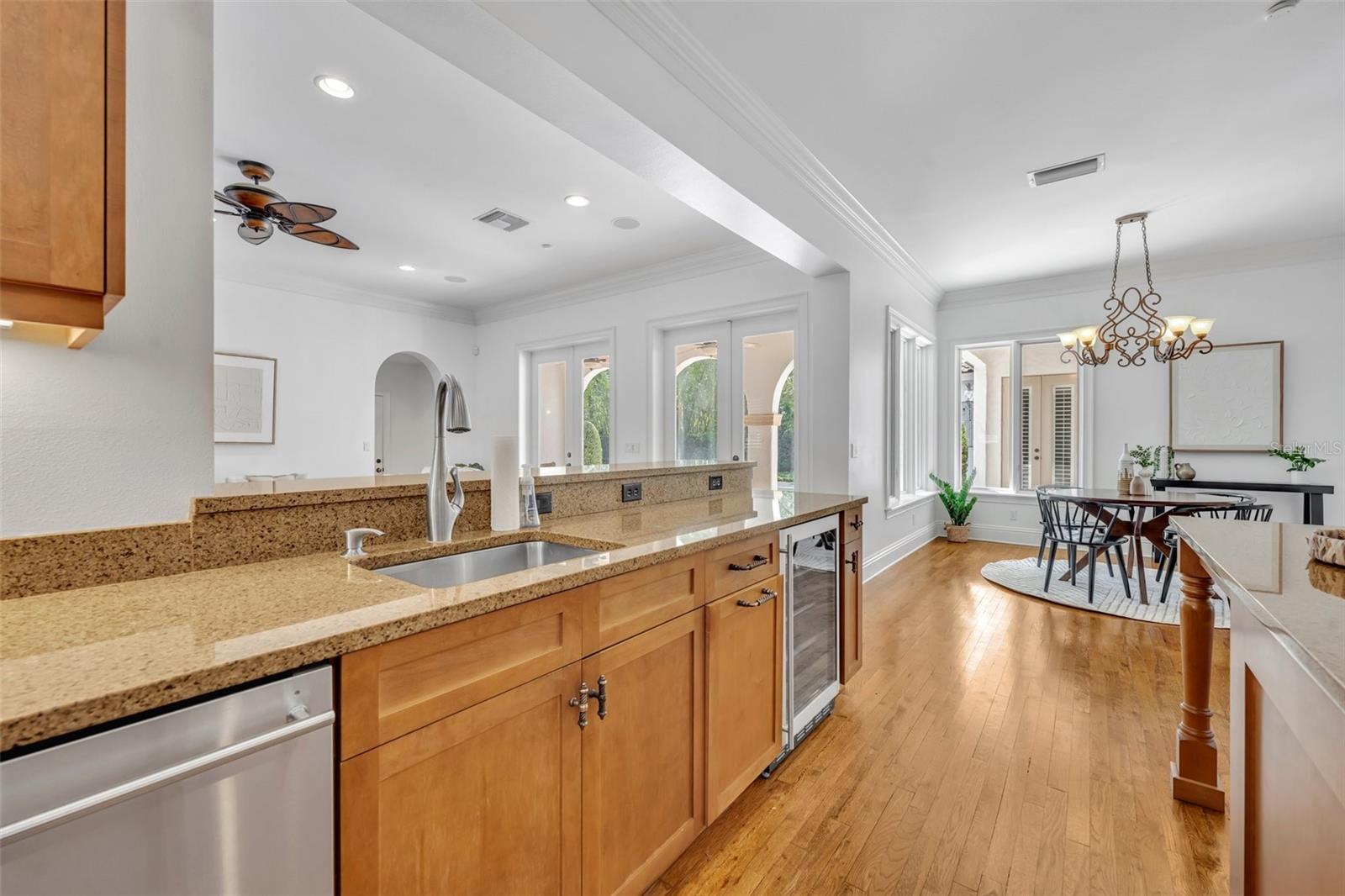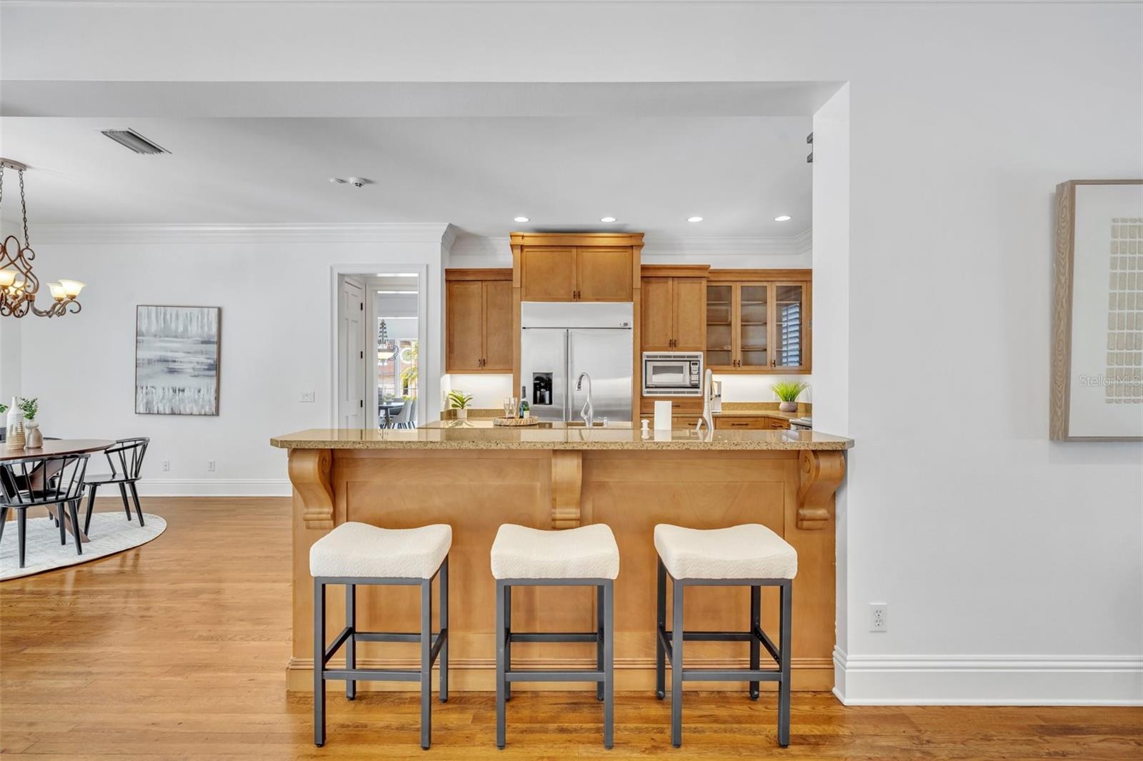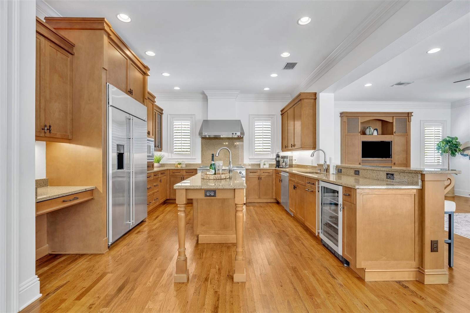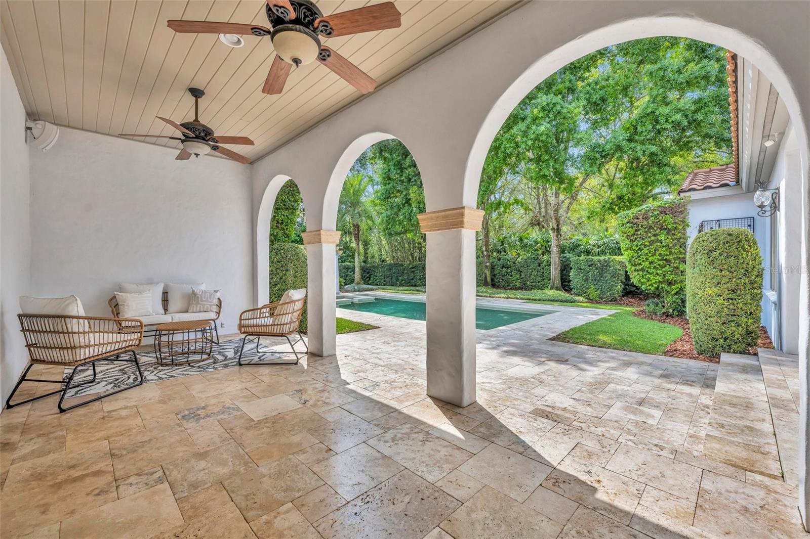 One or more photo(s) has been virtually staged. Nestled on a serene, brick-paved street in the heart of Winter Park, this elegant 5-bedroom, 3.2-bathroom pool home is situated on a stunning oversized lot. Custom-built in 2003, it offers a thoughtful floor plan that adapts beautifully to any lifestyle. From the moment you arrive, this home welcomes you with timeless charm and a sense of warmth. Inside, expansive windows, rich wood flooring, and exquisite millwork create an atmosphere of sophistication. Upon entering, you’re greeted by breathtaking views of the lushly landscaped backyard, complete with a sparkling pool and spa. The main level features a luxurious primary suite with picturesque views of the outdoor retreat. The primary bath is a sanctuary, offering dual sinks, a jacuzzi tub, a separate shower with dual showerheads, dual walk-in closets, and a private water closet. Adjacent to the suite is a dedicated home office, ideal for remote work or quiet study. Perfect for hosting, the spacious dining room is ready for memorable gatherings. The chef’s kitchen is a true centerpiece, outfitted with custom Busby cabinetry, GE Monogram appliances, a 6-burner gas cooktop with dual ovens, and a cozy breakfast nook that overlooks the backyard. The kitchen opens seamlessly to the family room, creating a welcoming space for everyday living and entertaining. French doors from the family room, living room, and primary bedroom provide effortless access to the backyard. The outdoor space is a true escape, featuring a sparkling pool and spa, lush greenery, and a custom summer kitchen, perfect for enjoying time with family and friends. Upstairs, four generously sized bedrooms are paired with Jack-and-Jill bathrooms, each offering dual sinks and a shared tub or shower. A cozy loft area adds flexibility to the second floor. Above the 3-car garage, a spacious bonus room doubles as a theater or playroom, and is equipped with additional storage space. Lovingly maintained by its original owner, this pristine home combines elegance and convenience, with walkability to Phelps Park, the YMCA, Interlachen Country Club, and Park Avenue. It’s a rare find in one of Winter Park’s most desirable neighborhoods.