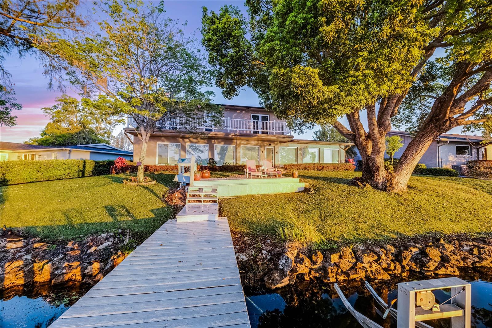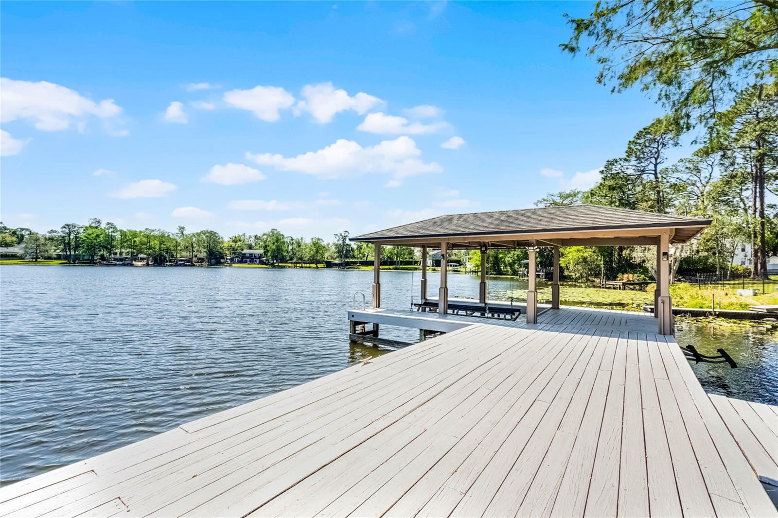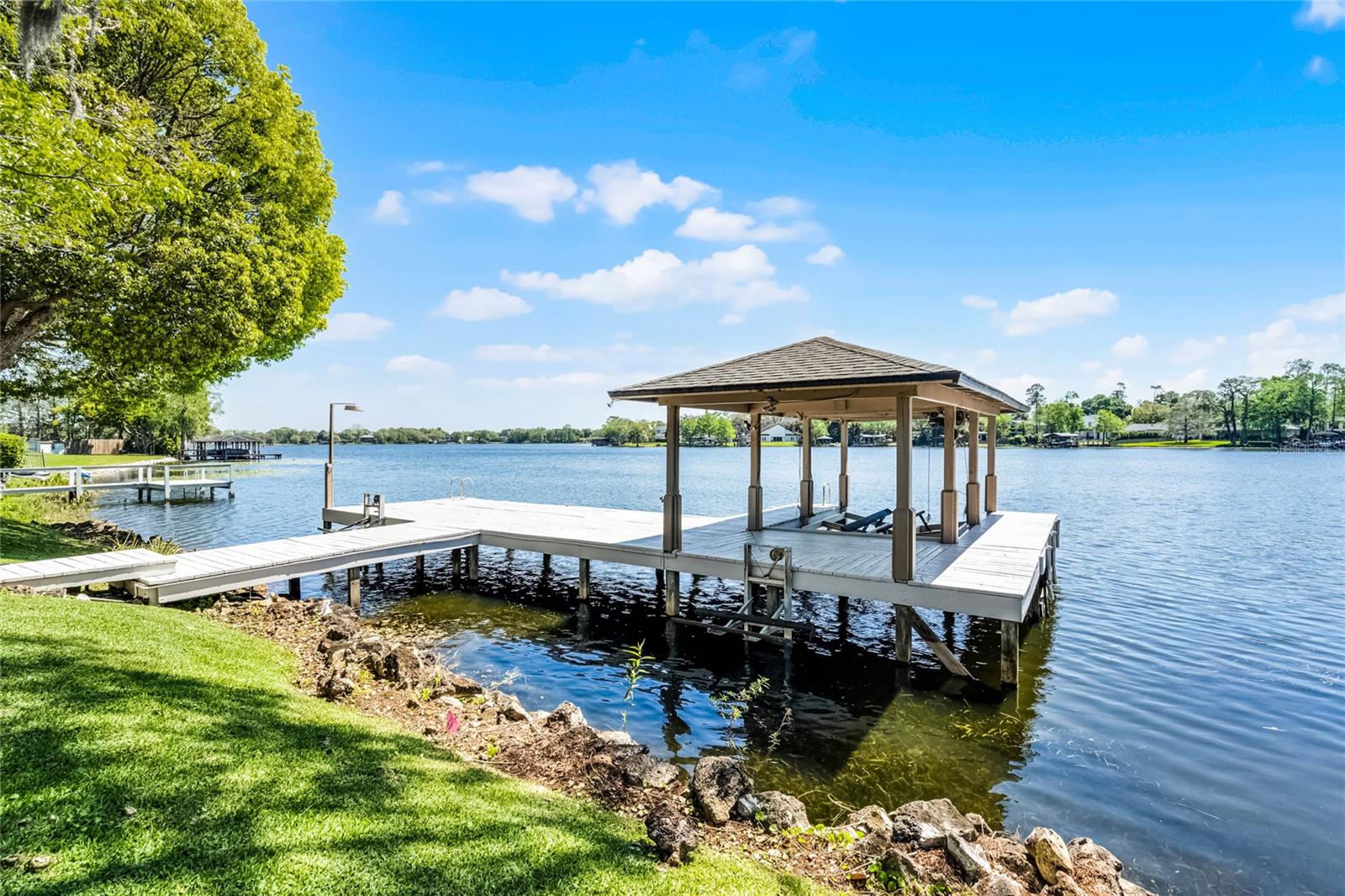 Spectacular lakefront living on Lake Waunatta! This beautifully appointed five-bedroom, three-bath home offers 3,858 square feet of spacious living, set on approximately 98 feet of serene lake frontage. Enjoy stunning sunrises and panoramic lake views from nearly every room. Recent upgrades include a new roof in 2024 and new double-pane, tinted, high wind-resistant windows installed throughout in 2023–2024, enhancing energy efficiency and storm protection. The renovated kitchen features abundant cabinetry, an oversized island and a large pantry, while the formal dining room and expansive family room with built-ins and a wet bar provide ideal spaces for entertaining. A sun-drenched Florida room stretches across the back of the home, showcasing large picture windows that bring the lake right to your doorstep. The first floor includes a private bedroom, full bath and dedicated office. Upstairs, the luxurious primary suite with Malaccan Cherry hardwood floors offers breathtaking lake views and opens to a large private deck through two sets of French doors. Three additional upstairs bedrooms provide plenty of room for family or guests. Closets throughout the home offer ample storage space. Step outside to enjoy the ultimate lakefront lifestyle with a covered boat dock and lift, ideal for boating, paddleboarding, fishing or simply relaxing by the water. In sought-after Lake Waunatta Village with convenient access to downtown Orlando, Winter Park, top-rated schools and major roadways. Complete with a spacious two-car garage, this home is the ideal blend of comfort, elegance and waterfront charm.