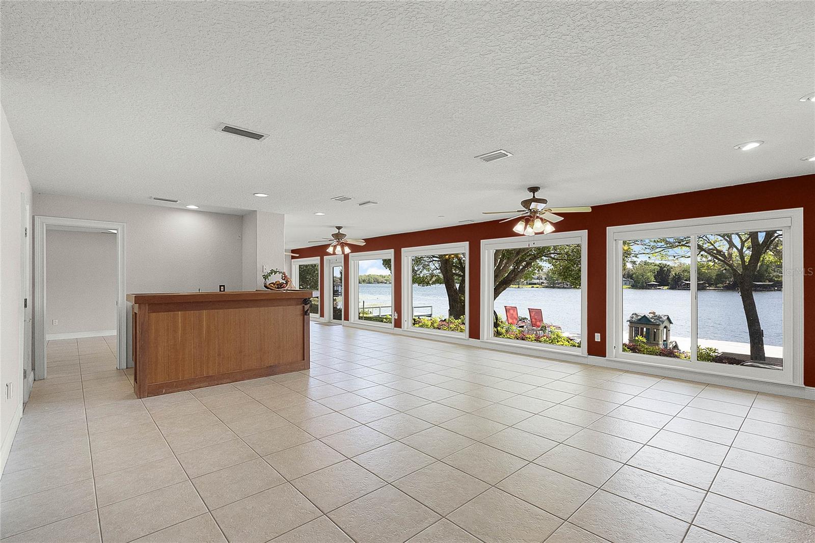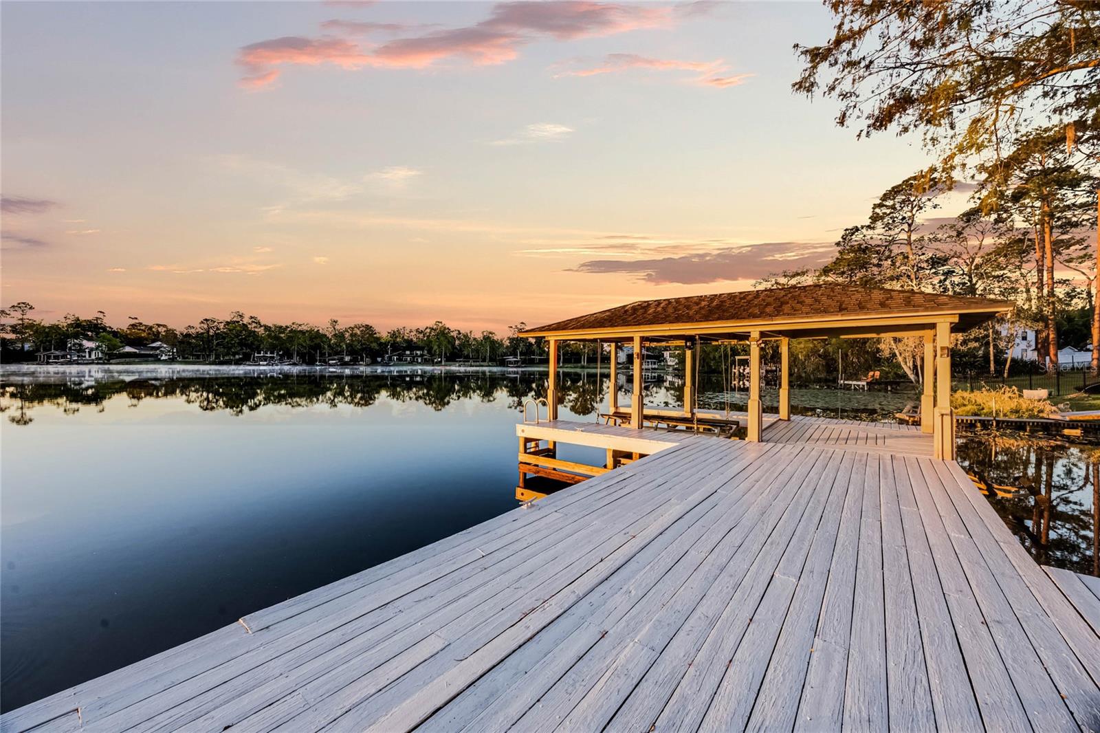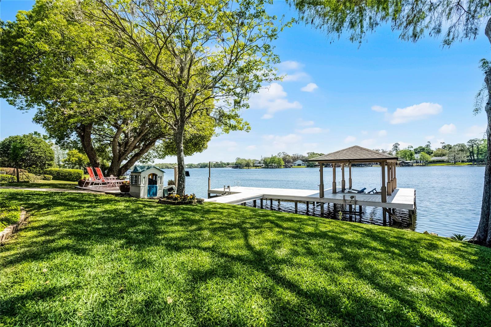 Spectacular lakefront living on Lake Waunatta! This beautifully appointed five-bedroom, three-bath home offers 3,858 square feet of spacious living, set on approximately 98 feet of serene lake frontage. Enjoy stunning sunrises and panoramic lake views from nearly every room. Recent upgrades include a new roof in 2024 and new double-pane, tinted, high wind-resistant windows installed throughout in 2023–2024, enhancing energy efficiency and storm protection. The renovated kitchen features abundant cabinetry, an oversized island and a large pantry, while the formal dining room and expansive family room with built-ins and a wet bar provide ideal spaces for entertaining. A sun-drenched Florida room stretches across the back of the home, showcasing large picture windows that bring the lake right to your doorstep. The first floor includes a private bedroom, full bath and dedicated office. Upstairs, the luxurious primary suite with Malaccan Cherry hardwood floors offers breathtaking lake views and opens to a large private deck through two sets of French doors. Three additional upstairs bedrooms provide plenty of room for family or guests. Closets throughout the home offer ample storage space. Step outside to enjoy the ultimate lakefront lifestyle with a covered boat dock and lift, ideal for boating, paddleboarding, fishing or simply relaxing by the water. In sought-after Lake Waunatta Village with convenient access to downtown Orlando, Winter Park, top-rated schools and major roadways. Complete with a spacious two-car garage, this home is the ideal blend of comfort, elegance and waterfront charm.