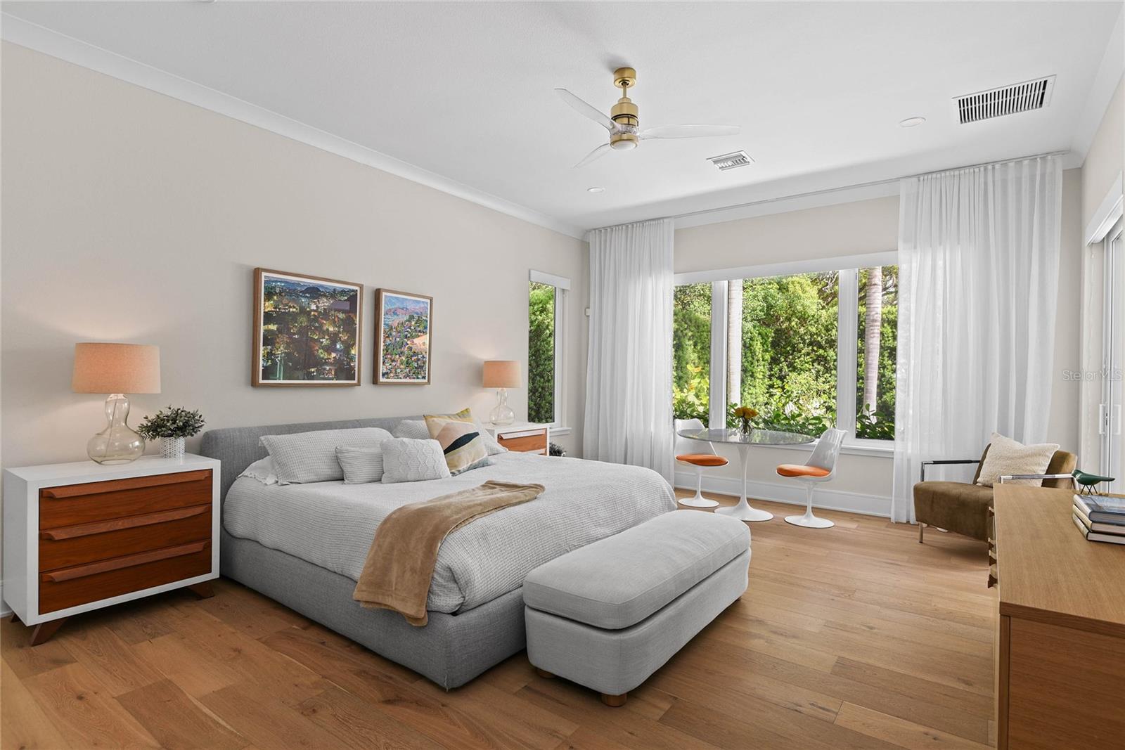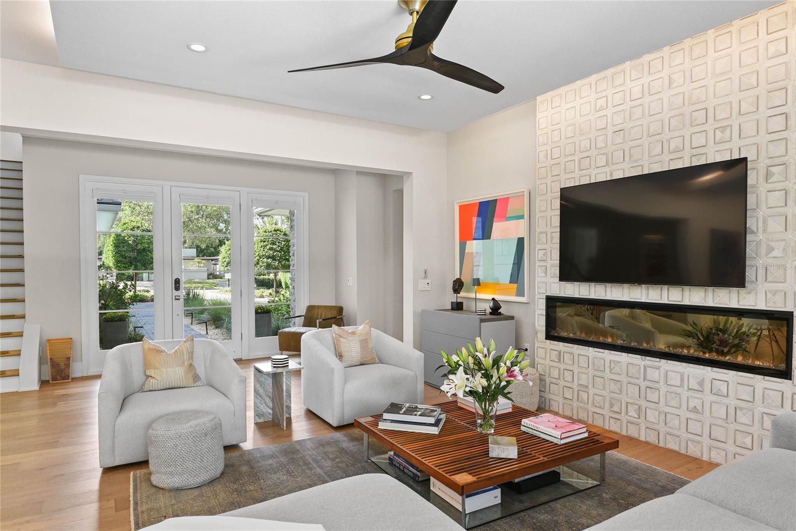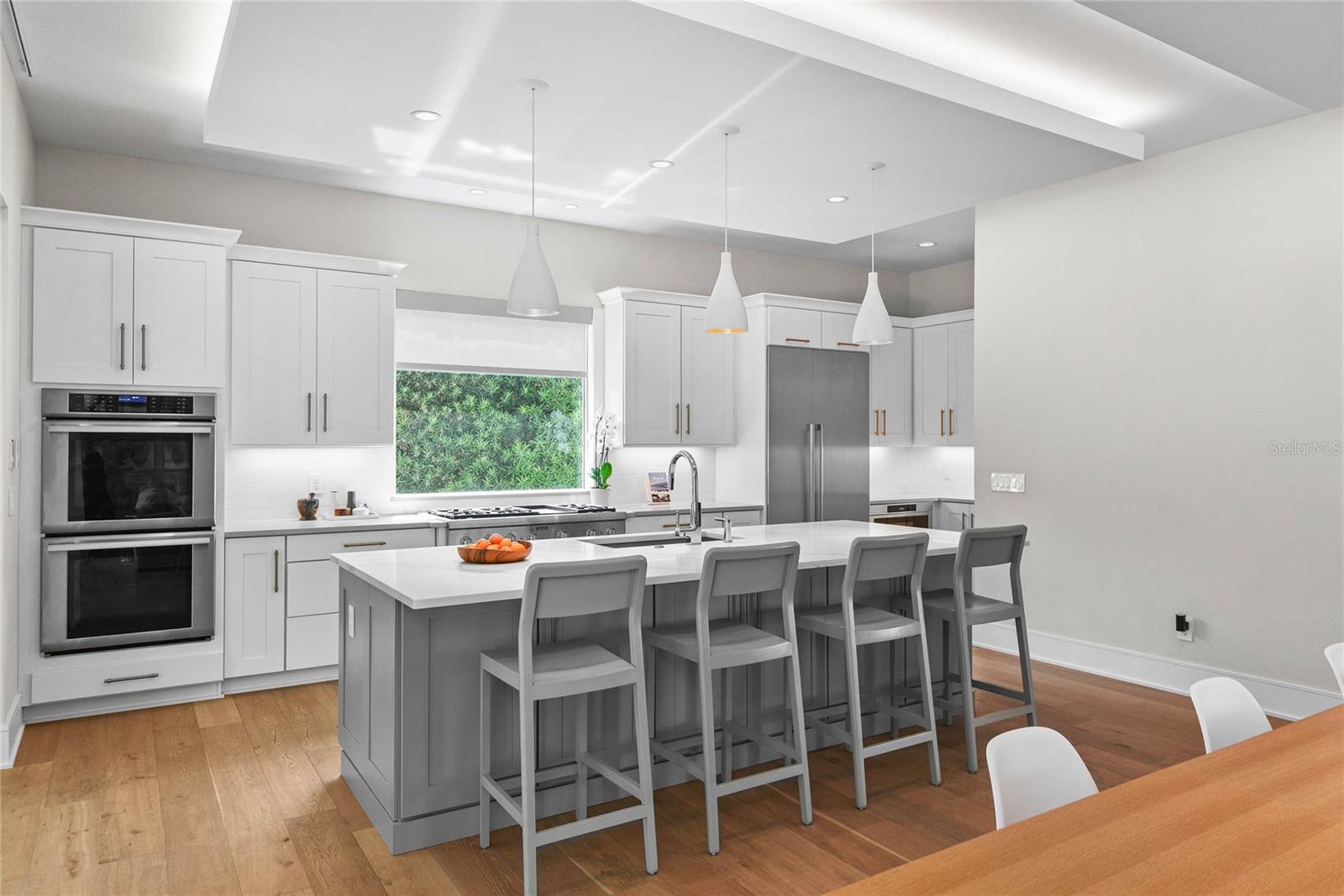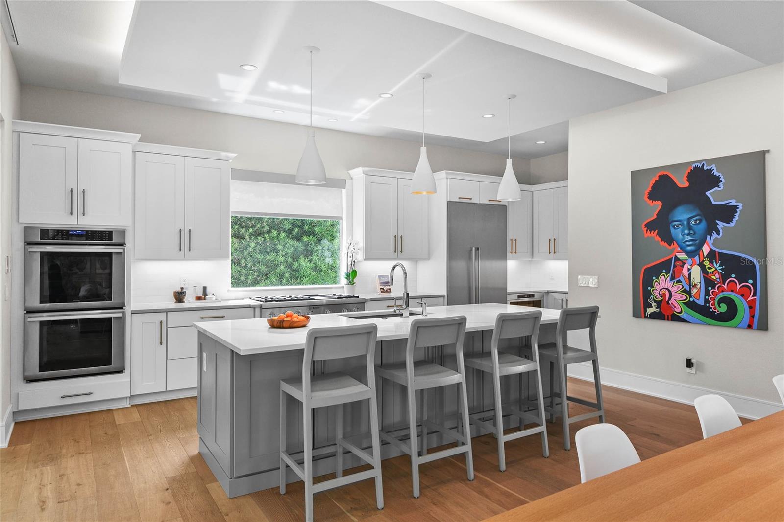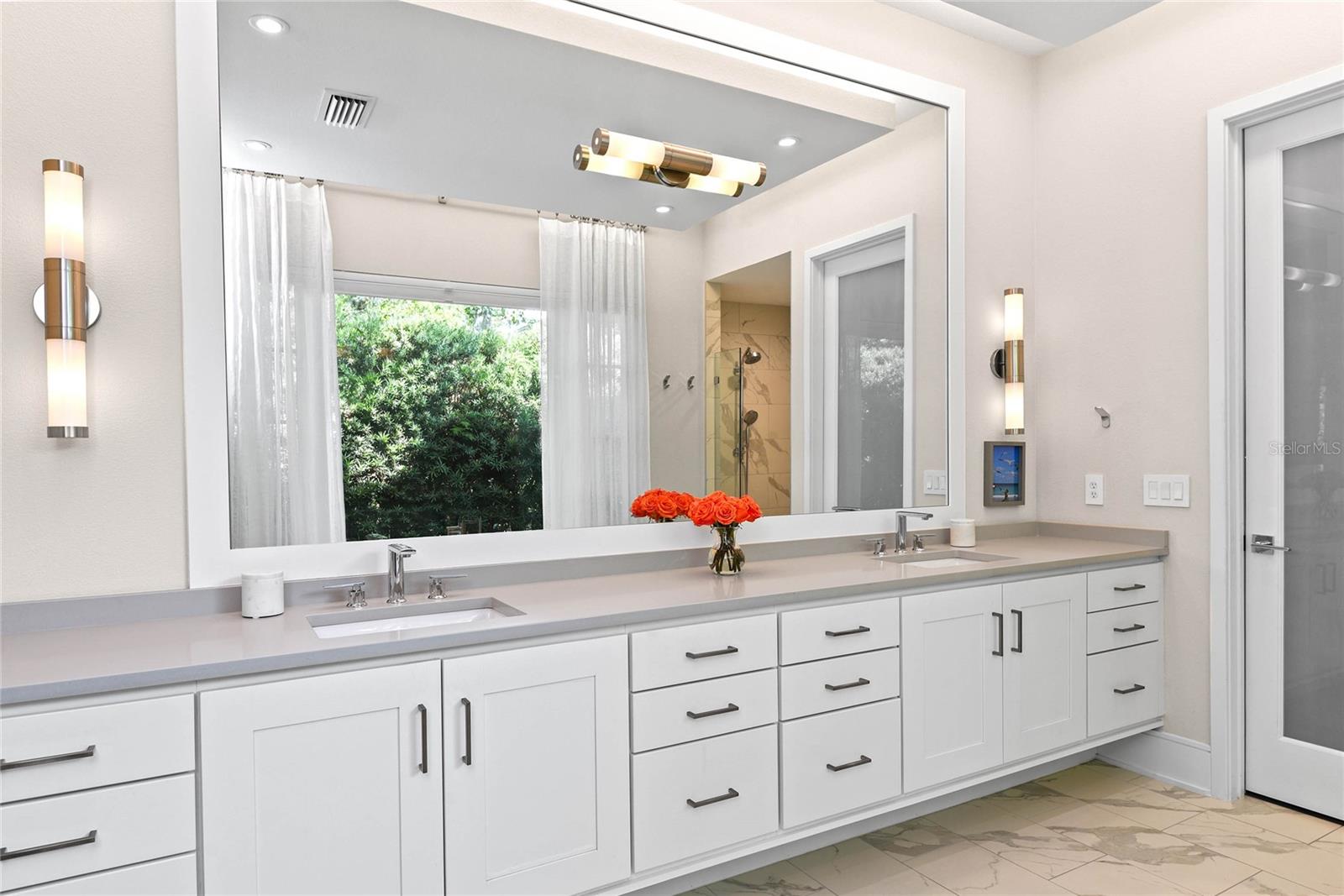 Welcome to a one-of-a-kind, custom-designed residence offering the perfect blend of modern sophistication, thoughtful functionality, and resort-style amenities. Designed by Origins Residential Design and meticulously constructed by Native Homes, this 5-bedroom, 5.5-bathroom showplace is located in one of Winter Park’s most sought-after neighborhoods—just minutes from Park Avenue, Baldwin Park, and top-rated schools. This exceptional home was built in 2019 and features a flexible, open-concept layout that exudes comfort and luxury. The spacious main living areas are drenched in natural light and designed for seamless entertaining and everyday ease. The split-bedroom floorplan offers five generously sized en-suite bedrooms, each with its own private bath—no shared walls between any bedrooms ensure total peace and privacy for all. Two bedrooms are located on the first floor, including the lavish downstairs primary suite with a spa-inspired bathroom featuring a soaking tub, oversized dual vanities, frameless glass shower, and an enormous custom-designed walk-in closet. The heart of the home is the chef’s dream kitchen, masterfully laid out with distinct zones for cooking and gathering. Highlights include a gas cooktop, Thermador appliances, huge quartz-topped island, 42” cabinets, a cozy coffee and juicing nook, an oversized walk-in pantry, and a striking design that marries stainless steel with warm brass accents. Just off the kitchen, a separate beverage zone includes a built-in wine fridge, making entertaining effortless. No detail has been overlooked—from the White Oak hardwood flooring and marble inlay floors, to the suspended ceilings, solid Shaker-style interior doors, 7” milled baseboards, and designer light fixtures throughout. Modern conveniences include pre-wired surround sound, recessed lighting, dimmable lighting with frameless switch plates, custom framed mirrors, new Kohler bath fixtures, and a whole-house water filtration system. Restoration Hardware sheer drapes ($20K), remote-operated Shade Store treatments Enjoy seamless indoor-outdoor living in the resort-style backyard retreat. The ultra high-end, zero-edge saltwater pool and spa feature Aqua Pearl interior finish, glass mosaics, and are fully smartphone-controlled, including lighting, jets, and both gas spa and pool heaters. Entertain under the covered outdoor patio complete with an Artisan grill, new neutral-toned accent walls, and outdoor kitchen—all surrounded by sandblasted Carrara marble pavers, remote-controlled vanishing screens, and a full privacy fence with Podocarpus hedge. Extensive professional landscaping includes fresh sod, tilled and leveled topsoil, blooming flower bushes, and river rock side paths. The backyard also features new turf, a dedicated dog run, and completely upgraded irrigation for optimal efficiency. Oversized 2-car garage, tile roof, gutter guards, security system with cameras, new washer/dryer, and professional landscaping with upgraded irrigation. Quiet zone near hospitals, attracting medical professionals. Electrical lines to be buried within few months and very strong internet. Minutes to Baldwin Park, Park Avenue, restaurants, shopping, Wellness Center, and scenic trails. Zoned for top-rated Winter Park schools (Brookshire, Glenridge, Winter Park High) and near private schools- Lake Highland Prep, Park Maitland, Geneva School and more