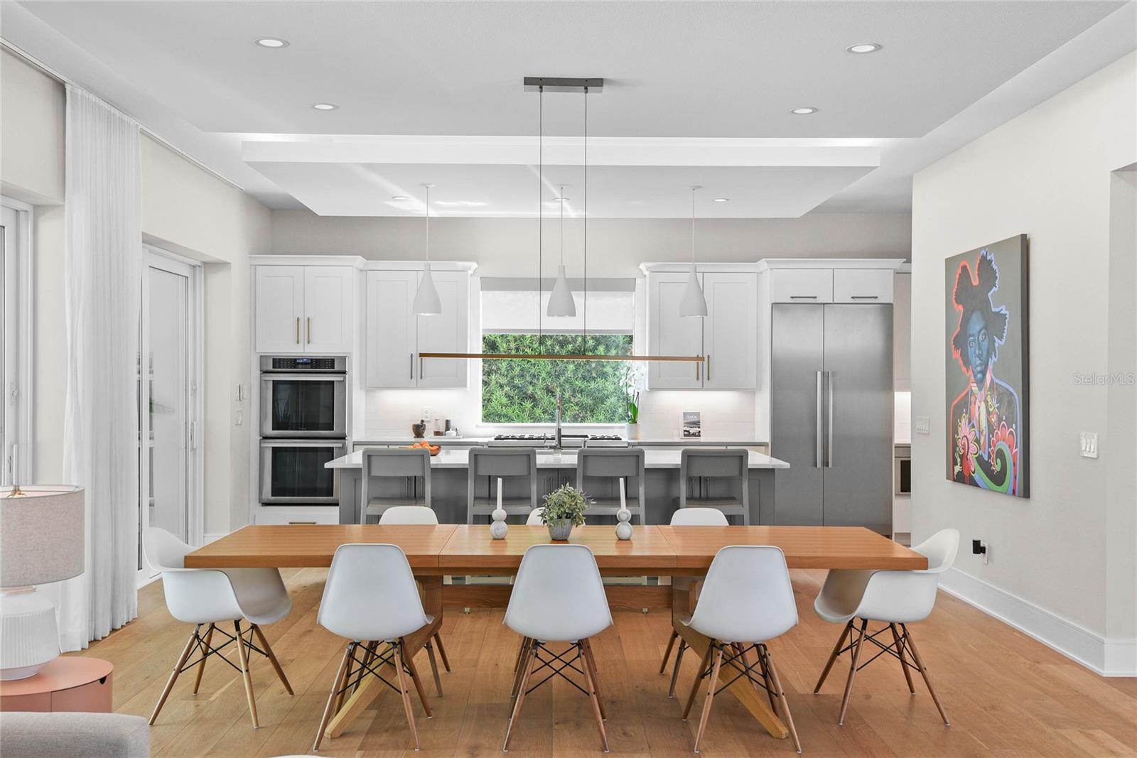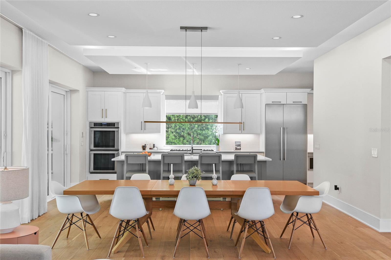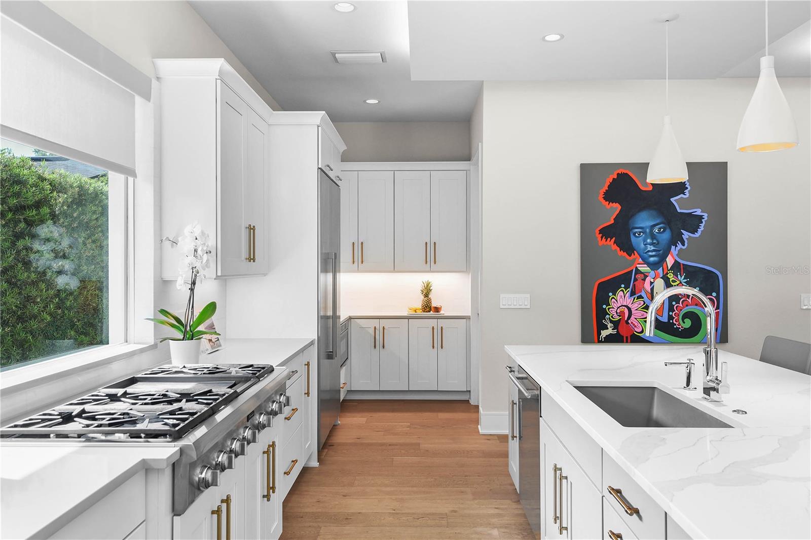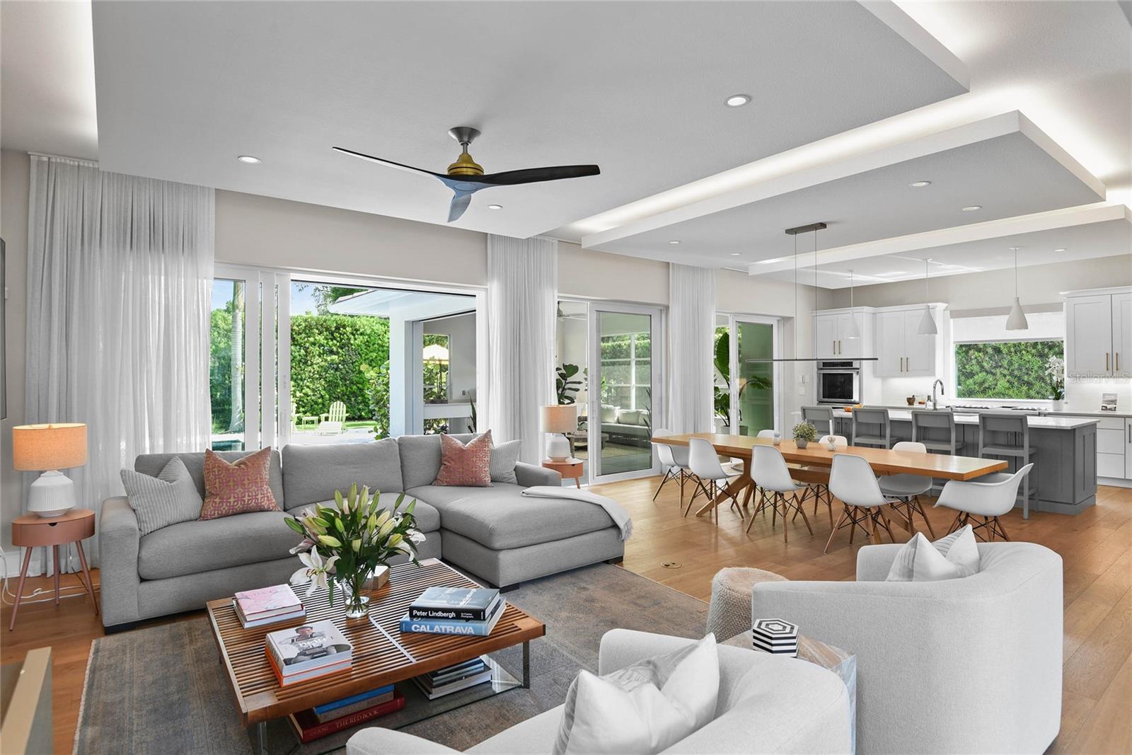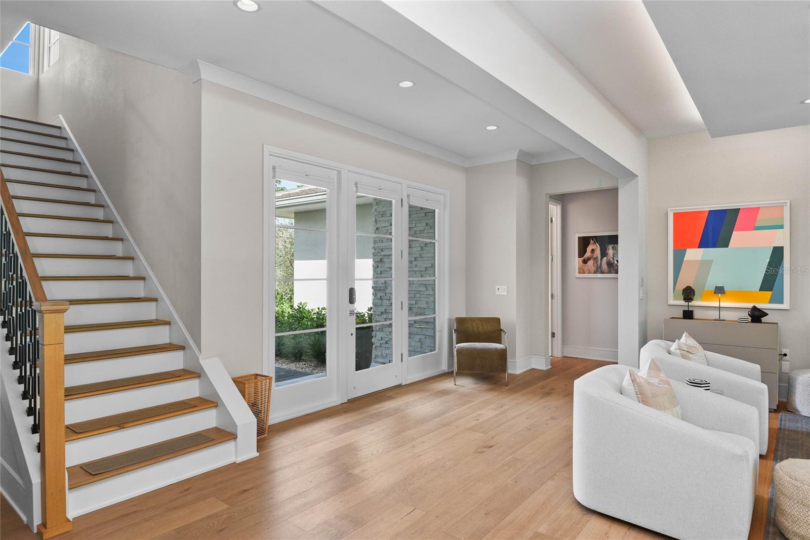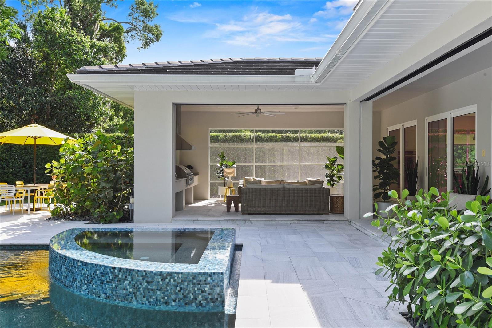 Welcome to a one-of-a-kind, custom-designed residence offering the perfect blend of modern sophistication, thoughtful functionality, and resort-style amenities. Designed by Origins Residential Design and meticulously constructed by Native Homes, this 5-bedroom, 5.5-bathroom showplace is located in one of Winter Park’s most sought-after neighborhoods—just minutes from Park Avenue, Baldwin Park, and top-rated schools. This exceptional home was built in 2019 and features a flexible, open-concept layout that exudes comfort and luxury. The spacious main living areas are drenched in natural light and designed for seamless entertaining and everyday ease. The split-bedroom floorplan offers five generously sized en-suite bedrooms, each with its own private bath—no shared walls between any bedrooms ensure total peace and privacy for all. Two bedrooms are located on the first floor, including the lavish downstairs primary suite with a spa-inspired bathroom featuring a soaking tub, oversized dual vanities, frameless glass shower, and an enormous custom-designed walk-in closet. The heart of the home is the chef’s dream kitchen, masterfully laid out with distinct zones for cooking and gathering. Highlights include a gas cooktop, Thermador appliances, huge quartz-topped island, 42” cabinets, a cozy coffee and juicing nook, an oversized walk-in pantry, and a striking design that marries stainless steel with warm brass accents. Just off the kitchen, a separate beverage zone includes a built-in wine fridge, making entertaining effortless. No detail has been overlooked—from the White Oak hardwood flooring and marble inlay floors, to the suspended ceilings, solid Shaker-style interior doors, 7” milled baseboards, and designer light fixtures throughout. Modern conveniences include pre-wired surround sound, recessed lighting, dimmable lighting with frameless switch plates, custom framed mirrors, new Kohler bath fixtures, and a whole-house water filtration system. Restoration Hardware sheer drapes ($20K), remote-operated Shade Store treatments Enjoy seamless indoor-outdoor living in the resort-style backyard retreat. The ultra high-end, zero-edge saltwater pool and spa feature Aqua Pearl interior finish, glass mosaics, and are fully smartphone-controlled, including lighting, jets, and both gas spa and pool heaters. Entertain under the covered outdoor patio complete with an Artisan grill, new neutral-toned accent walls, and outdoor kitchen—all surrounded by sandblasted Carrara marble pavers, remote-controlled vanishing screens, and a full privacy fence with Podocarpus hedge. Extensive professional landscaping includes fresh sod, tilled and leveled topsoil, blooming flower bushes, and river rock side paths. The backyard also features new turf, a dedicated dog run, and completely upgraded irrigation for optimal efficiency. Oversized 2-car garage, tile roof, gutter guards, security system with cameras, new washer/dryer, and professional landscaping with upgraded irrigation. Quiet zone near hospitals, attracting medical professionals. Electrical lines to be buried within few months and very strong internet. Minutes to Baldwin Park, Park Avenue, restaurants, shopping, Wellness Center, and scenic trails. Zoned for top-rated Winter Park schools (Brookshire, Glenridge, Winter Park High) and near private schools- Lake Highland Prep, Park Maitland, Geneva School and more