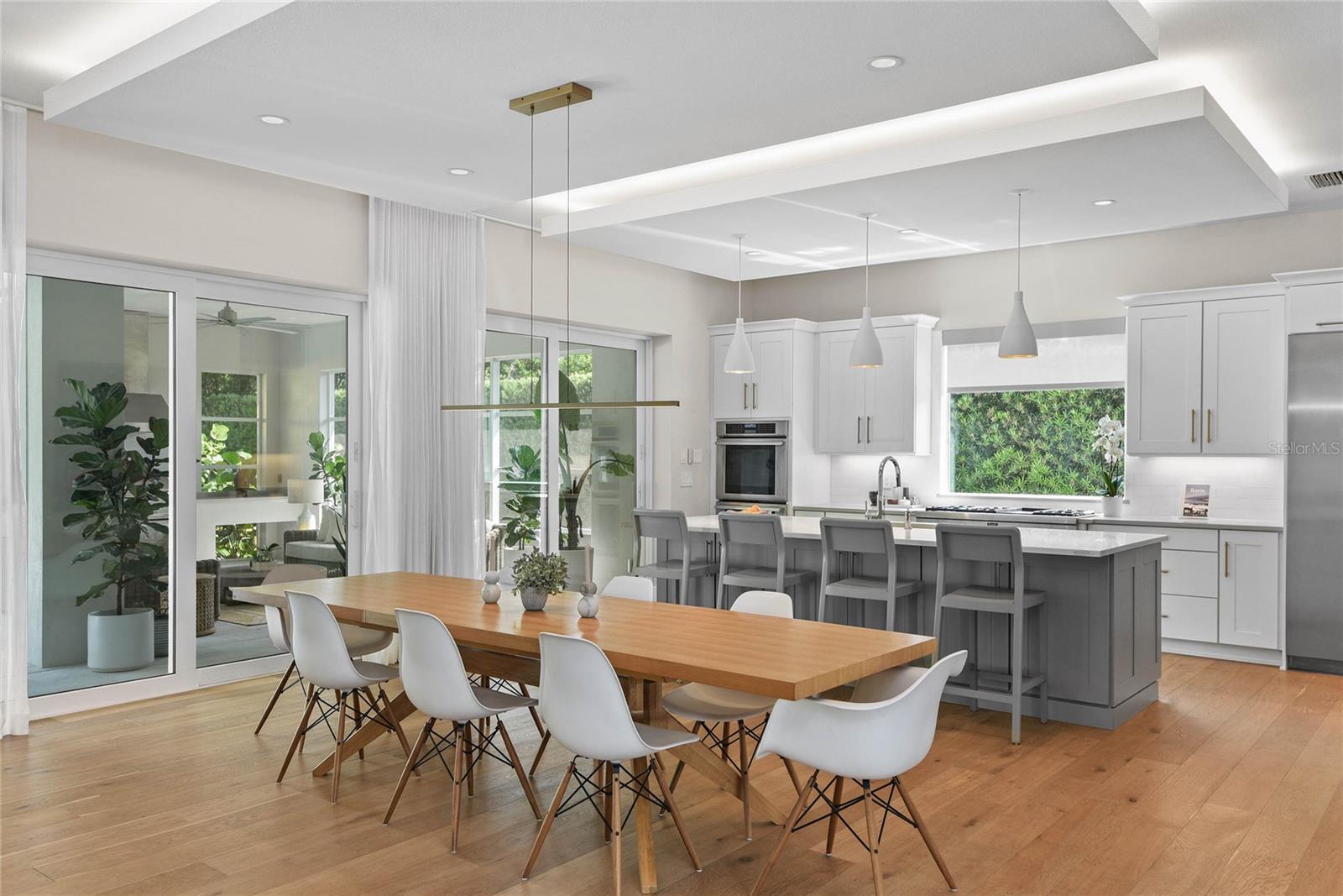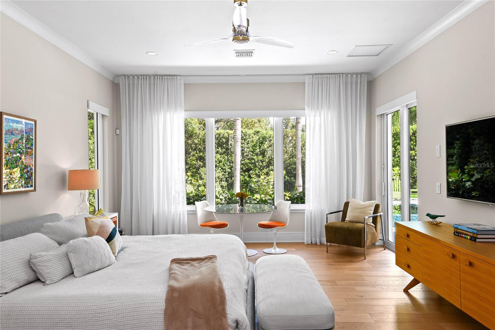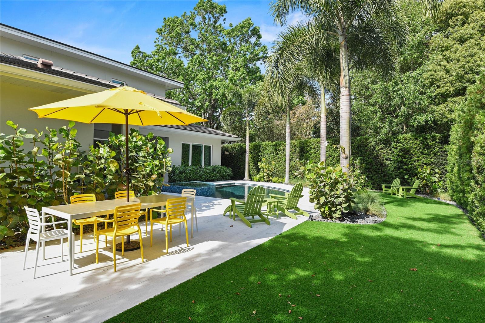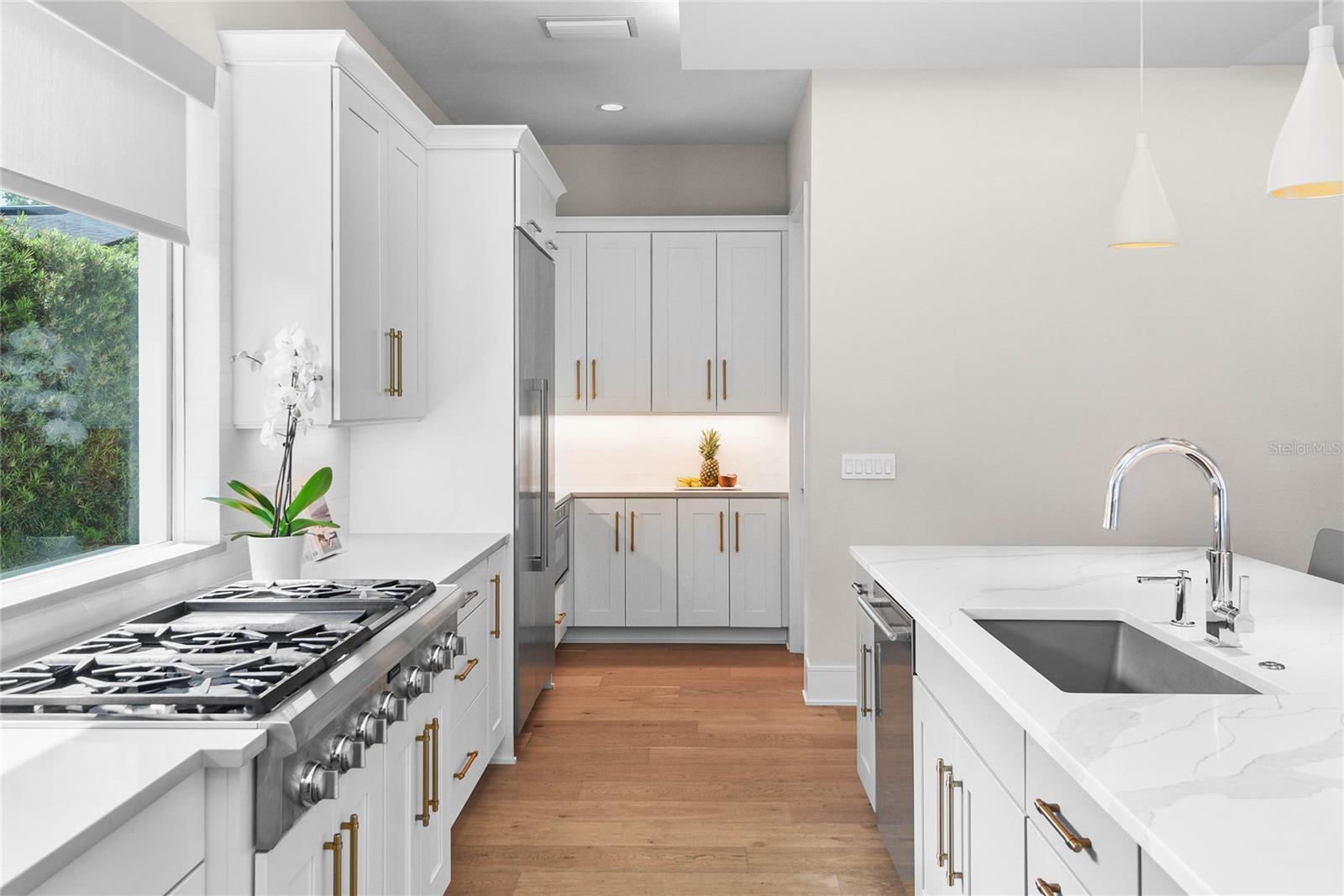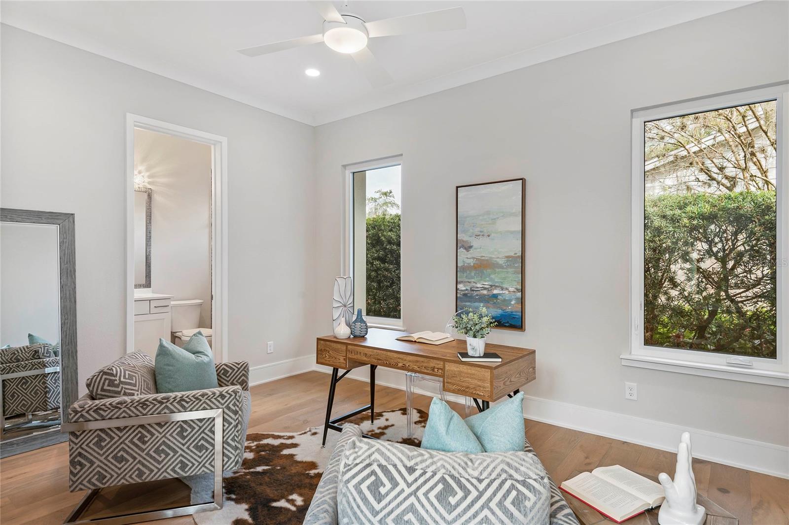 Welcome to a one-of-a-kind, custom-designed residence offering the perfect blend of modern sophistication, thoughtful functionality, and resort-style amenities. Designed by Origins Residential Design and meticulously constructed by Native Homes, this 5-bedroom, 5.5-bathroom showplace is located in one of Winter Park’s most sought-after neighborhoods—just minutes from Park Avenue, Baldwin Park, and top-rated schools. This exceptional home was built in 2019 and features a flexible, open-concept layout that exudes comfort and luxury. The spacious main living areas are drenched in natural light and designed for seamless entertaining and everyday ease. The split-bedroom floorplan offers five generously sized en-suite bedrooms, each with its own private bath—no shared walls between any bedrooms ensure total peace and privacy for all. Two bedrooms are located on the first floor, including the lavish downstairs primary suite with a spa-inspired bathroom featuring a soaking tub, oversized dual vanities, frameless glass shower, and an enormous custom-designed walk-in closet. The heart of the home is the chef’s dream kitchen, masterfully laid out with distinct zones for cooking and gathering. Highlights include a gas cooktop, Thermador appliances, huge quartz-topped island, 42” cabinets, a cozy coffee and juicing nook, an oversized walk-in pantry, and a striking design that marries stainless steel with warm brass accents. Just off the kitchen, a separate beverage zone includes a built-in wine fridge, making entertaining effortless. No detail has been overlooked—from the White Oak hardwood flooring and marble inlay floors, to the suspended ceilings, solid Shaker-style interior doors, 7” milled baseboards, and designer light fixtures throughout. Modern conveniences include pre-wired surround sound, recessed lighting, dimmable lighting with frameless switch plates, custom framed mirrors, new Kohler bath fixtures, and a whole-house water filtration system. Restoration Hardware sheer drapes ($20K), remote-operated Shade Store treatments Enjoy seamless indoor-outdoor living in the resort-style backyard retreat. The ultra high-end, zero-edge saltwater pool and spa feature Aqua Pearl interior finish, glass mosaics, and are fully smartphone-controlled, including lighting, jets, and both gas spa and pool heaters. Entertain under the covered outdoor patio complete with an Artisan grill, new neutral-toned accent walls, and outdoor kitchen—all surrounded by sandblasted Carrara marble pavers, remote-controlled vanishing screens, and a full privacy fence with Podocarpus hedge. Extensive professional landscaping includes fresh sod, tilled and leveled topsoil, blooming flower bushes, and river rock side paths. The backyard also features new turf, a dedicated dog run, and completely upgraded irrigation for optimal efficiency. Oversized 2-car garage, tile roof, gutter guards, security system with cameras, new washer/dryer, and professional landscaping with upgraded irrigation. Quiet zone near hospitals, attracting medical professionals. Electrical lines to be buried within few months and very strong internet. Minutes to Baldwin Park, Park Avenue, restaurants, shopping, Wellness Center, and scenic trails. Zoned for top-rated Winter Park schools (Brookshire, Glenridge, Winter Park High) and near private schools- Lake Highland Prep, Park Maitland, Geneva School and more