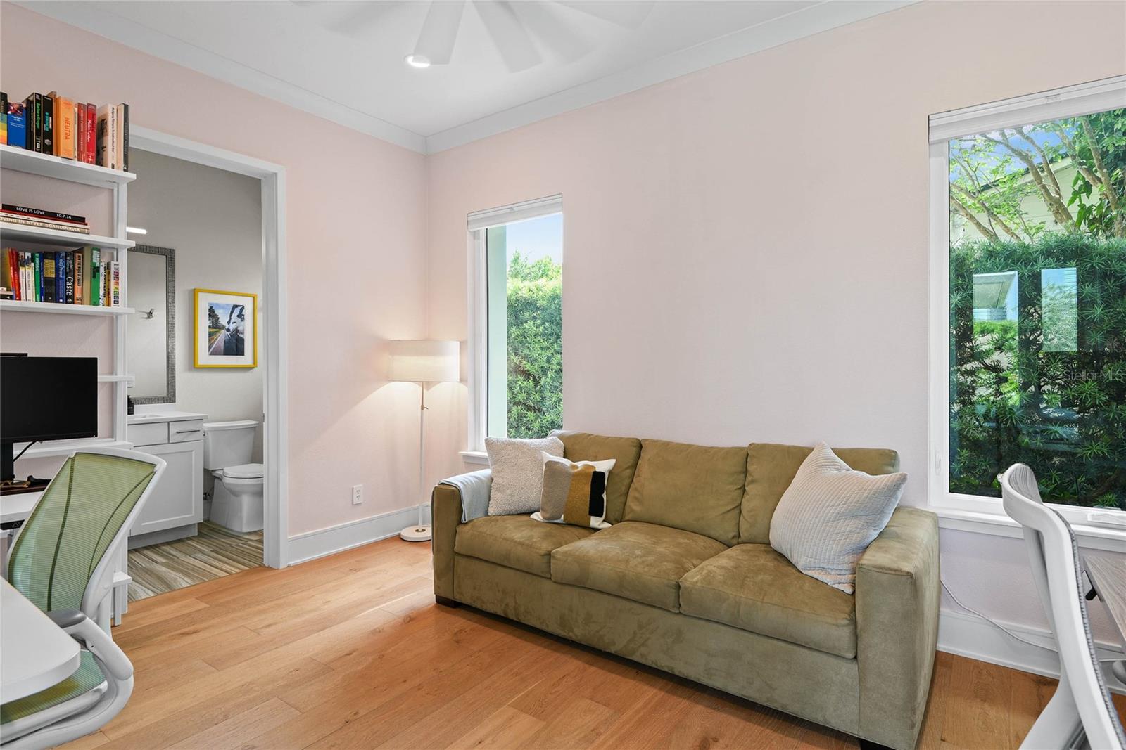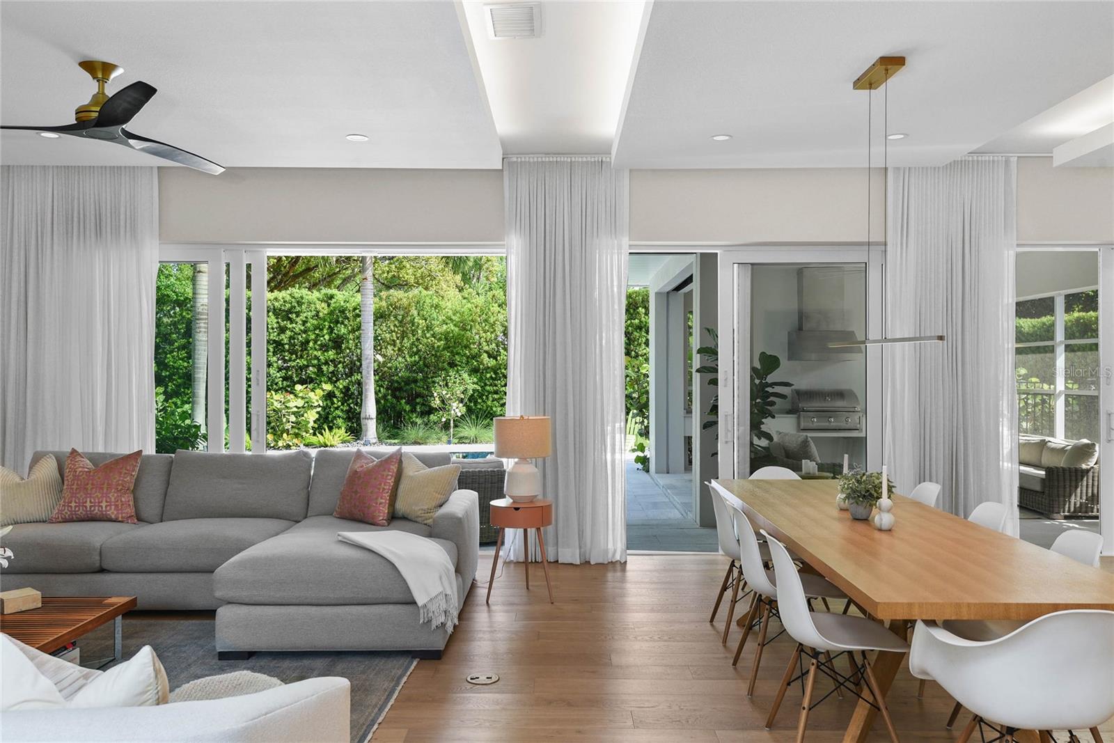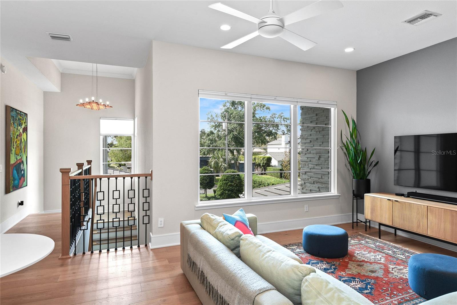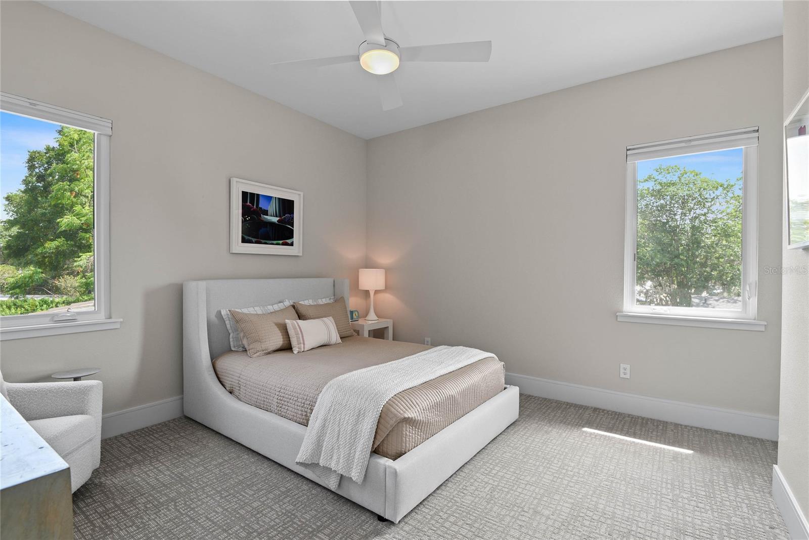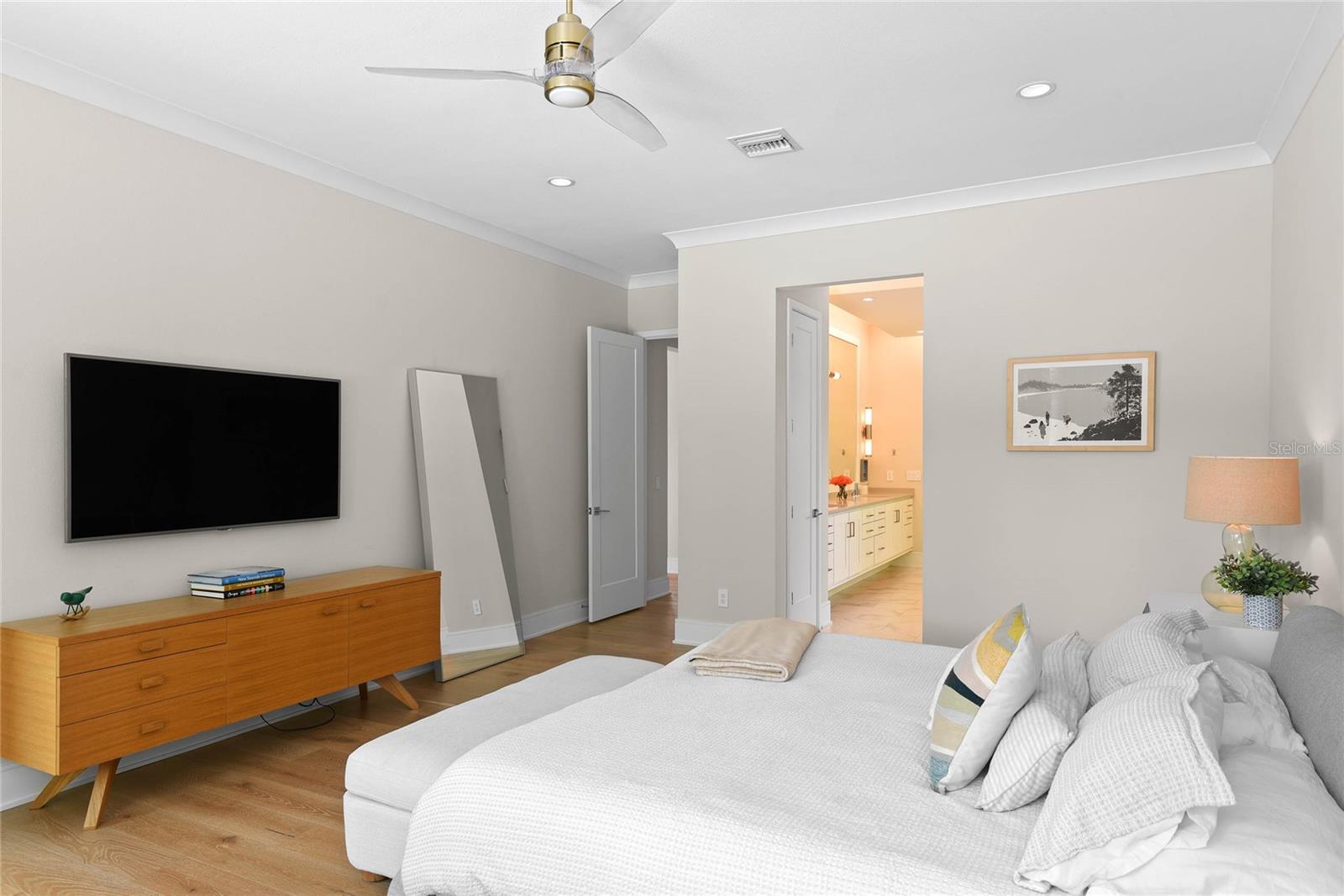 Welcome to a one-of-a-kind, custom-designed residence offering the perfect blend of modern sophistication, thoughtful functionality, and resort-style amenities. Designed by Origins Residential Design and meticulously constructed by Native Homes, this 5-bedroom, 5.5-bathroom showplace is located in one of Winter Park’s most sought-after neighborhoods—just minutes from Park Avenue, Baldwin Park, and top-rated schools. This exceptional home was built in 2019 and features a flexible, open-concept layout that exudes comfort and luxury. The spacious main living areas are drenched in natural light and designed for seamless entertaining and everyday ease. The split-bedroom floorplan offers five generously sized en-suite bedrooms, each with its own private bath—no shared walls between any bedrooms ensure total peace and privacy for all. Two bedrooms are located on the first floor, including the lavish downstairs primary suite with a spa-inspired bathroom featuring a soaking tub, oversized dual vanities, frameless glass shower, and an enormous custom-designed walk-in closet. The heart of the home is the chef’s dream kitchen, masterfully laid out with distinct zones for cooking and gathering. Highlights include a gas cooktop, Thermador appliances, huge quartz-topped island, 42” cabinets, a cozy coffee and juicing nook, an oversized walk-in pantry, and a striking design that marries stainless steel with warm brass accents. Just off the kitchen, a separate beverage zone includes a built-in wine fridge, making entertaining effortless. No detail has been overlooked—from the White Oak hardwood flooring and marble inlay floors, to the suspended ceilings, solid Shaker-style interior doors, 7” milled baseboards, and designer light fixtures throughout. Modern conveniences include pre-wired surround sound, recessed lighting, dimmable lighting with frameless switch plates, custom framed mirrors, new Kohler bath fixtures, and a whole-house water filtration system. Restoration Hardware sheer drapes ($20K), remote-operated Shade Store treatments Enjoy seamless indoor-outdoor living in the resort-style backyard retreat. The ultra high-end, zero-edge saltwater pool and spa feature Aqua Pearl interior finish, glass mosaics, and are fully smartphone-controlled, including lighting, jets, and both gas spa and pool heaters. Entertain under the covered outdoor patio complete with an Artisan grill, new neutral-toned accent walls, and outdoor kitchen—all surrounded by sandblasted Carrara marble pavers, remote-controlled vanishing screens, and a full privacy fence with Podocarpus hedge. Extensive professional landscaping includes fresh sod, tilled and leveled topsoil, blooming flower bushes, and river rock side paths. The backyard also features new turf, a dedicated dog run, and completely upgraded irrigation for optimal efficiency. Oversized 2-car garage, tile roof, gutter guards, security system with cameras, new washer/dryer, and professional landscaping with upgraded irrigation. Quiet zone near hospitals, attracting medical professionals. Electrical lines to be buried within few months and very strong internet. Minutes to Baldwin Park, Park Avenue, restaurants, shopping, Wellness Center, and scenic trails. Zoned for top-rated Winter Park schools (Brookshire, Glenridge, Winter Park High) and near private schools- Lake Highland Prep, Park Maitland, Geneva School and more
