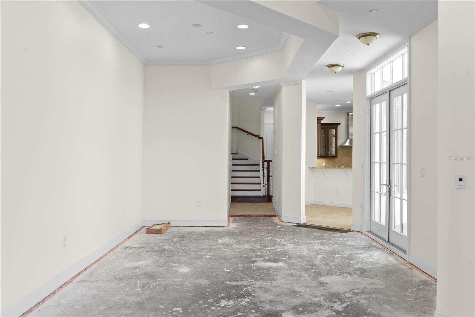 Discover luxury living in this exquisite two-story condominium, located on the third floor of the highly sought-after Douglas Grand. This elegant three-bedroom, three-and-one-half-bath residence seamlessly blends entertaining with everyday comfort. Step into a blank canvas offering a clean landscape—free of flooring—allowing you to effortlessly bring your own design vision to life. Whether you envision warm hardwood, sleek tile, or cozy carpet, this space is designer-ready and primed for your perfect finish. Be immediately impressed by the inviting open floor plan filled with natural light, high ceilings, and detailed crown molding. The gourmet kitchen is a chef’s dream, featuring a spacious breakfast bar island, custom wood cabinetry, granite countertops, and a built-in desk. Enjoy casual dining in the heart of the home with a charming breakfast nook, perfectly positioned for morning coffee or quick weeknight meals. Step through elegant French doors into your own private, enclosed atrium—a versatile outdoor retreat ideal for alfresco dining, quiet relaxation, or entertaining guests in style. The main level features a seamless living and dining area, along with a private downstairs bedroom with en suite bath and walkout balcony—ideal for guests, in-laws, or a home office. Upstairs, the primary suite is a serene sanctuary with an indulgent soaking tub, dual granite-topped vanities, and an expansive walk-in closet. French doors lead to a large private balcony offering sweeping views of Winter Park’s iconic Park Avenue—the perfect backdrop for morning coffee or evening unwinding. A second upstairs en suite bedroom offers its own private bath and generous walk-in closet. The convenience of an upstairs laundry room enhances daily living, while a spacious storage closet offers the potential for an elevator, adding long-term accessibility and value. Enjoy peace of mind with a secure, gated garage offering two reserved parking spaces. Situated in the heart of Winter Park, the Douglas Grand places you steps away from Park Avenue, the Farmers’ Market, Rollins College, Hannibal Square, the Winter Park Golf Course, WP Tennis Center, Winter Park Village, and more. Embrace the effortless downtown lifestyle at the Douglas Grand! A few notable upgrades include brand new front elevation windows and French doors (2024), interior paint (2024), and AC (2022).